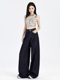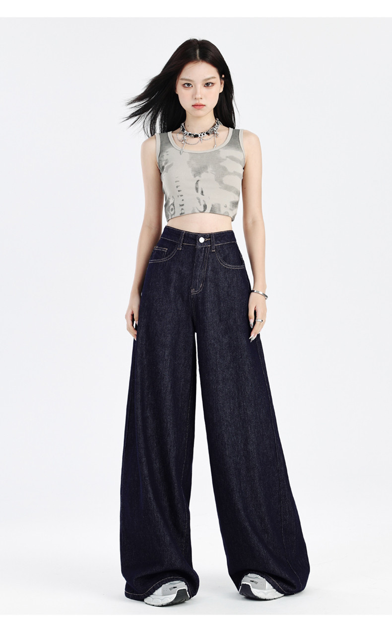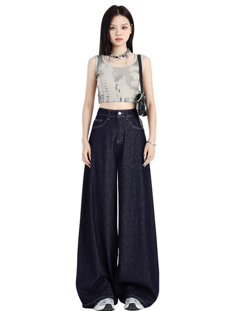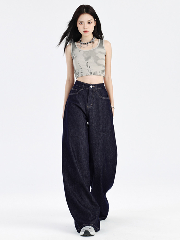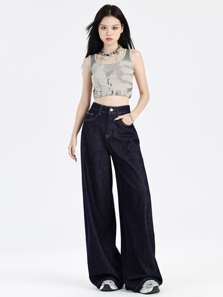 Джинсы, летние штаны, в американском стиле, высокая талия, свободный прямой крой