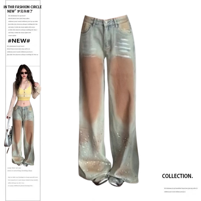 Джинсы, летние штаны, большой размер, в американском стиле, высокая талия, облегающий крой