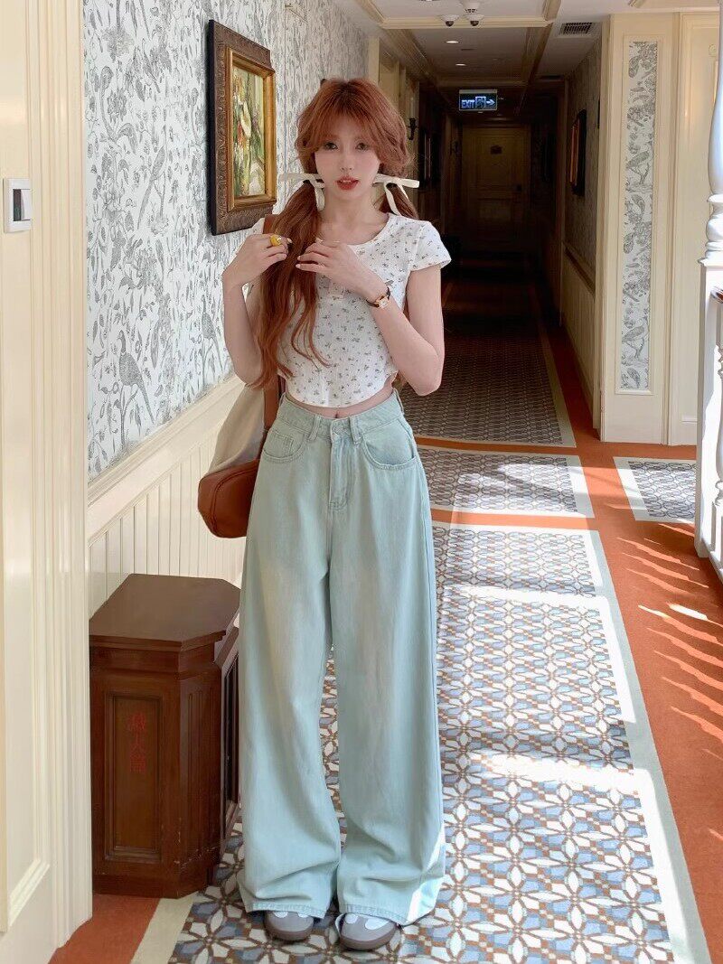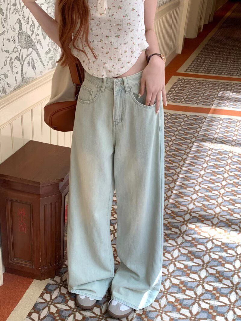 Осенние синие цветные джинсы, штаны, высокая талия, облегающий крой, свободный крой