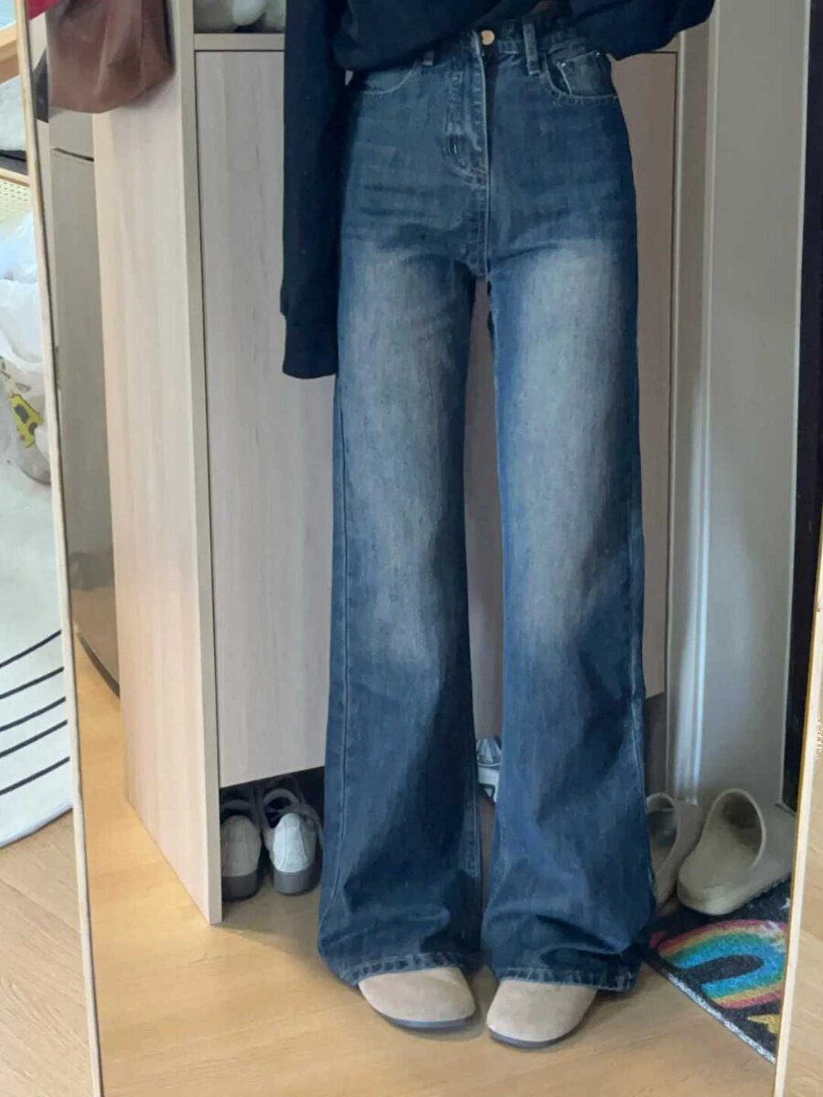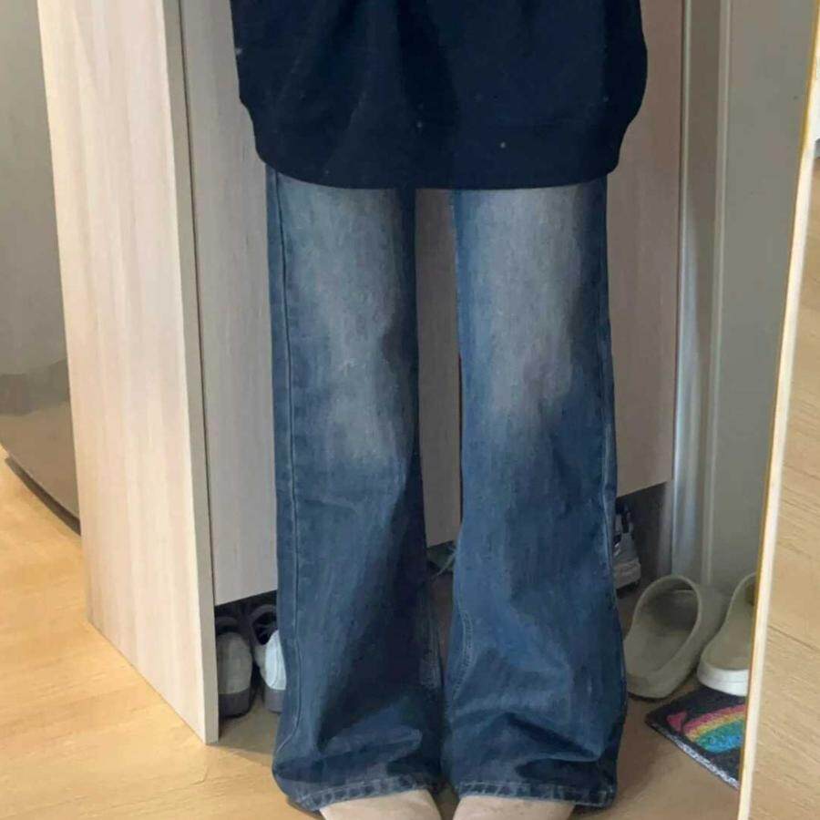 Ретро мегафон, джинсы, штаны, в американском стиле, новая коллекция, подходит для подростков, свободный прямой крой, высокая талия
