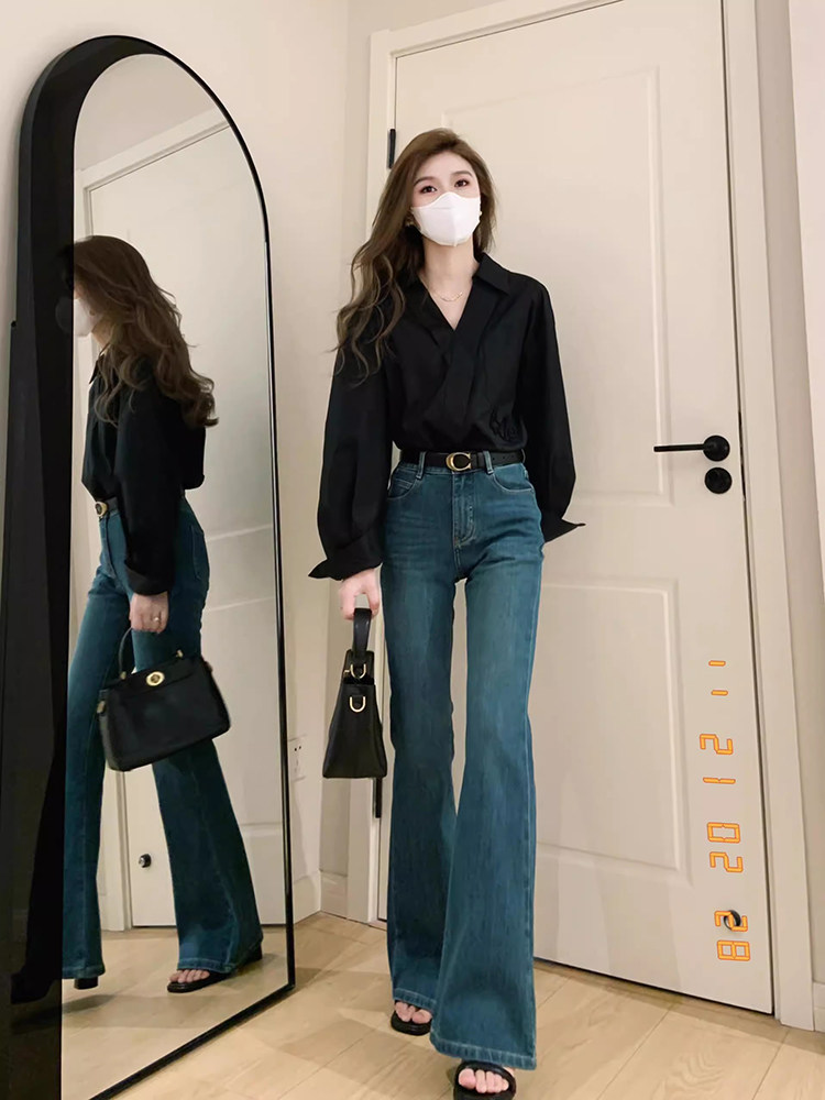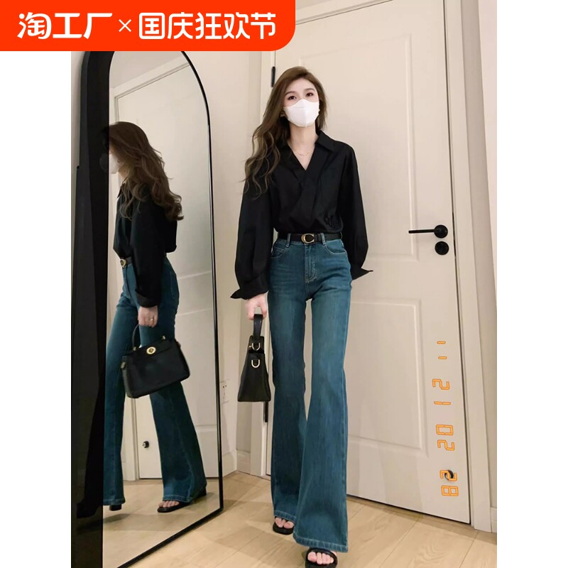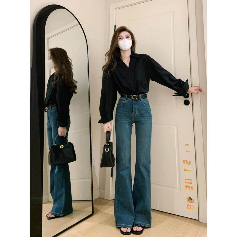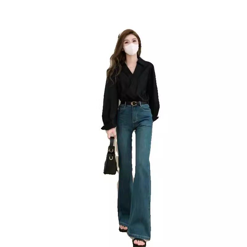Ретро тонкие приталенные джинсы, длинные штаны, высокая талия, свободный прямой крой