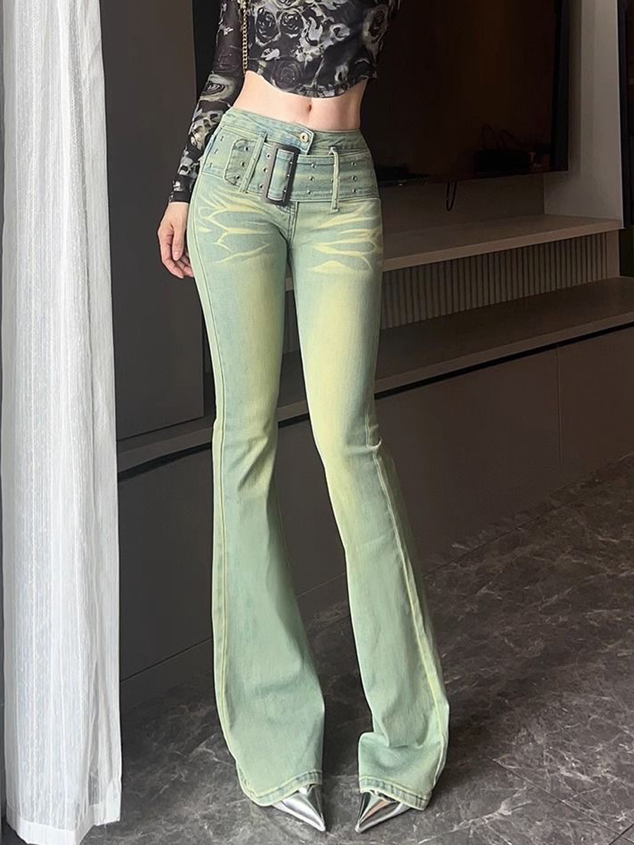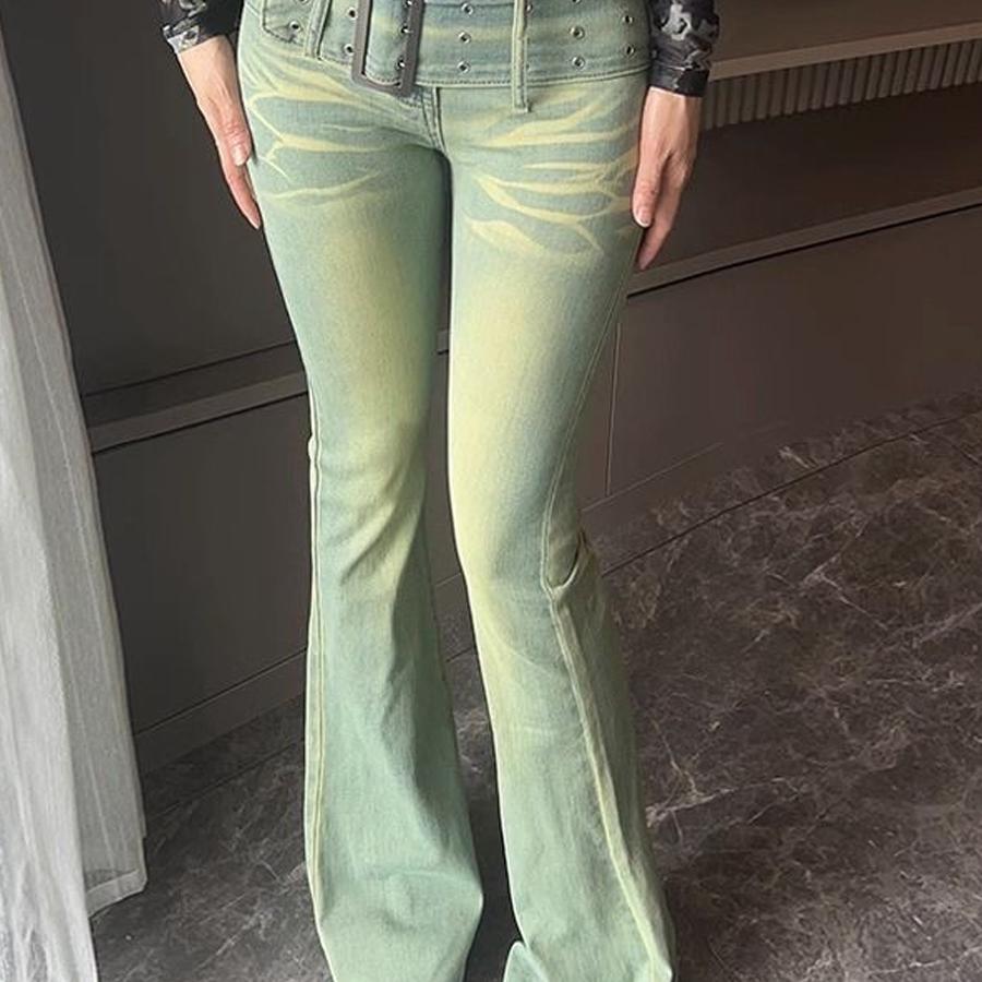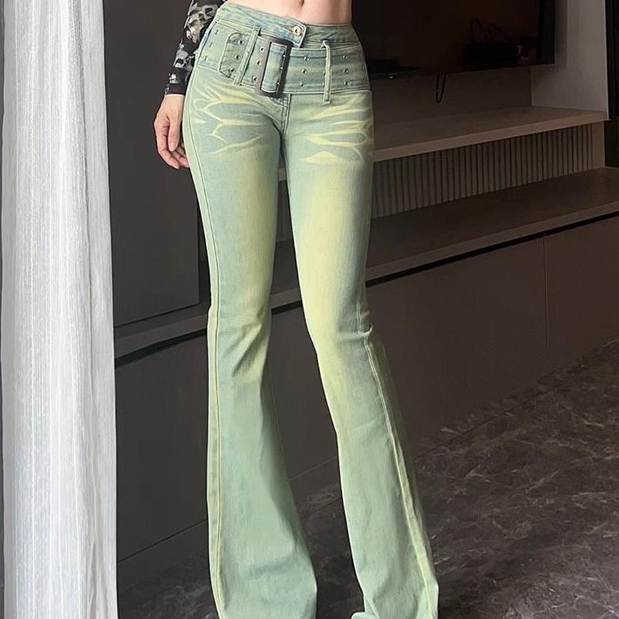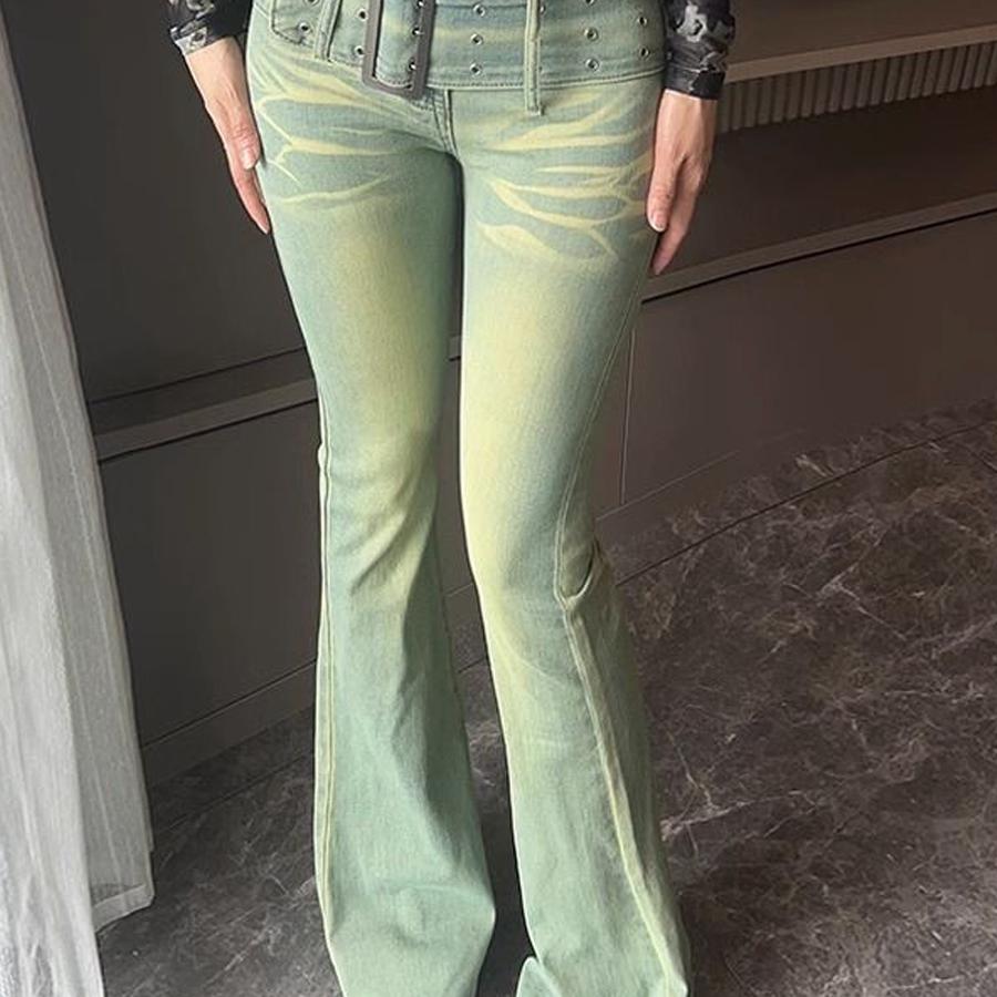 Ретро джинсы, осенние штаны, приталенный мегафон, ностальгия, высокая талия