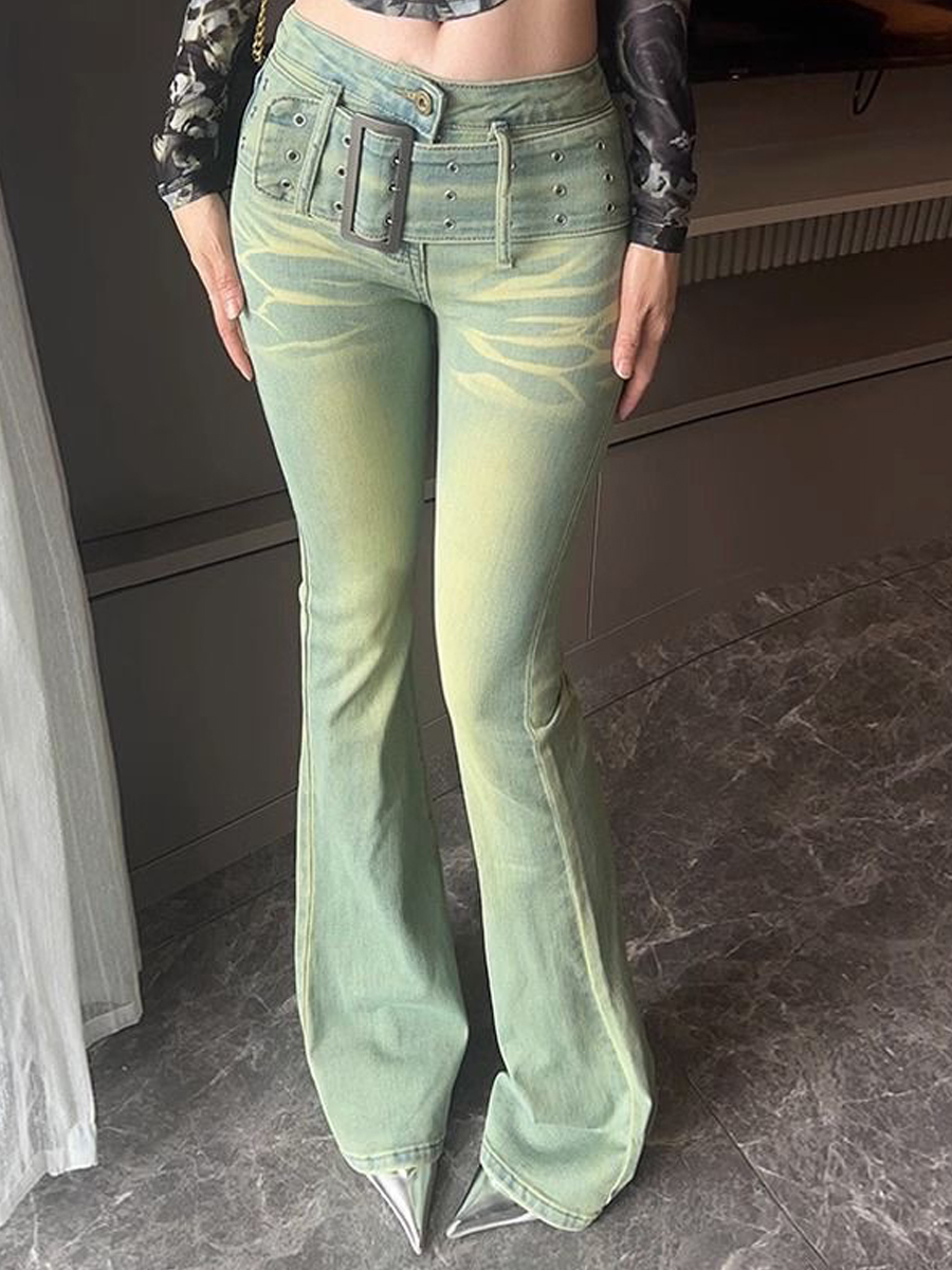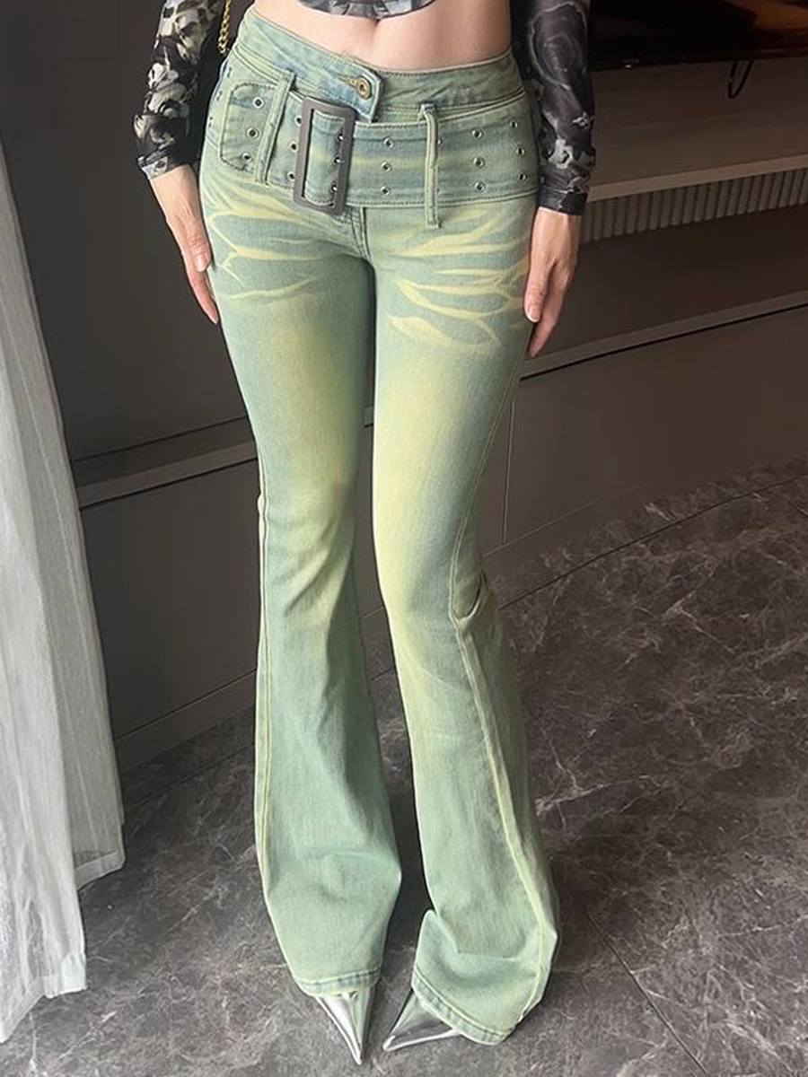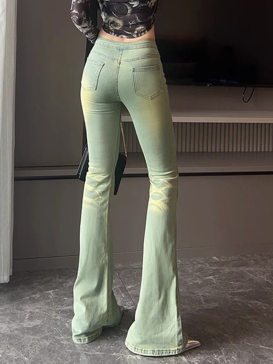 Ретро джинсы, осенние штаны, приталенный мегафон, ностальгия, высокая талия