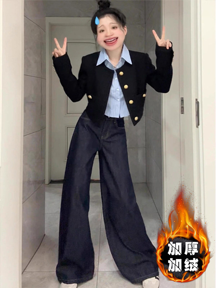 Флисовые осенние джинсы с начесом, штаны, леггинсы, увеличенная толщина, высокая талия, большой размер, свободный крой
