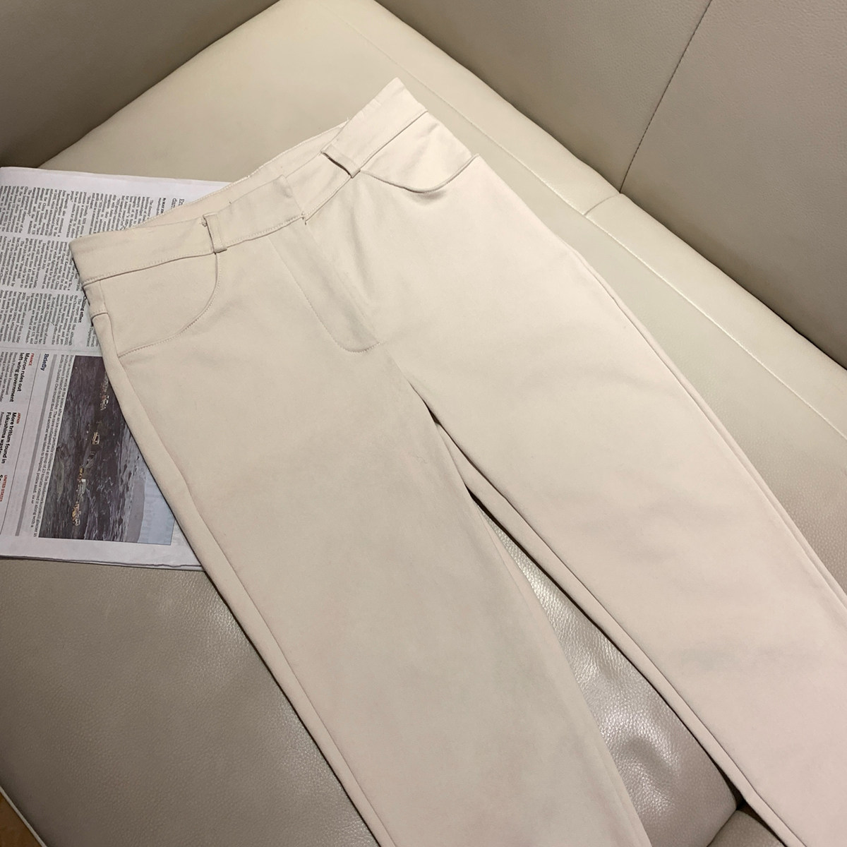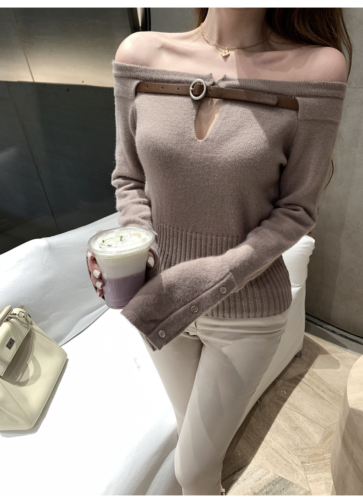 Цвет не очень светло-белый, окрашен в светло-бежевый серый цвет. Это не полнит вас, а сделает вас стройнее.