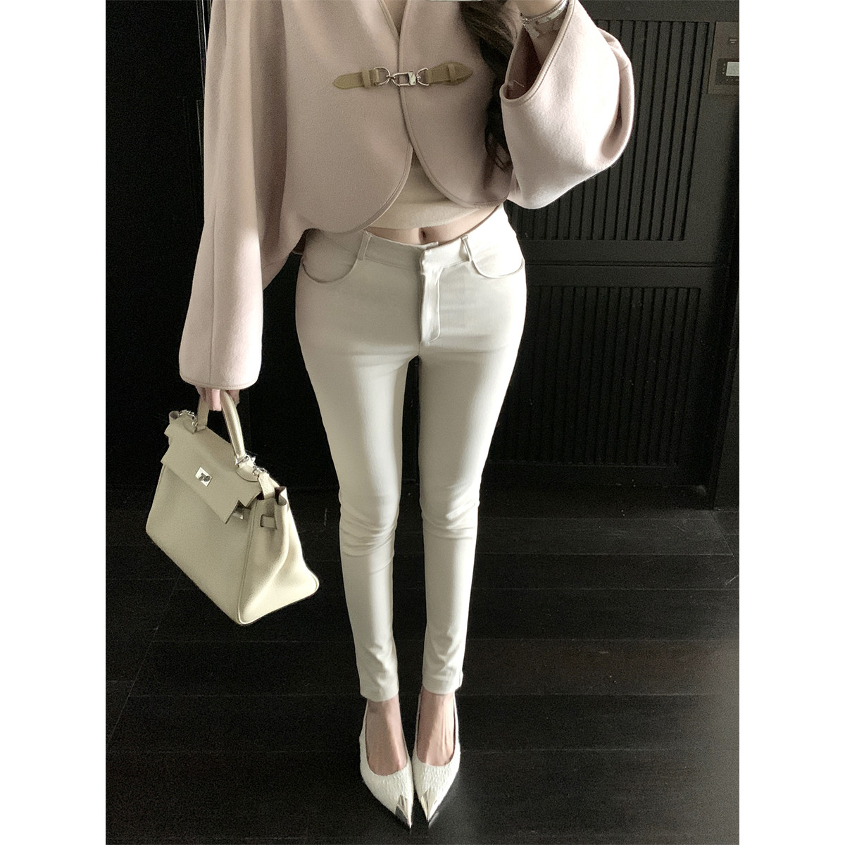 Пара брюк небольшого кроя в корейском стиле. Эта пара брюк сочетается со многими стилями в этом выпуске.