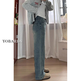 Летние прямые свободные джинсы, штаны, высокая талия, размер, по фигуре, для формы тела «груша», свободный крой
