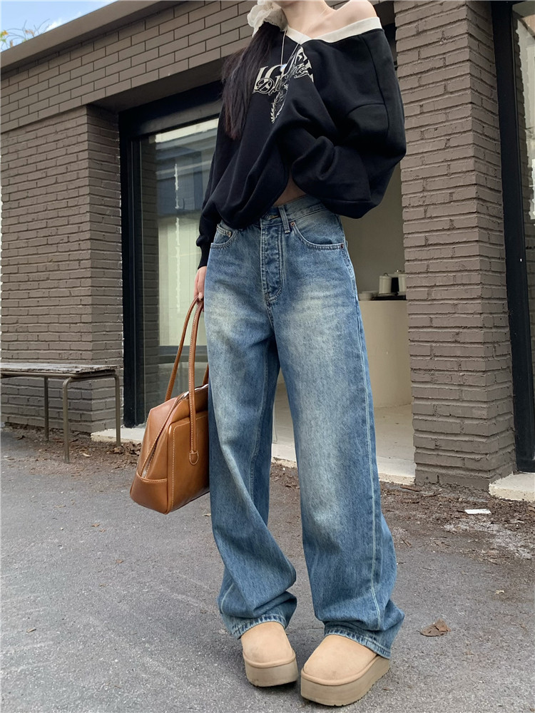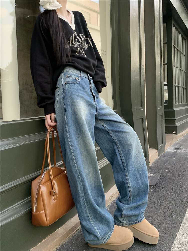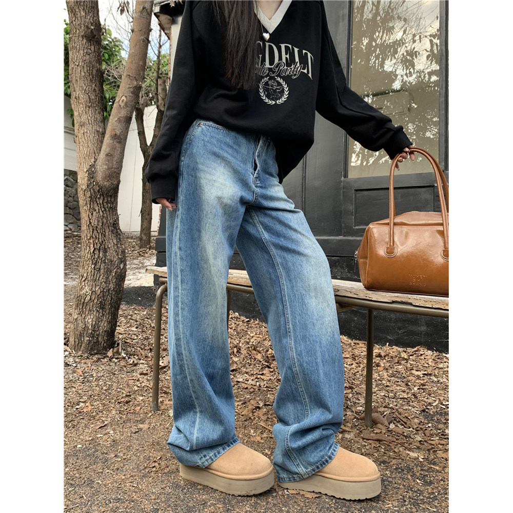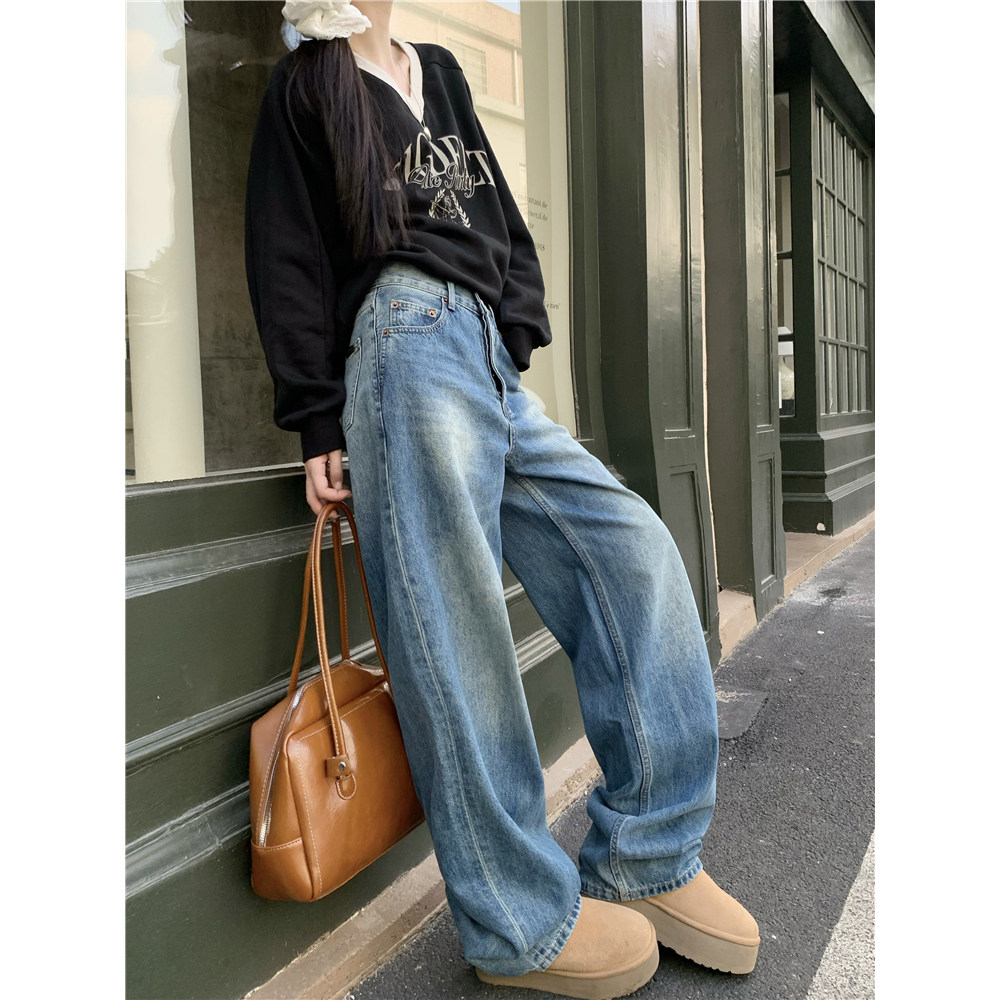 Джинсы, демисезонные ретро штаны, высокая талия, свободный крой