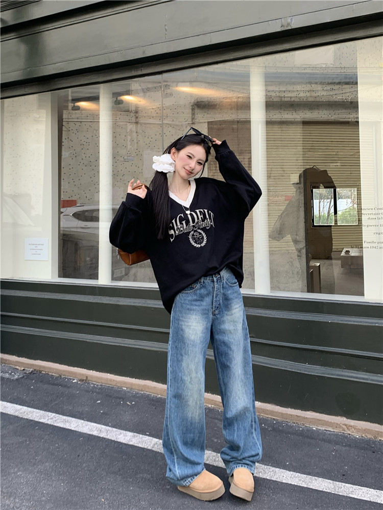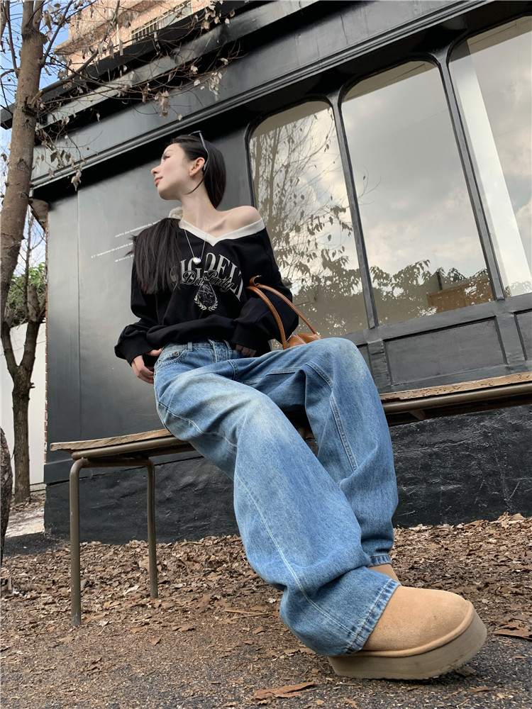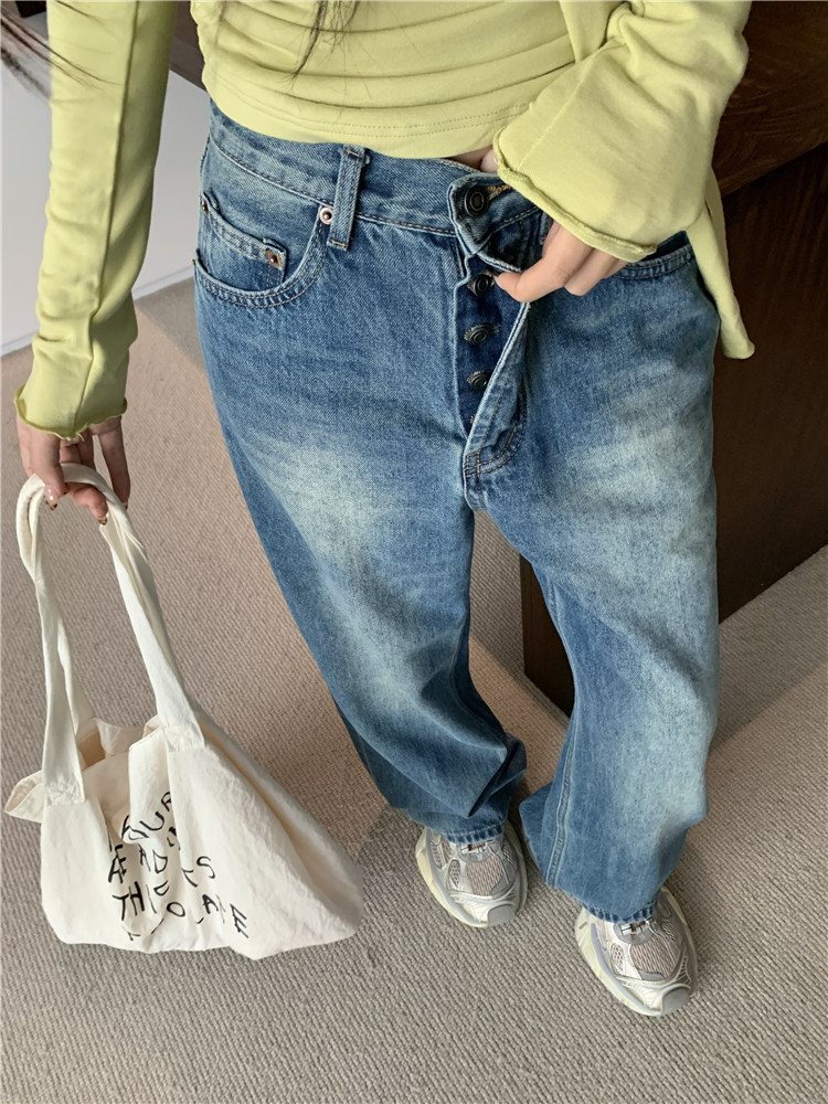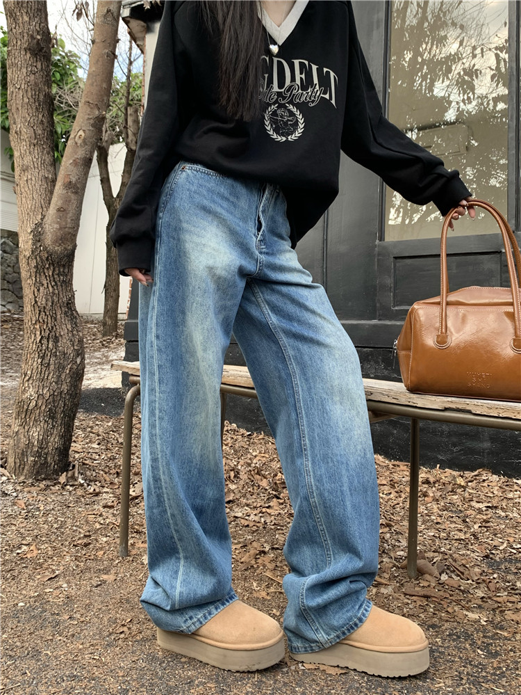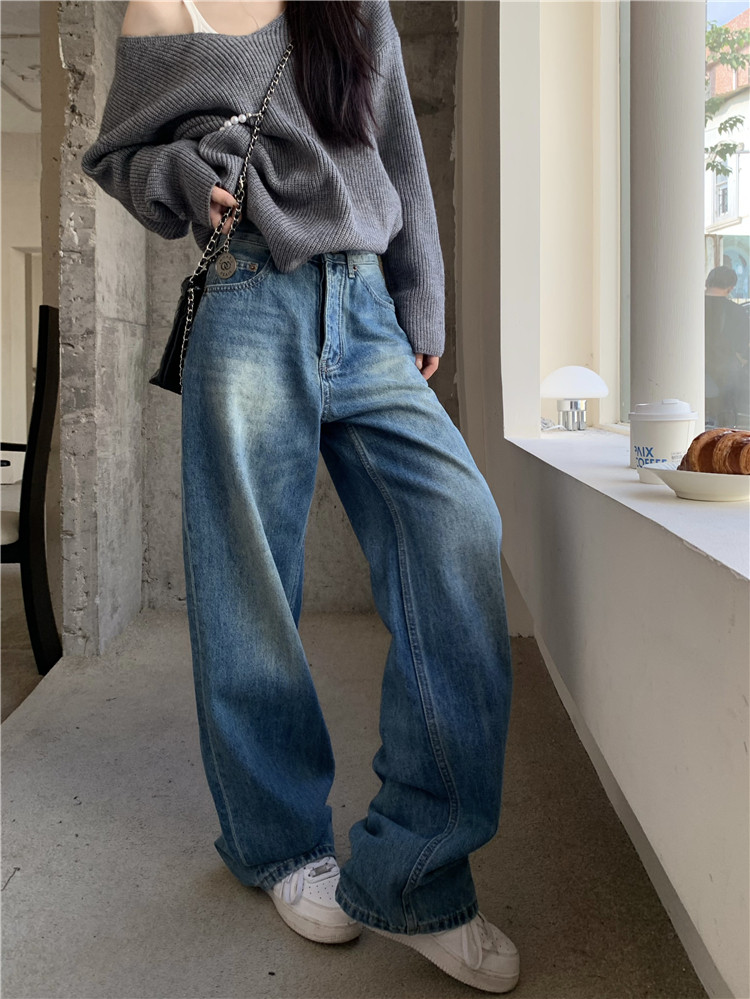 Джинсы, демисезонные ретро штаны, высокая талия, свободный крой