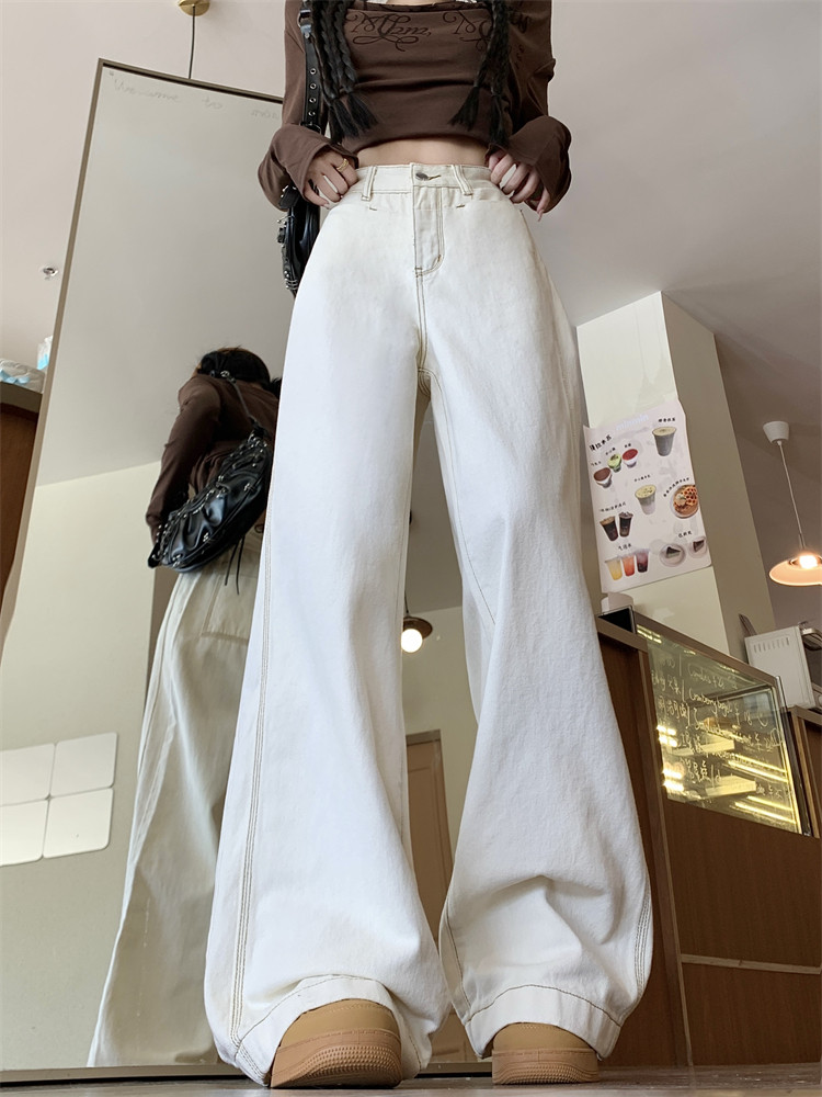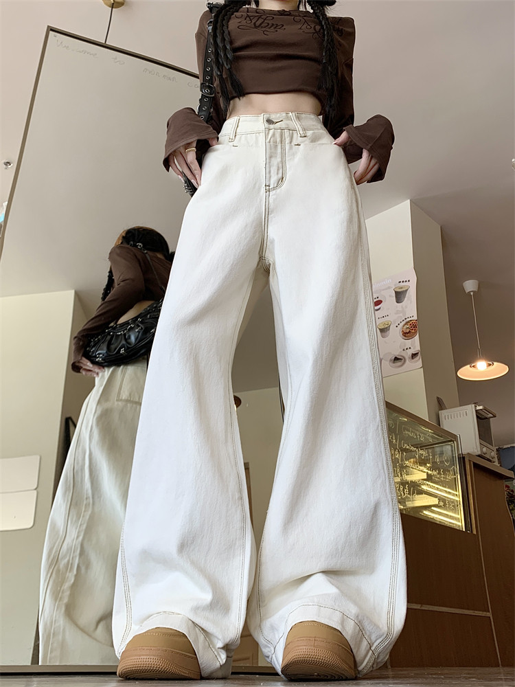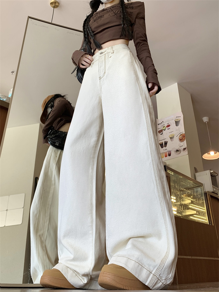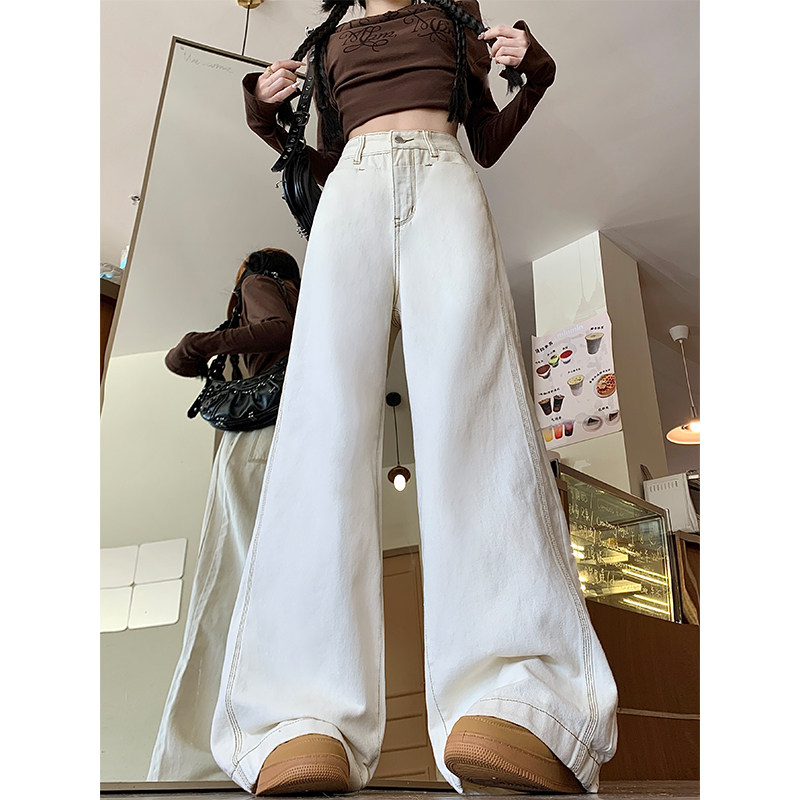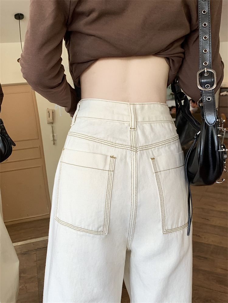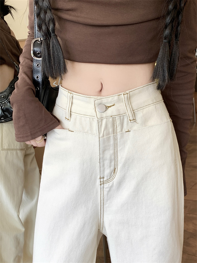 Абрикосовые осенние джинсы, штаны, леггинсы, свободный прямой крой, большой размер, высокая талия