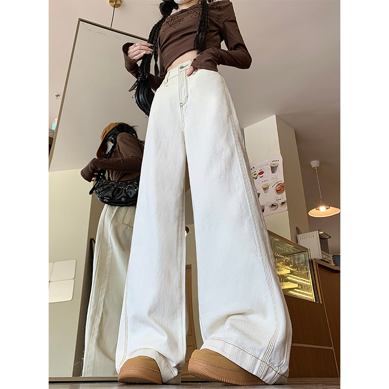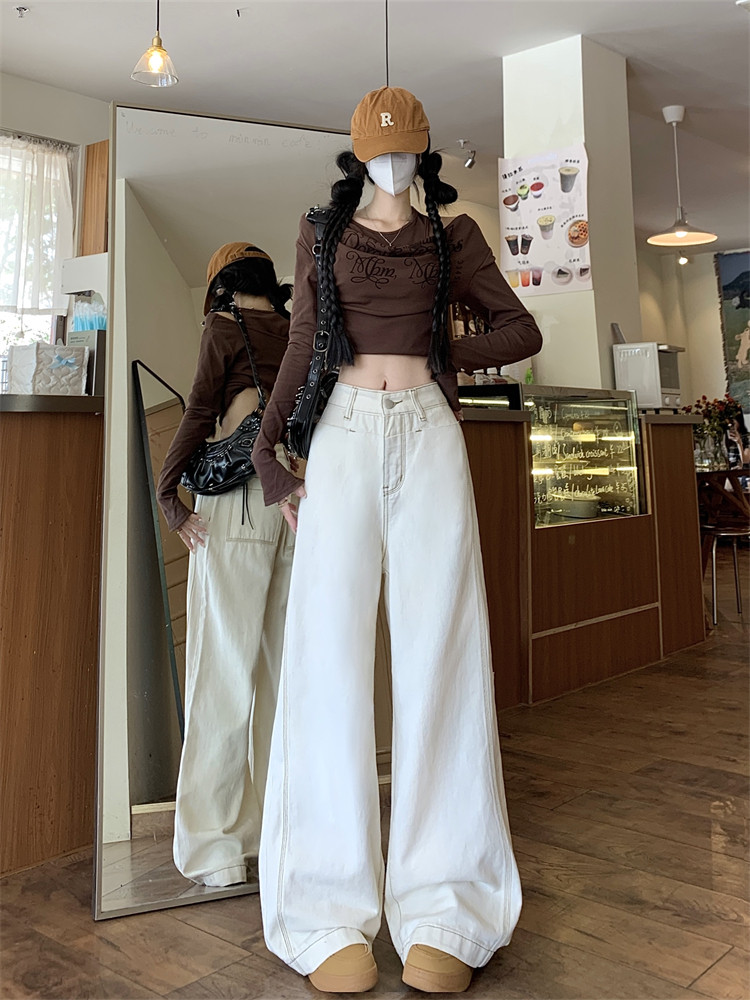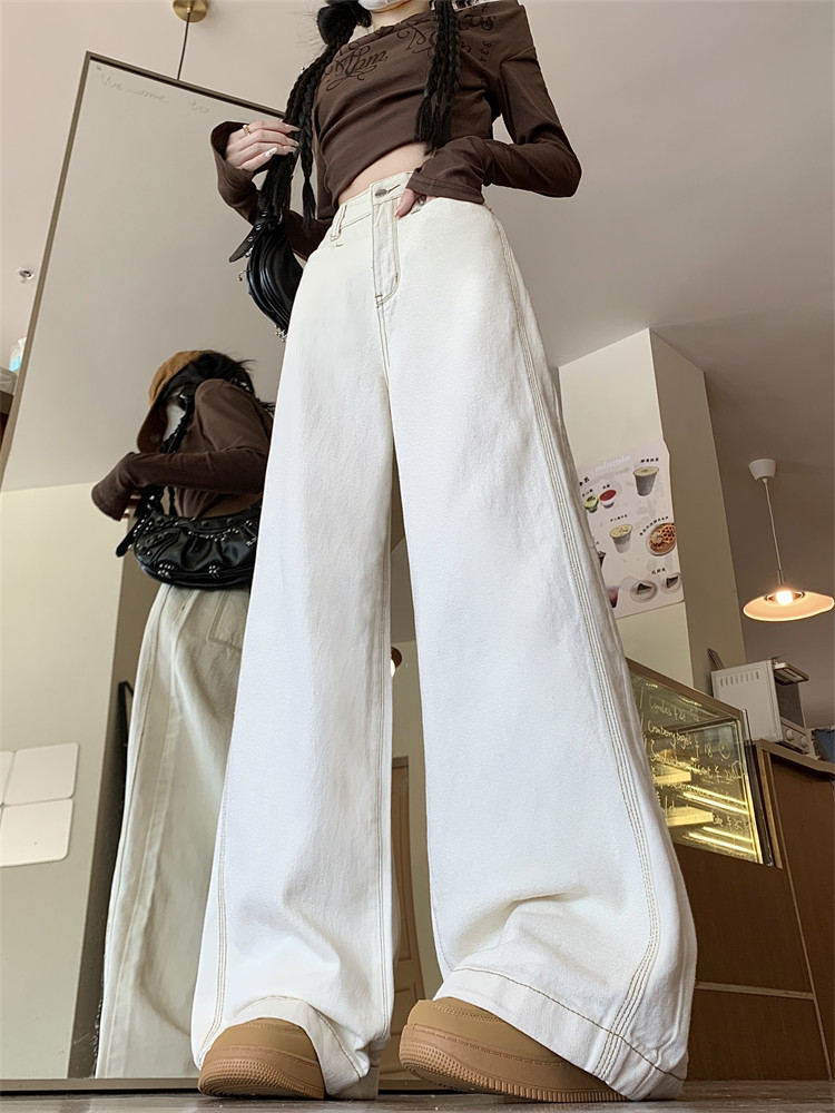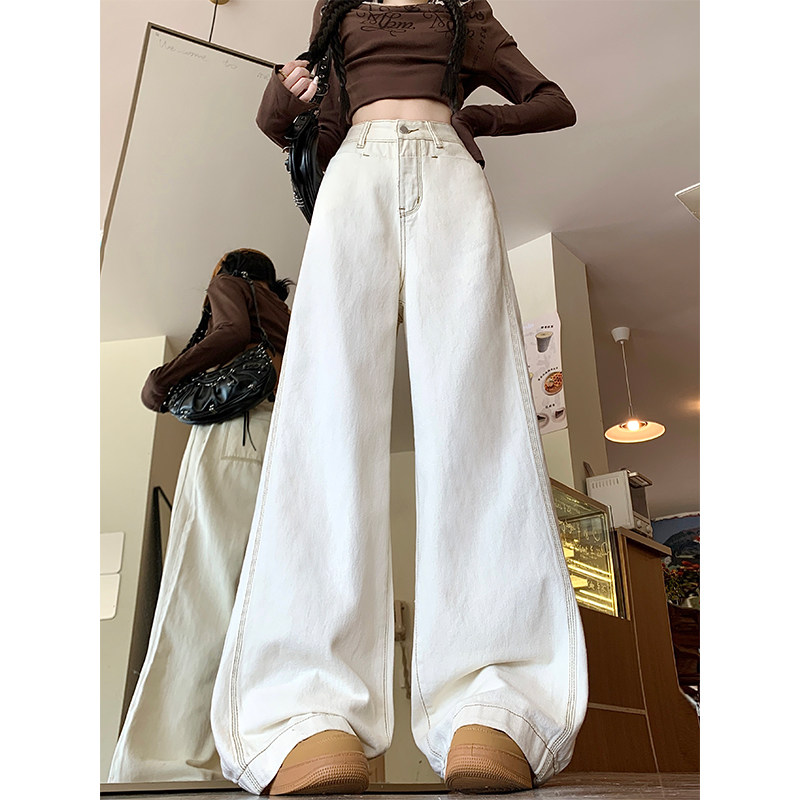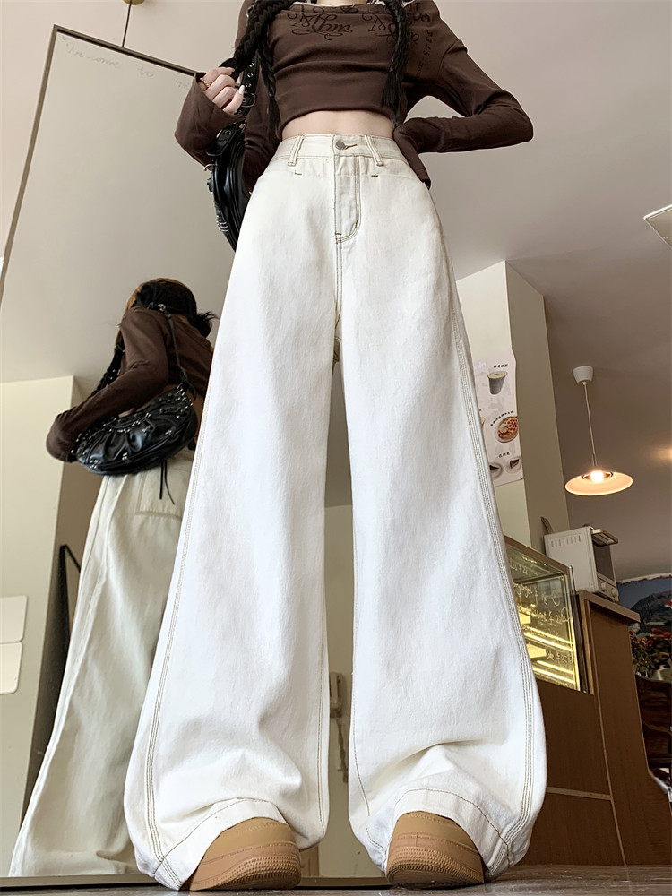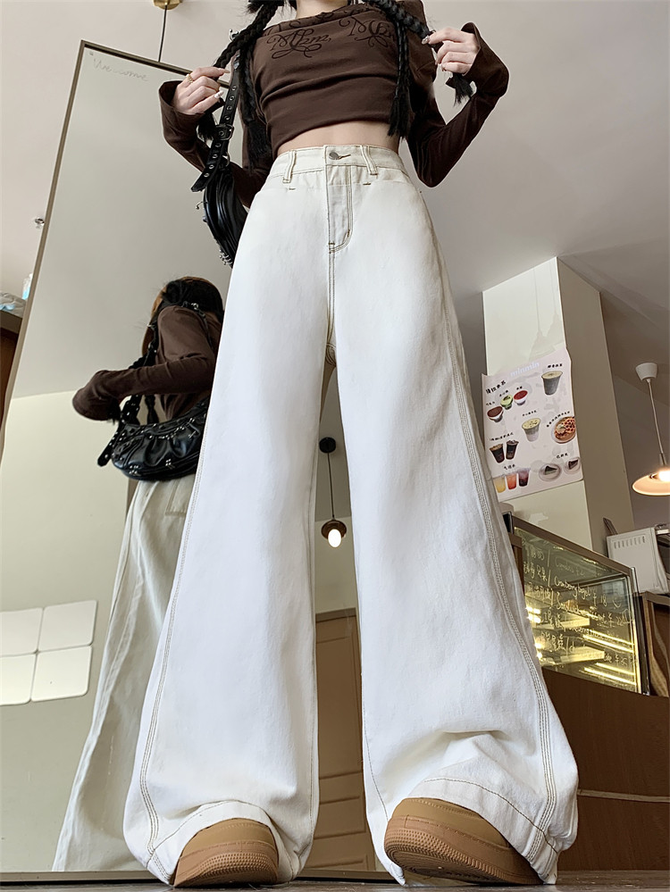 Абрикосовые осенние джинсы, штаны, леггинсы, свободный прямой крой, большой размер, высокая талия