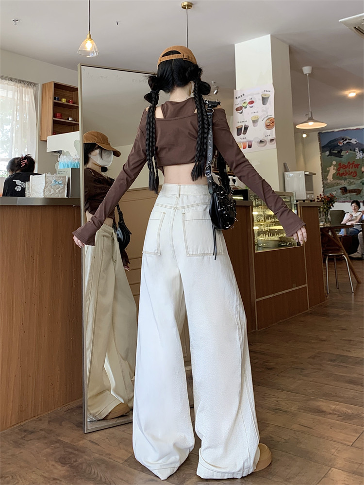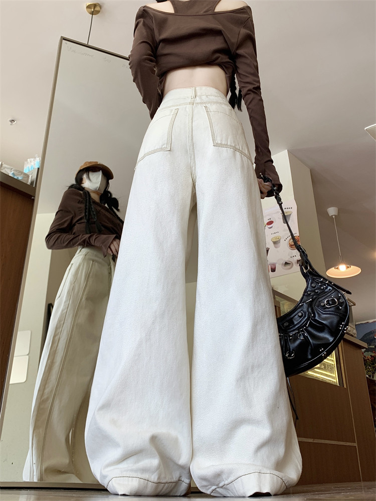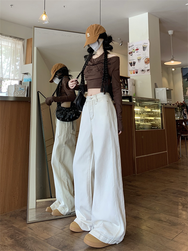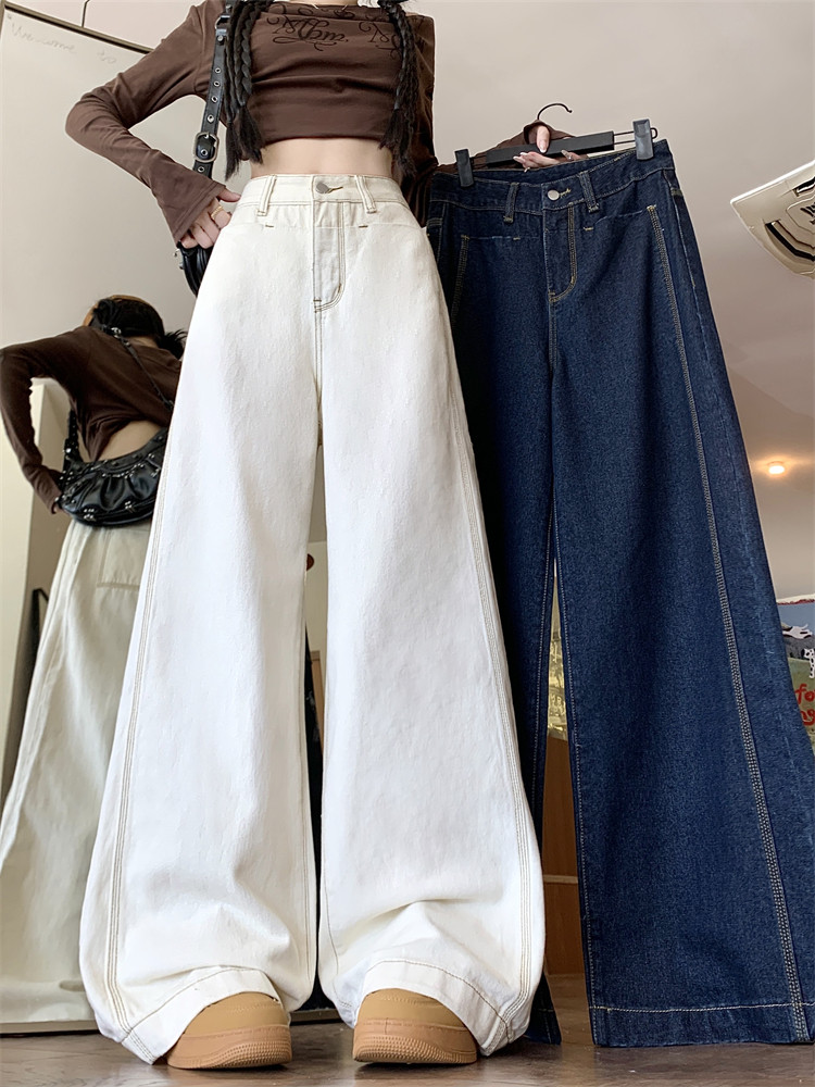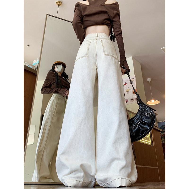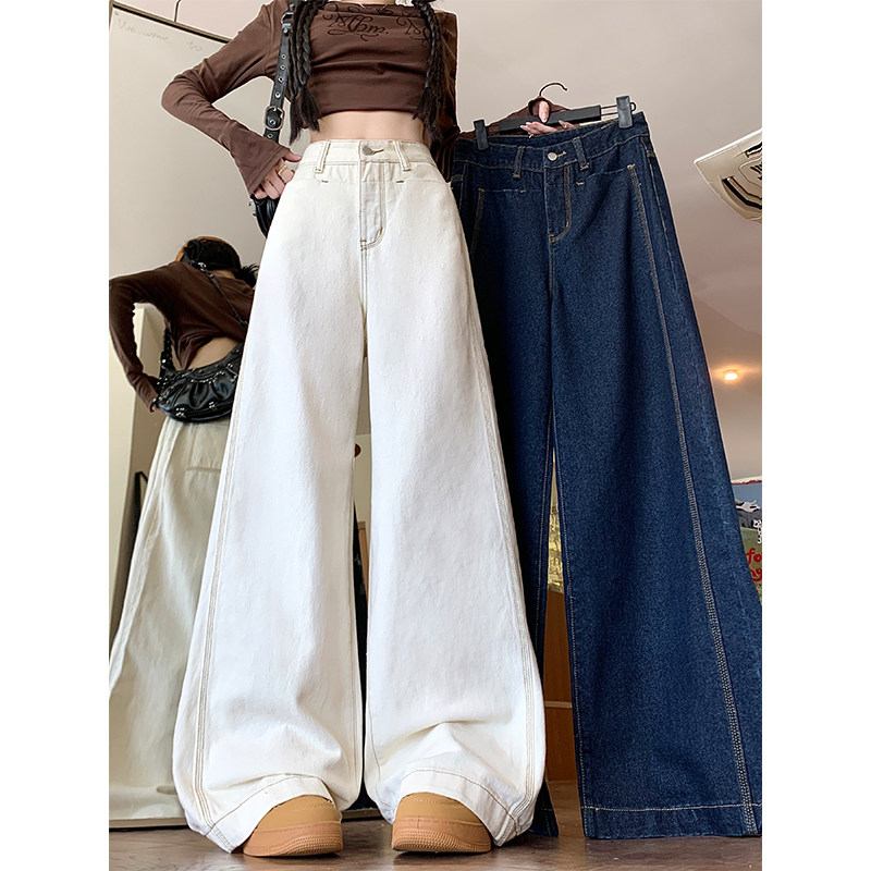 Абрикосовые осенние джинсы, штаны, леггинсы, свободный прямой крой, большой размер, высокая талия