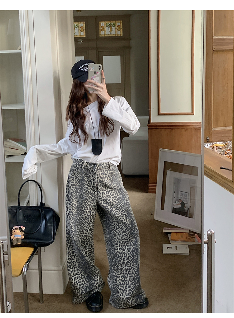 Ретро весенние прямые свободные джинсы, штаны, в американском стиле, высокая талия, свободный крой
