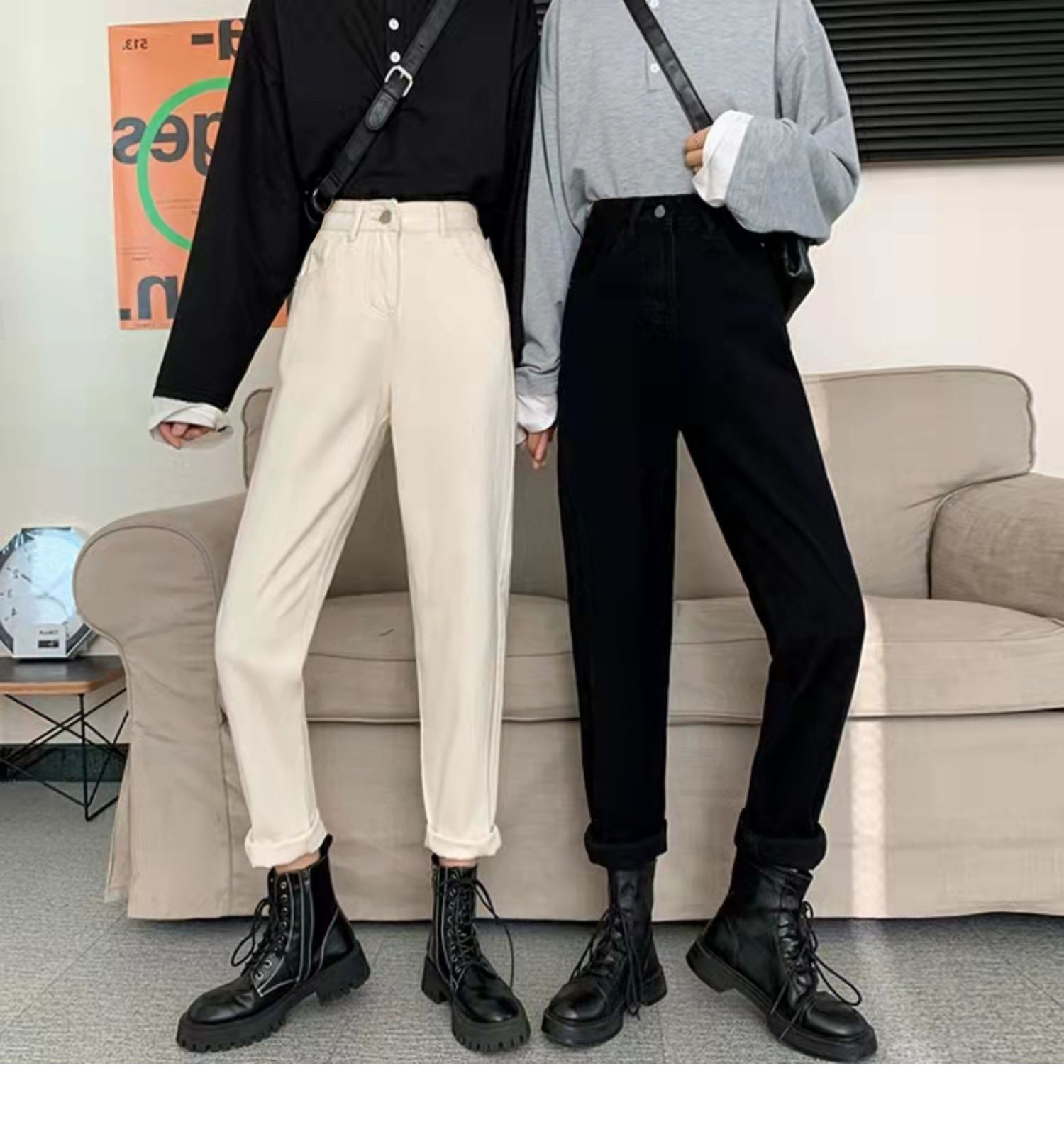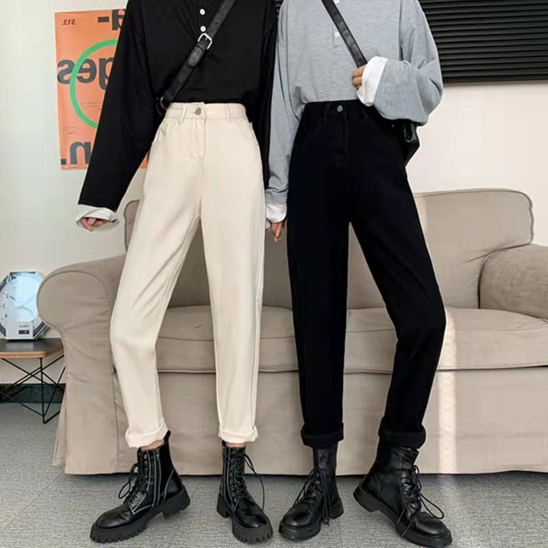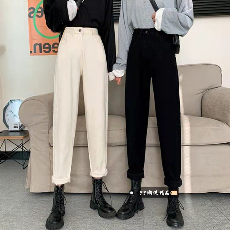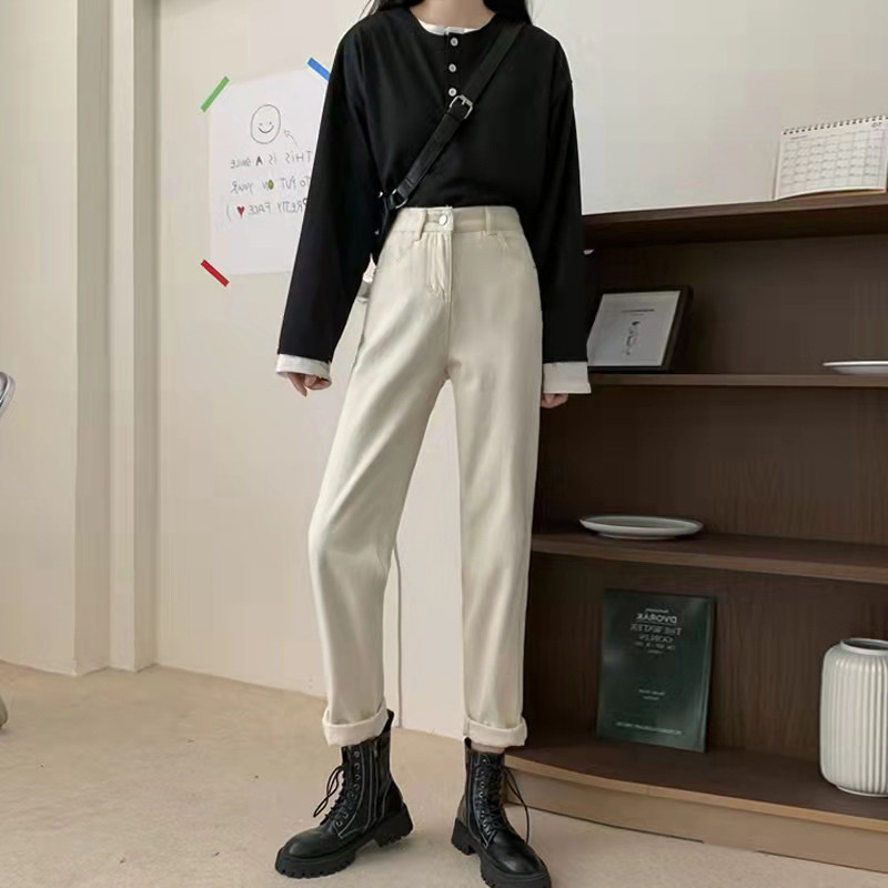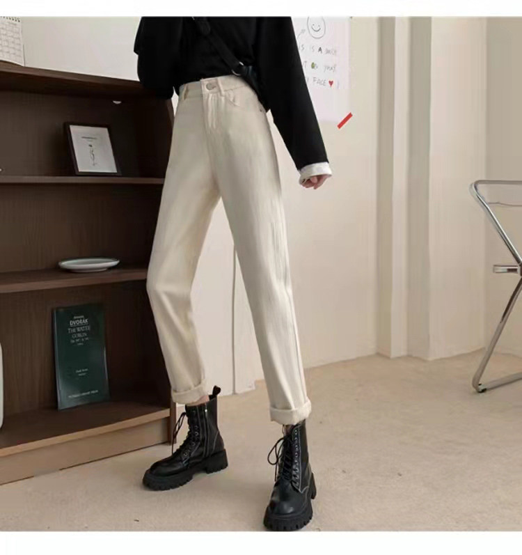 Белые цветные джинсы, зимние штаны, высокая талия, свободный прямой крой, для формы тела «груша»
