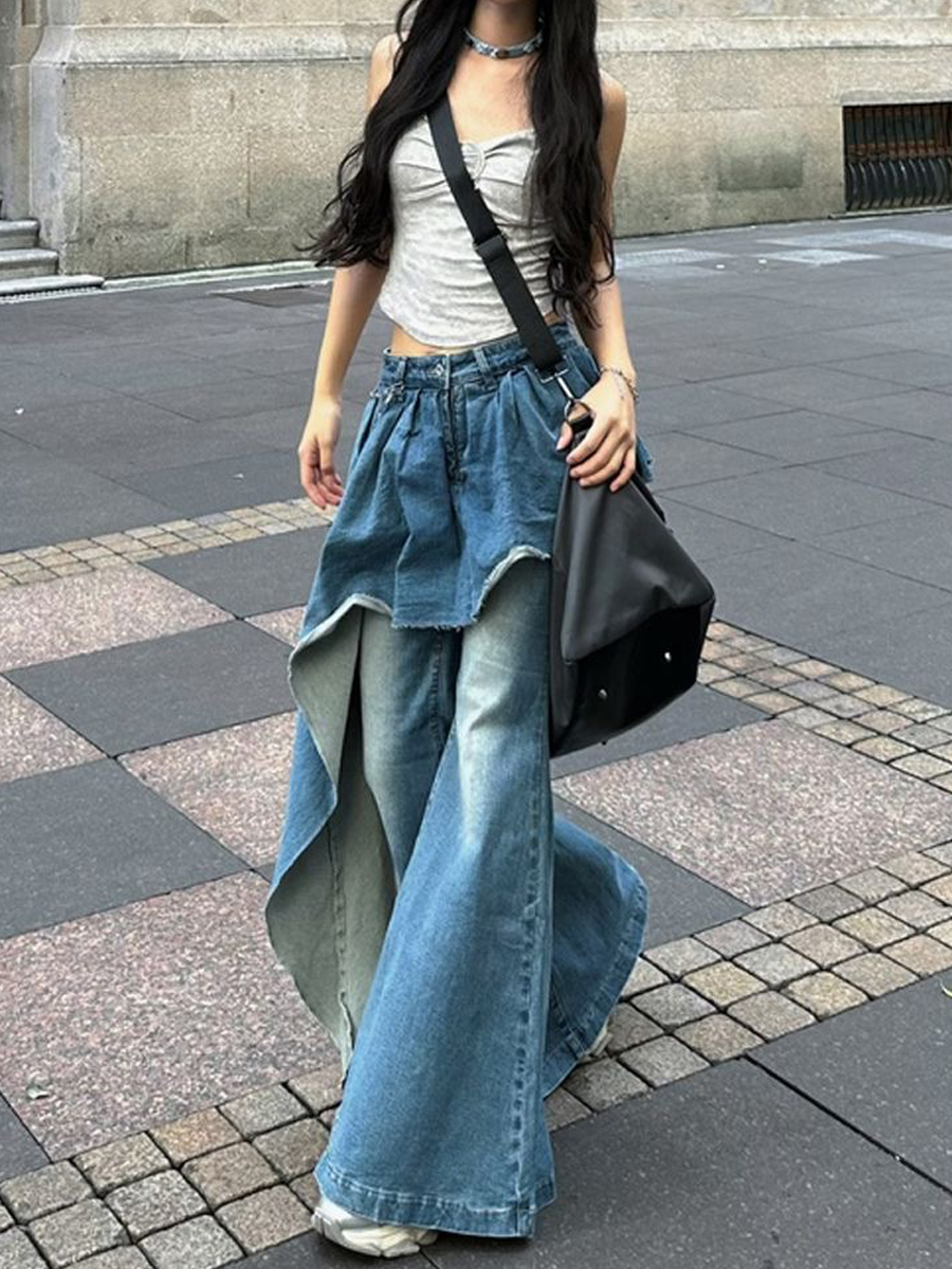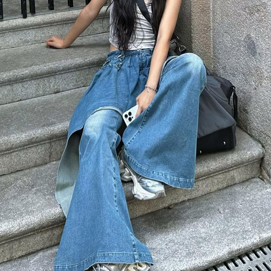 Сексуальные джинсы, штаны, демисезонный комплект, штаны-клёш, по фигуре