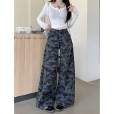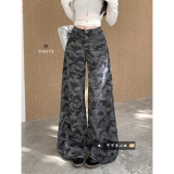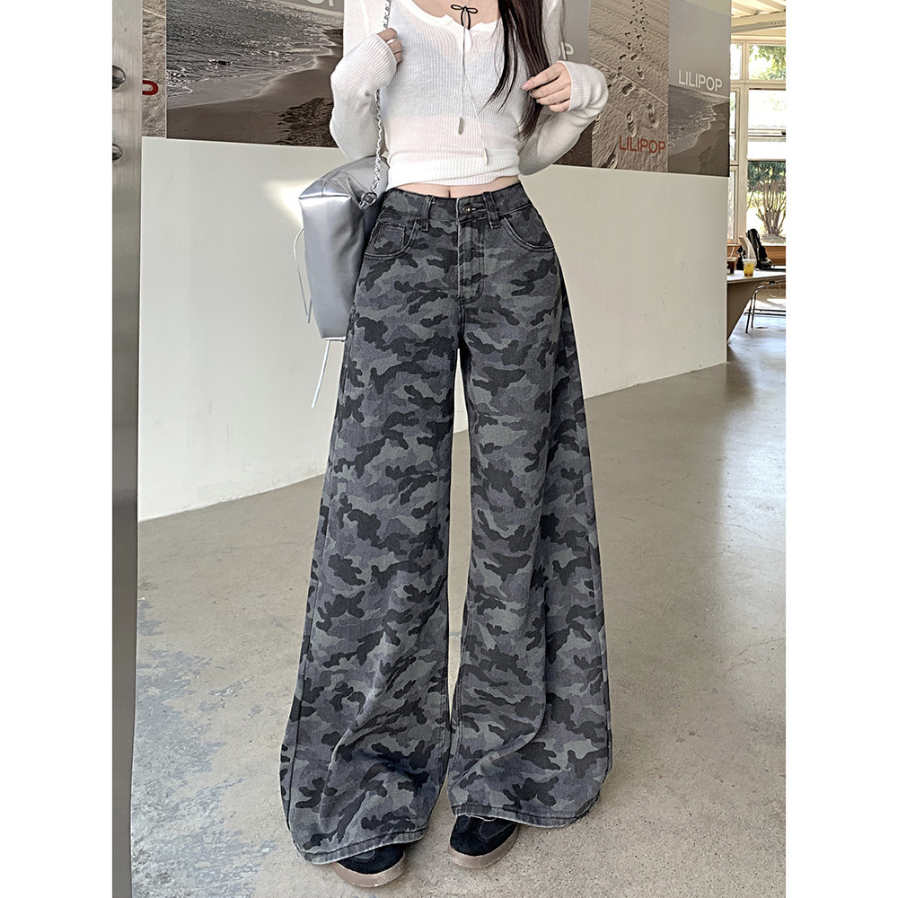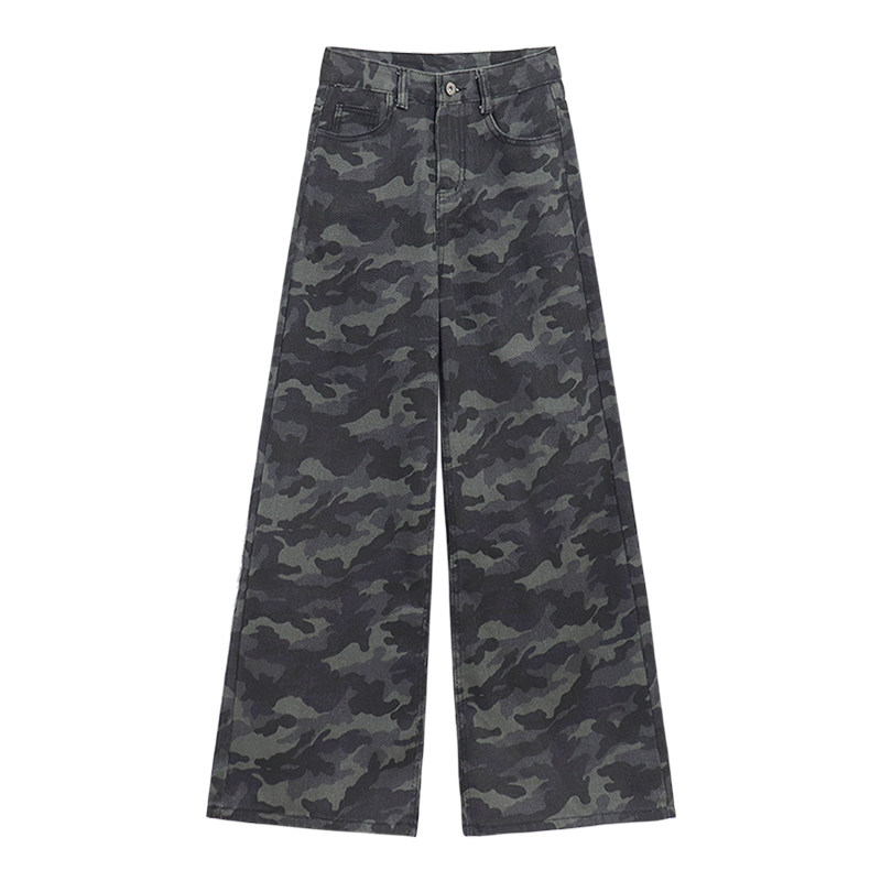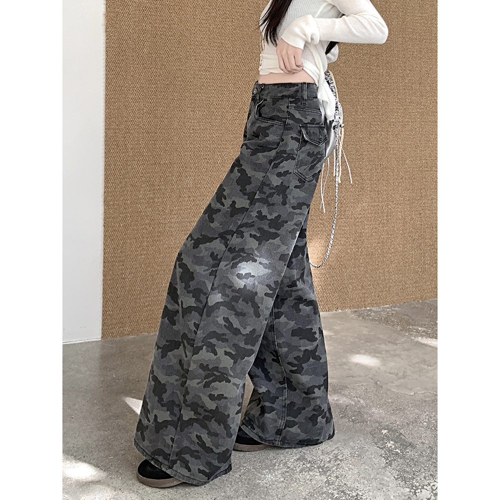 Ретро камуфляжные летние джинсы, модные штаны, в американском стиле, высокая талия, свободный крой