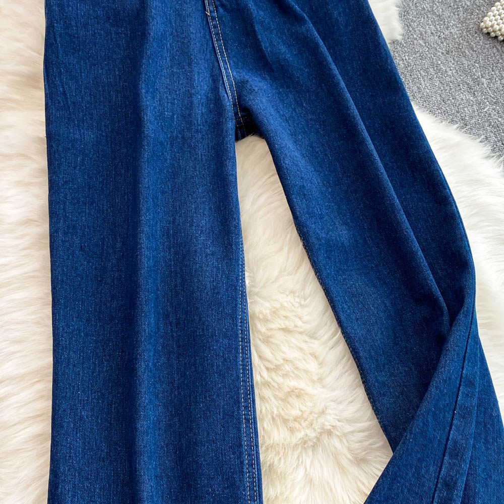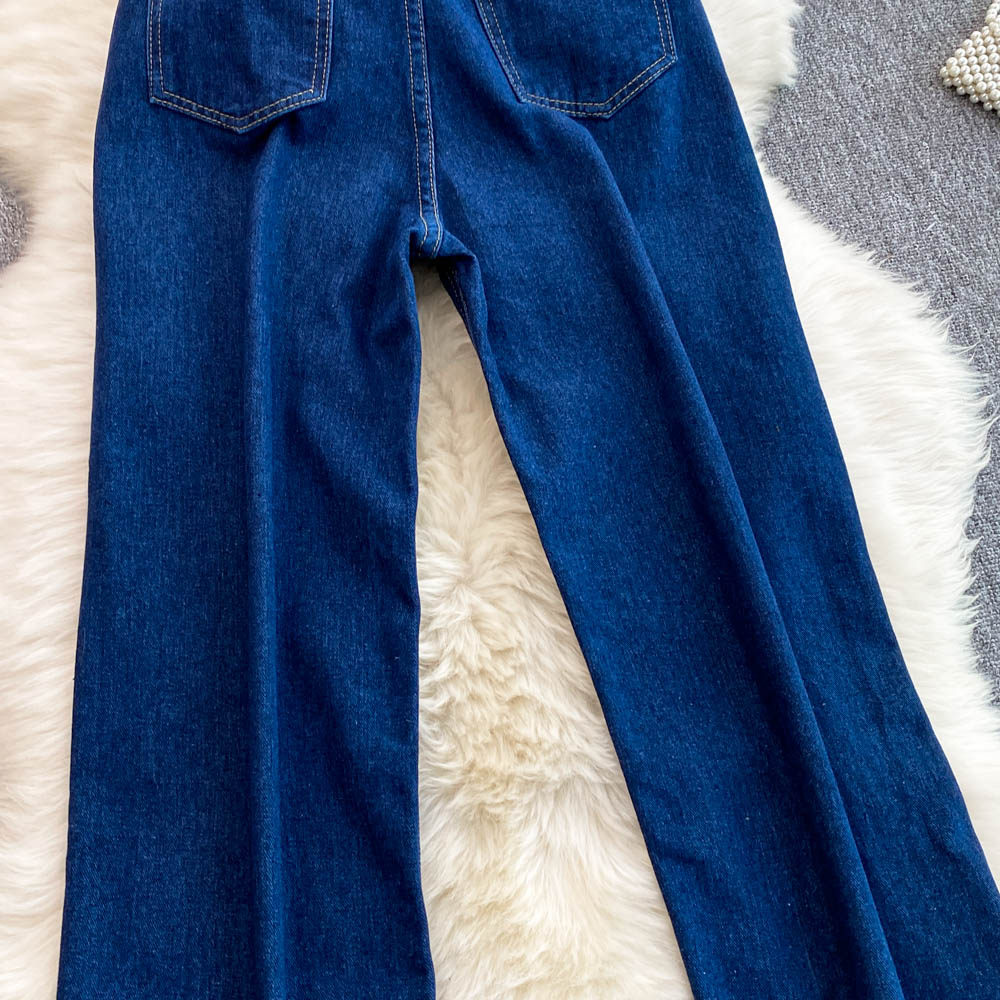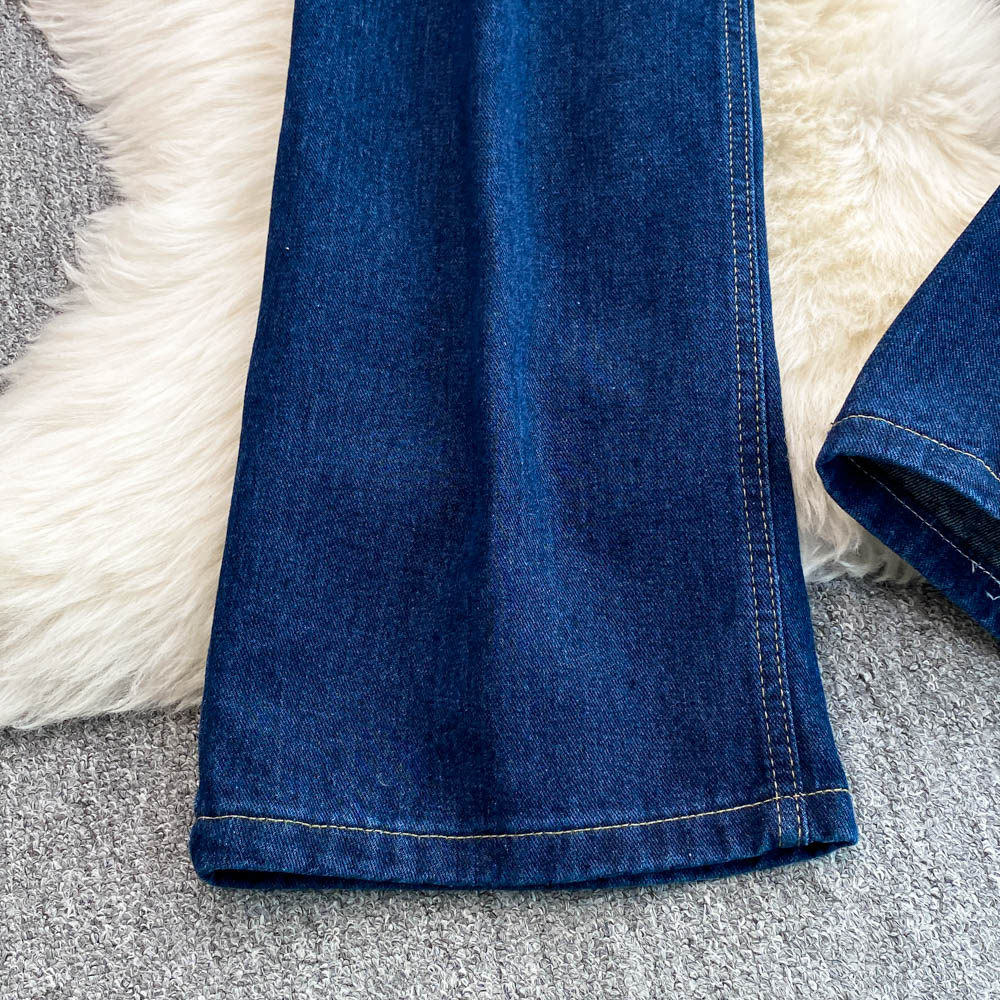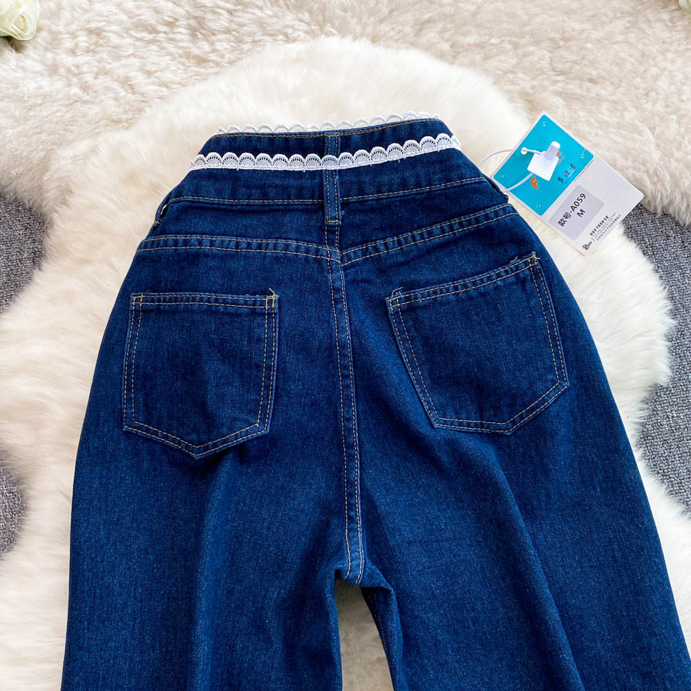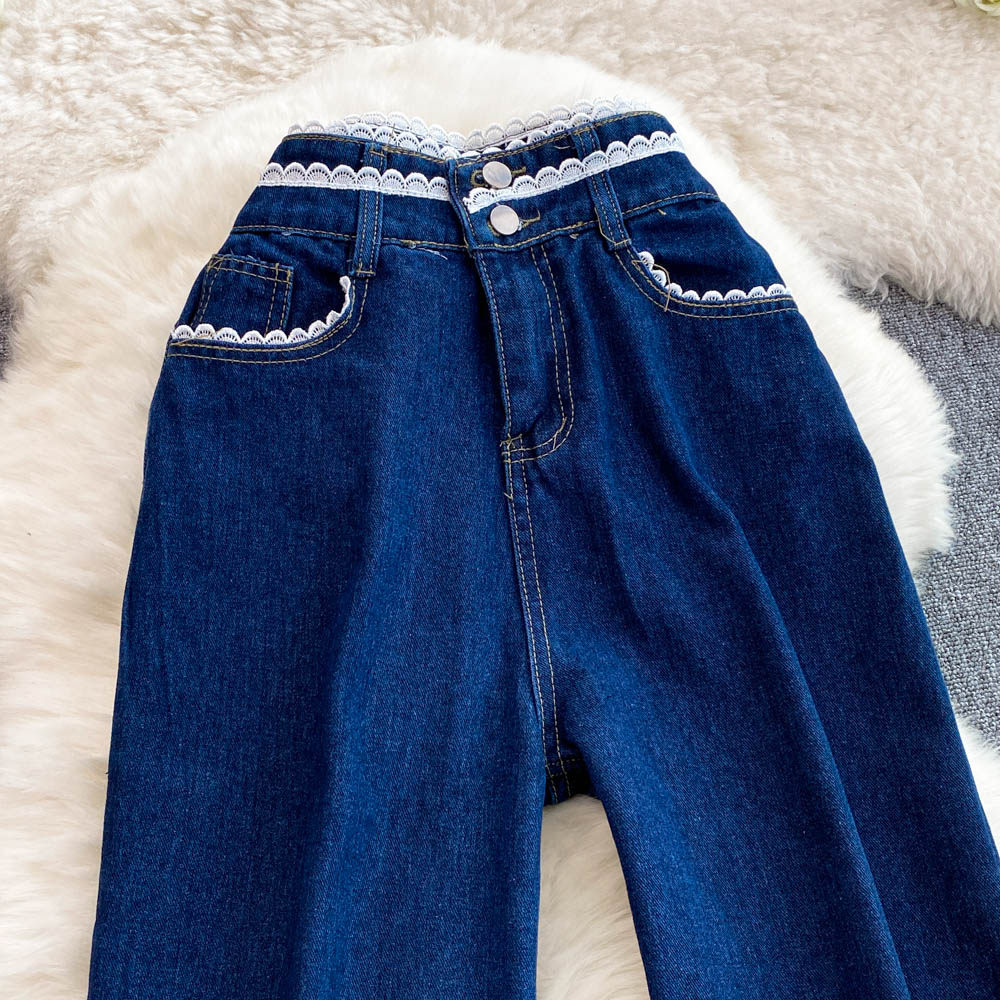 Осенние синие джинсы, штаны, большой размер, подходит для полных девушек, высокая талия, свободный прямой крой, для формы тела «груша»