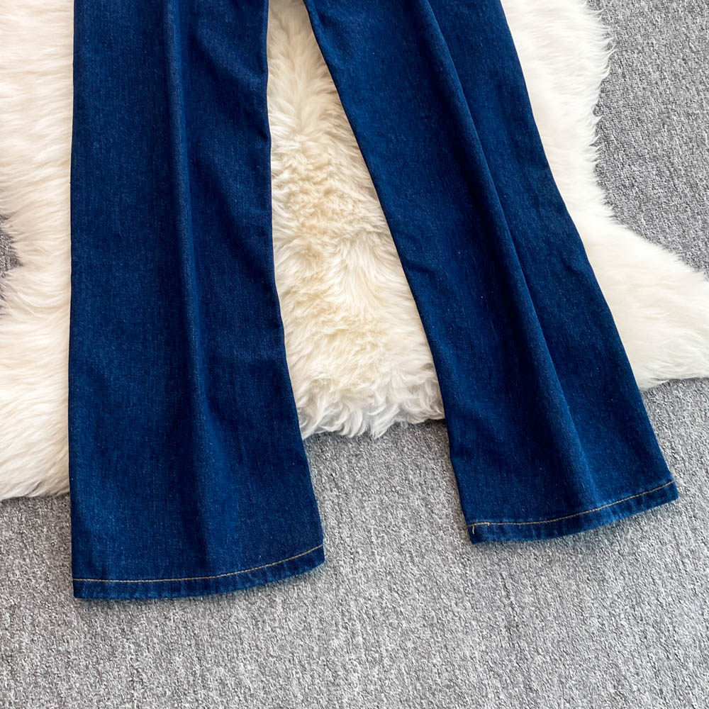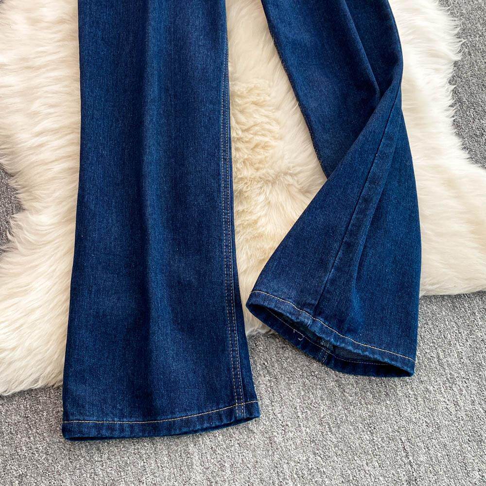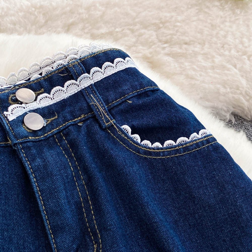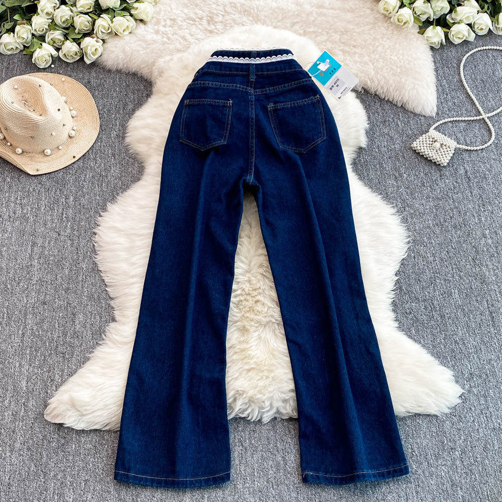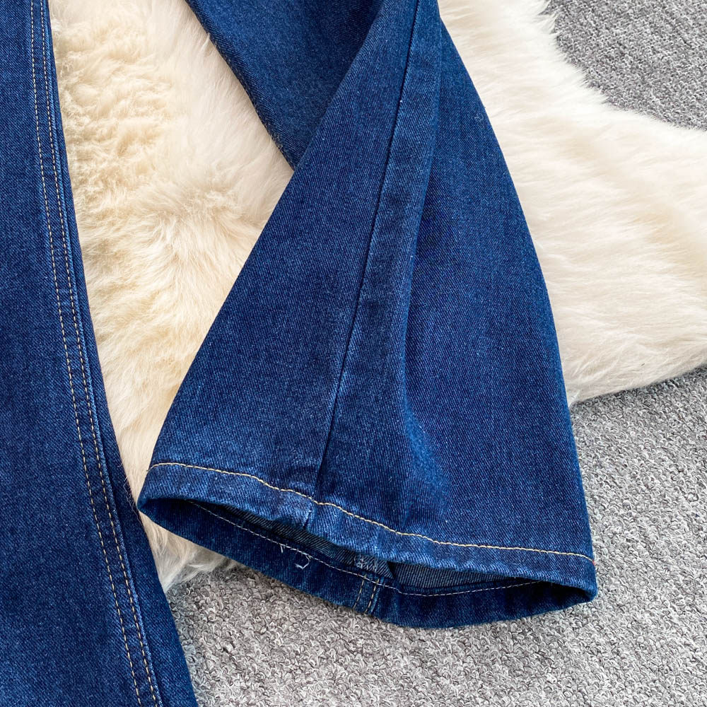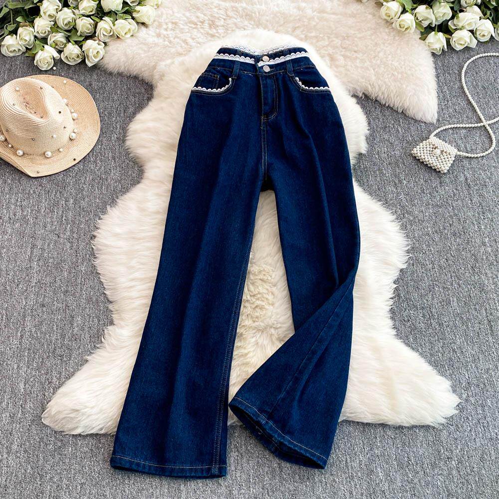 Осенние синие джинсы, штаны, большой размер, подходит для полных девушек, высокая талия, свободный прямой крой, для формы тела «груша»