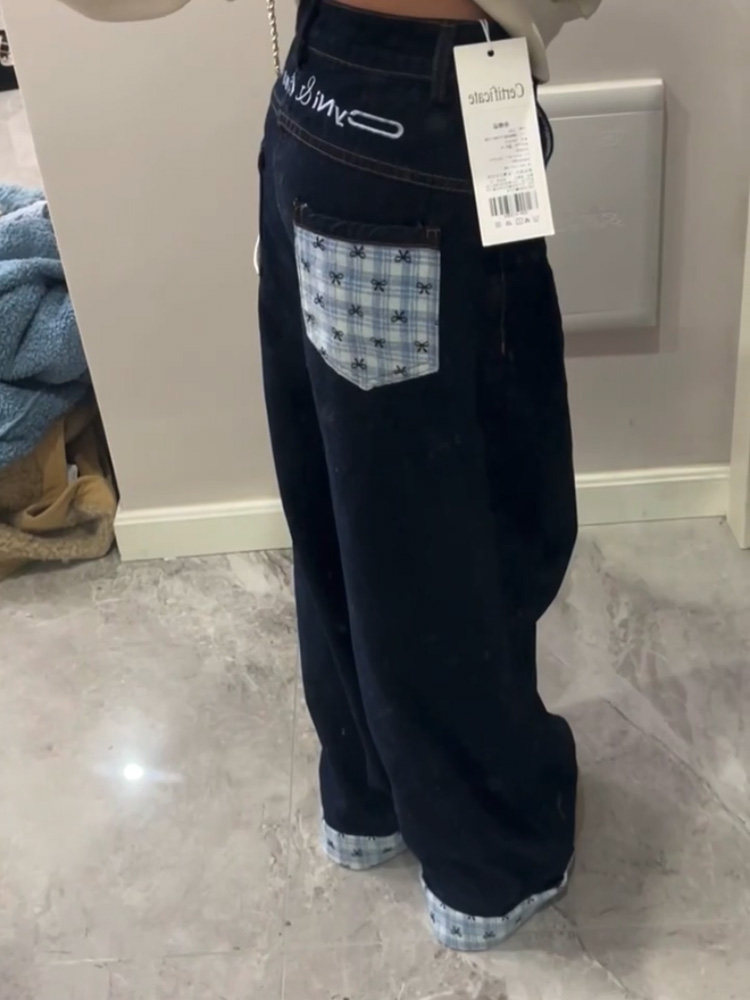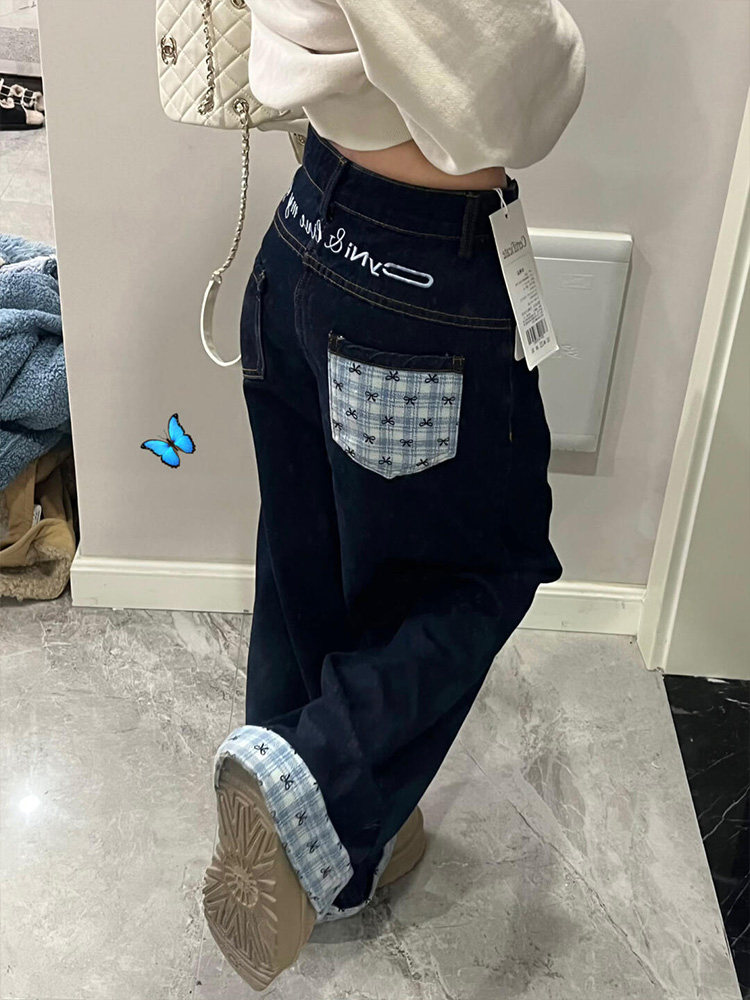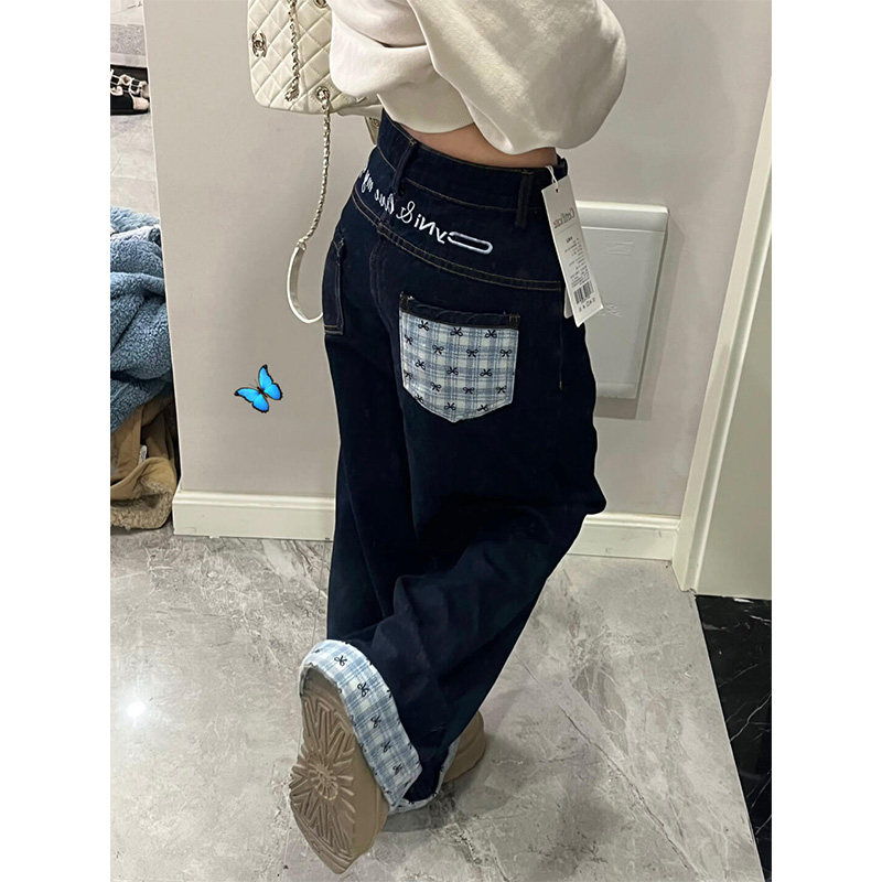 Дизайнерские джинсы, весенние штаны, в американском стиле, тренд сезона, свободный прямой крой