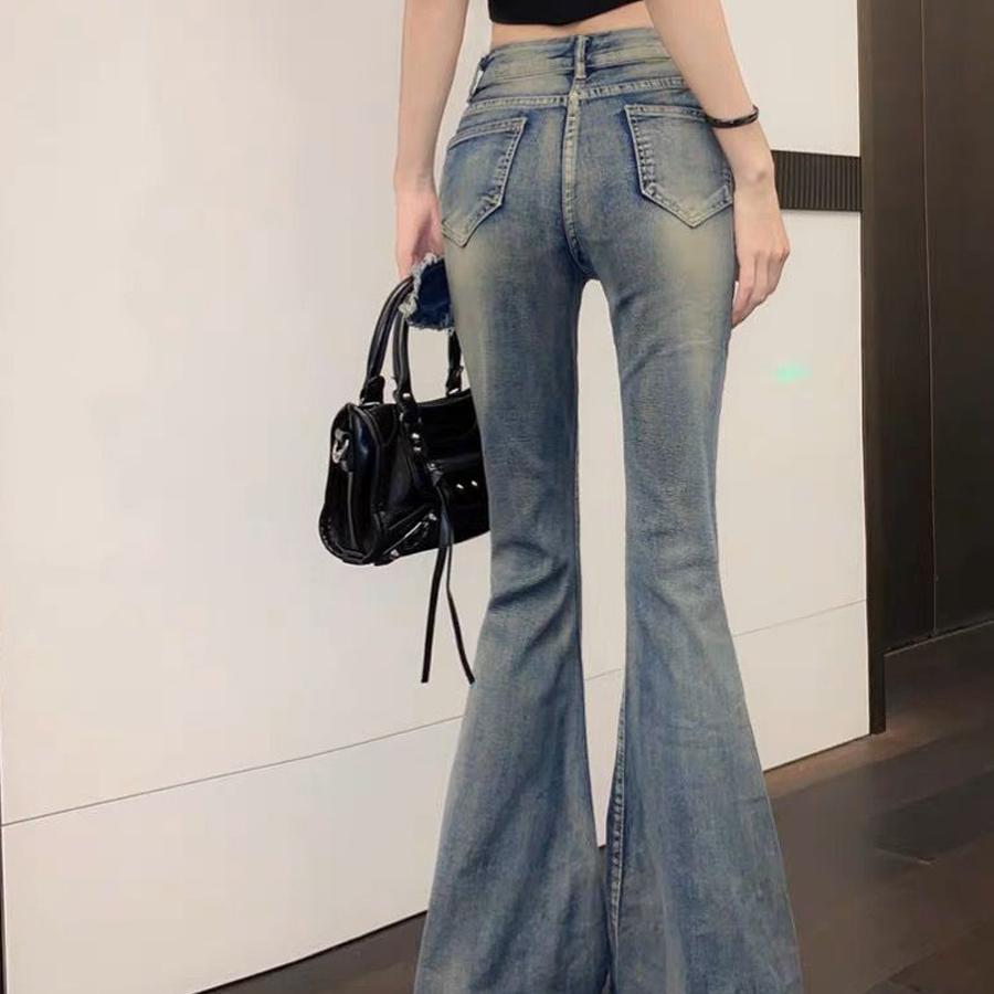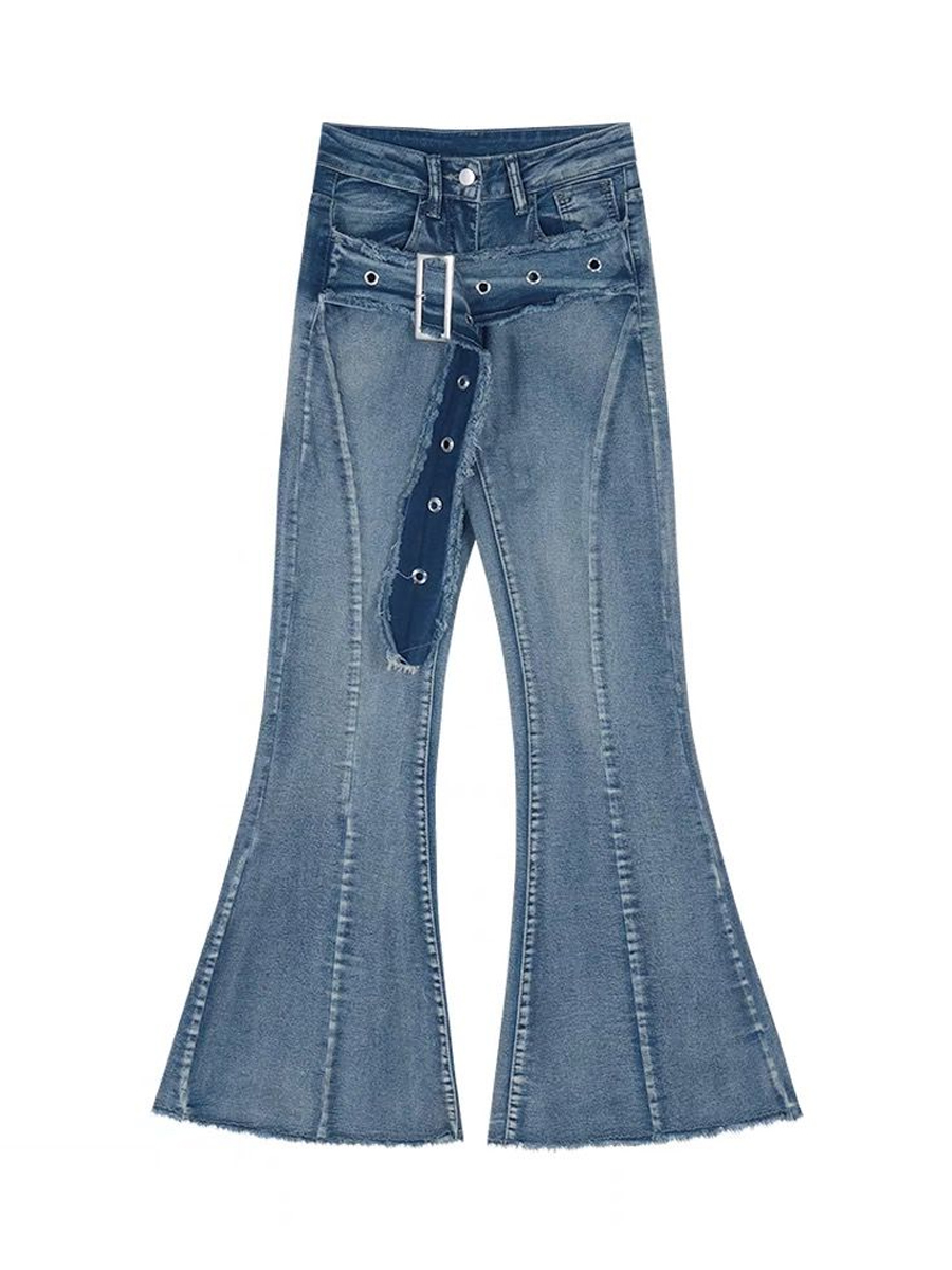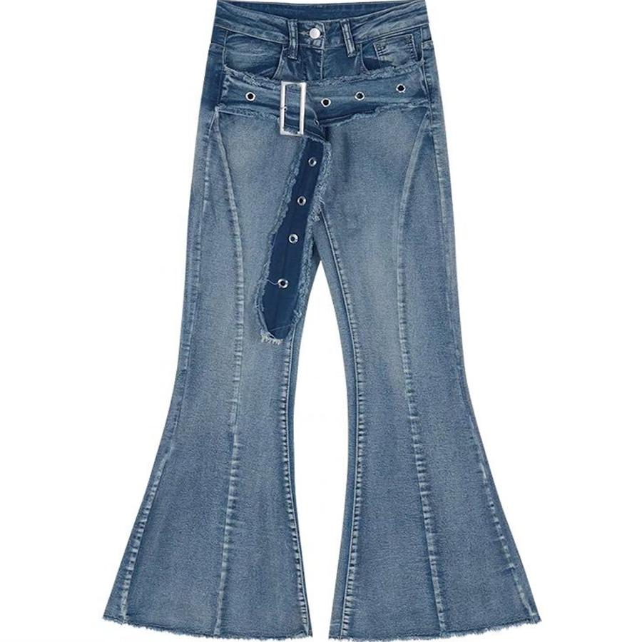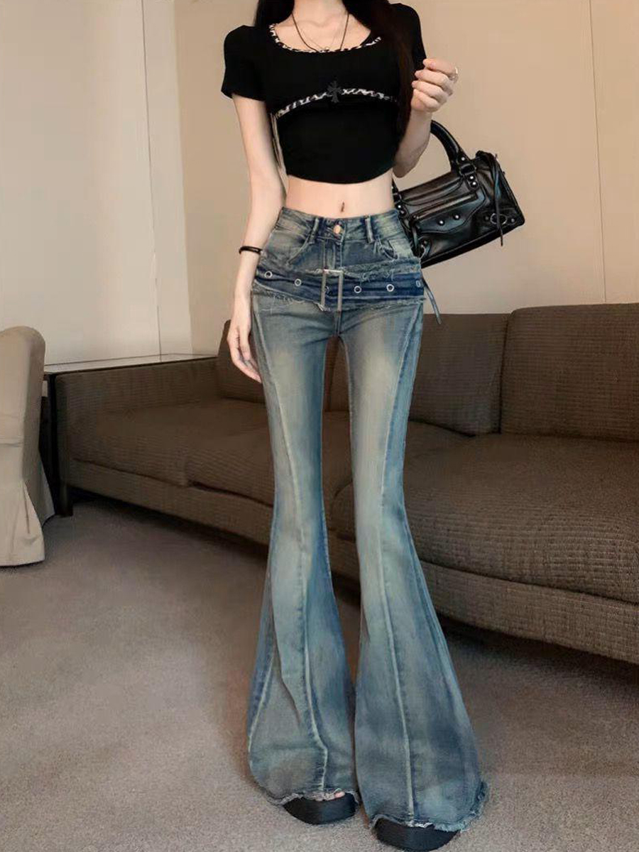 Джинсы, ремень, дизайнерский мегафон, демисезонные штаны, приталенные леггинсы, в американском стиле, высокая талия
