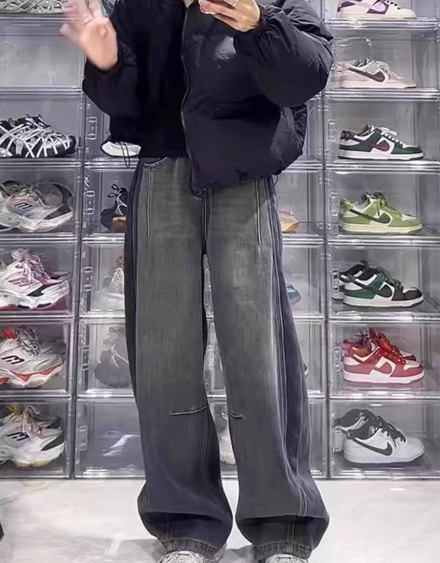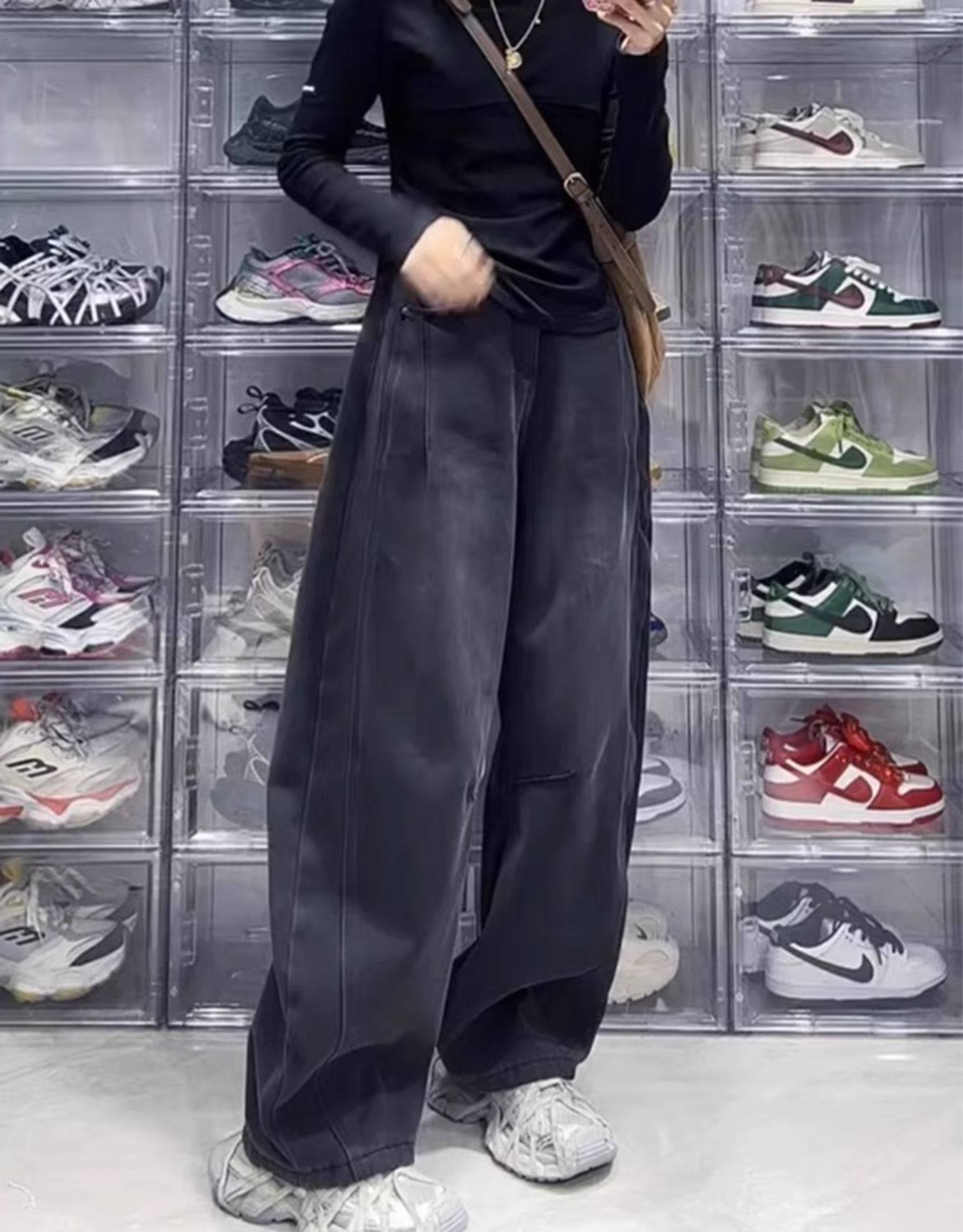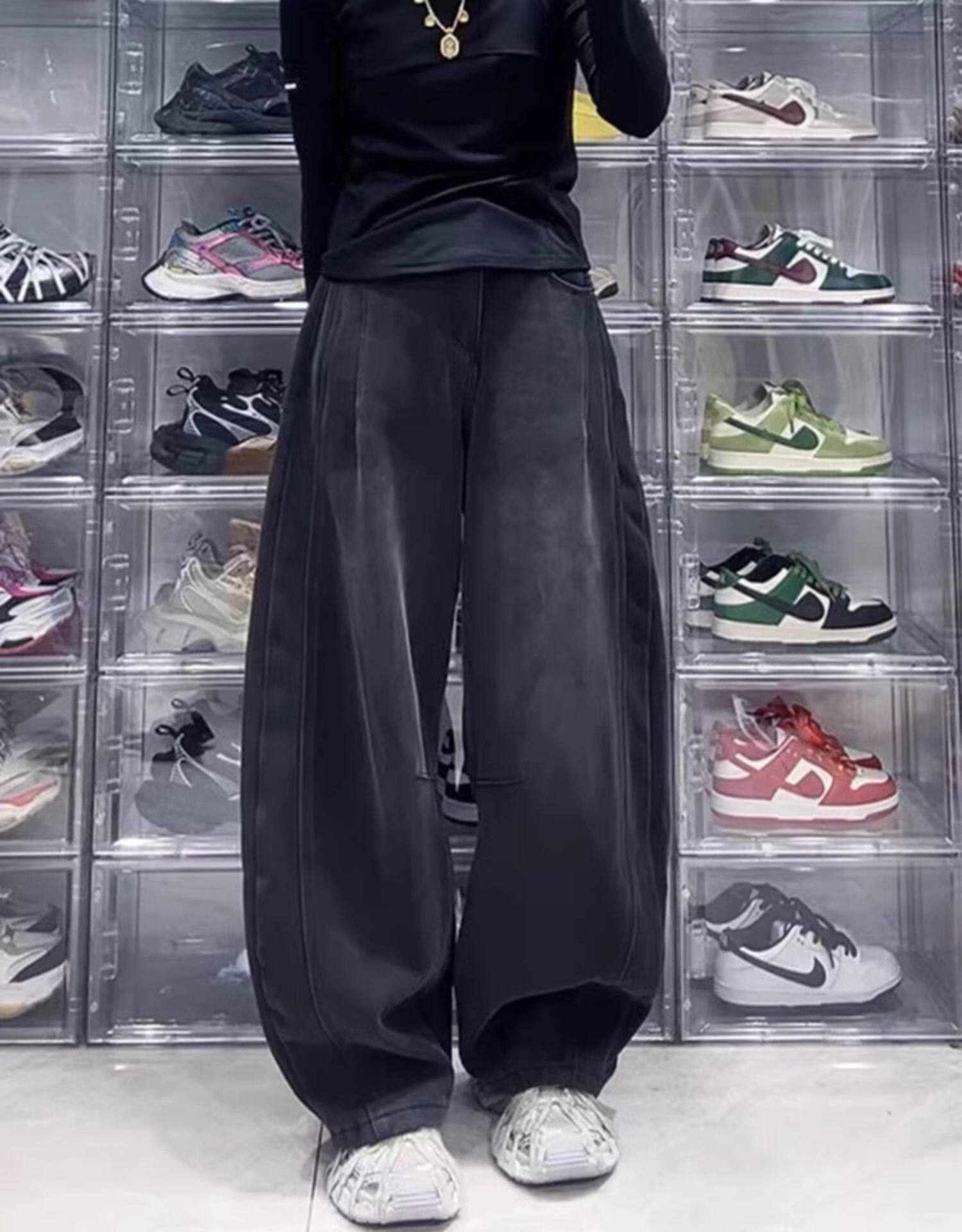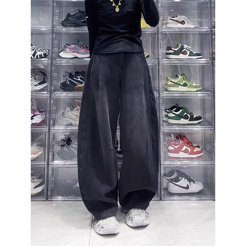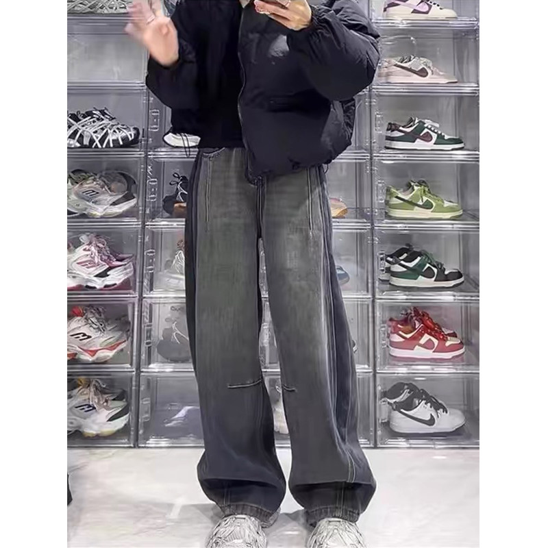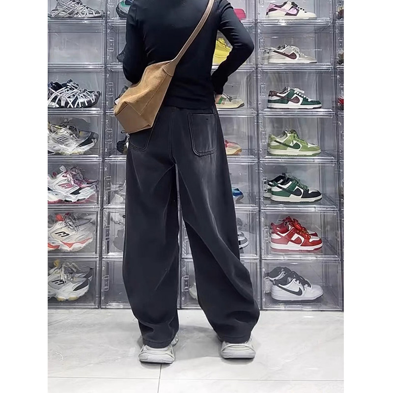 Ретро прямые свободные джинсы, осенние приталенные штаны, большой размер, для формы тела «груша», свободный крой, высокая талия