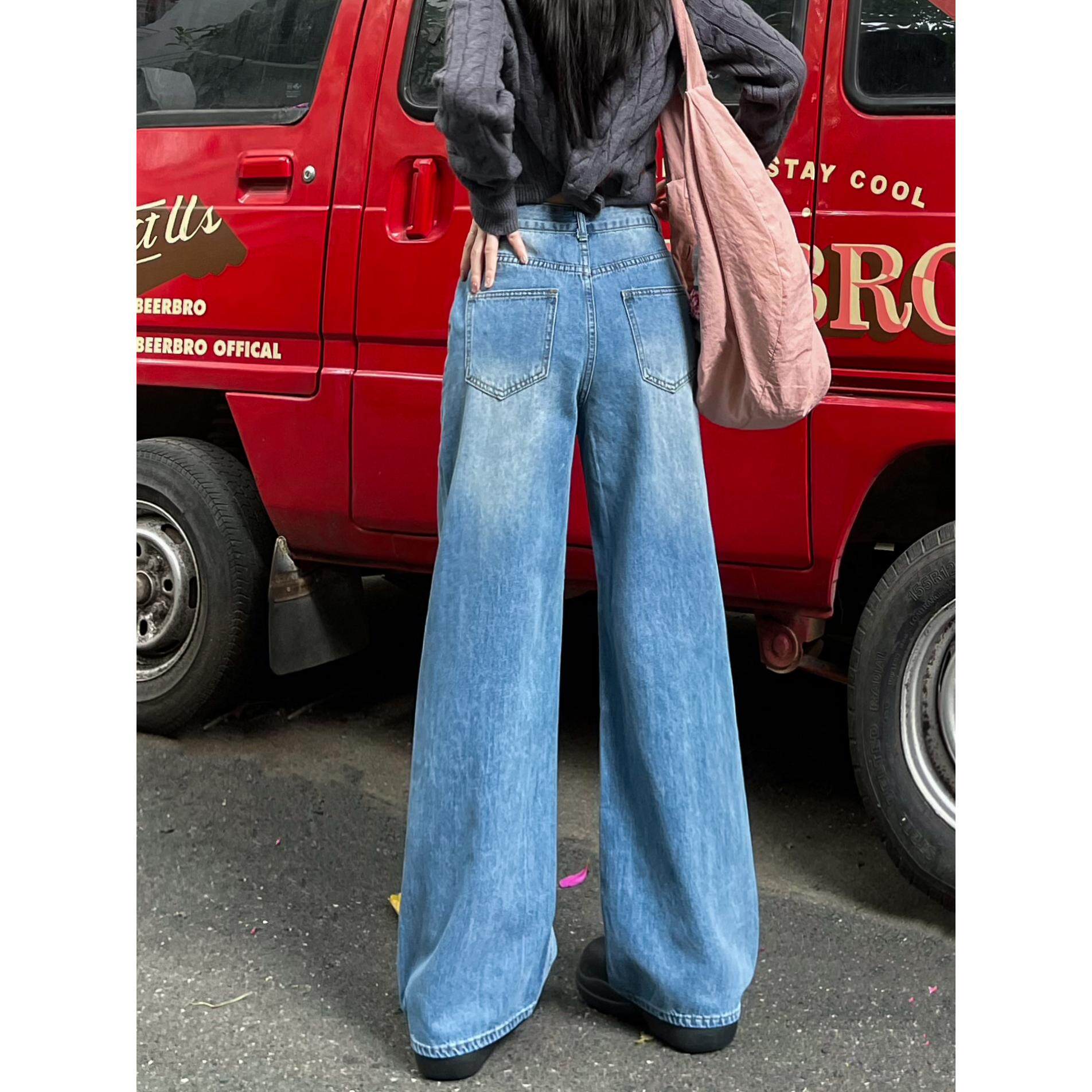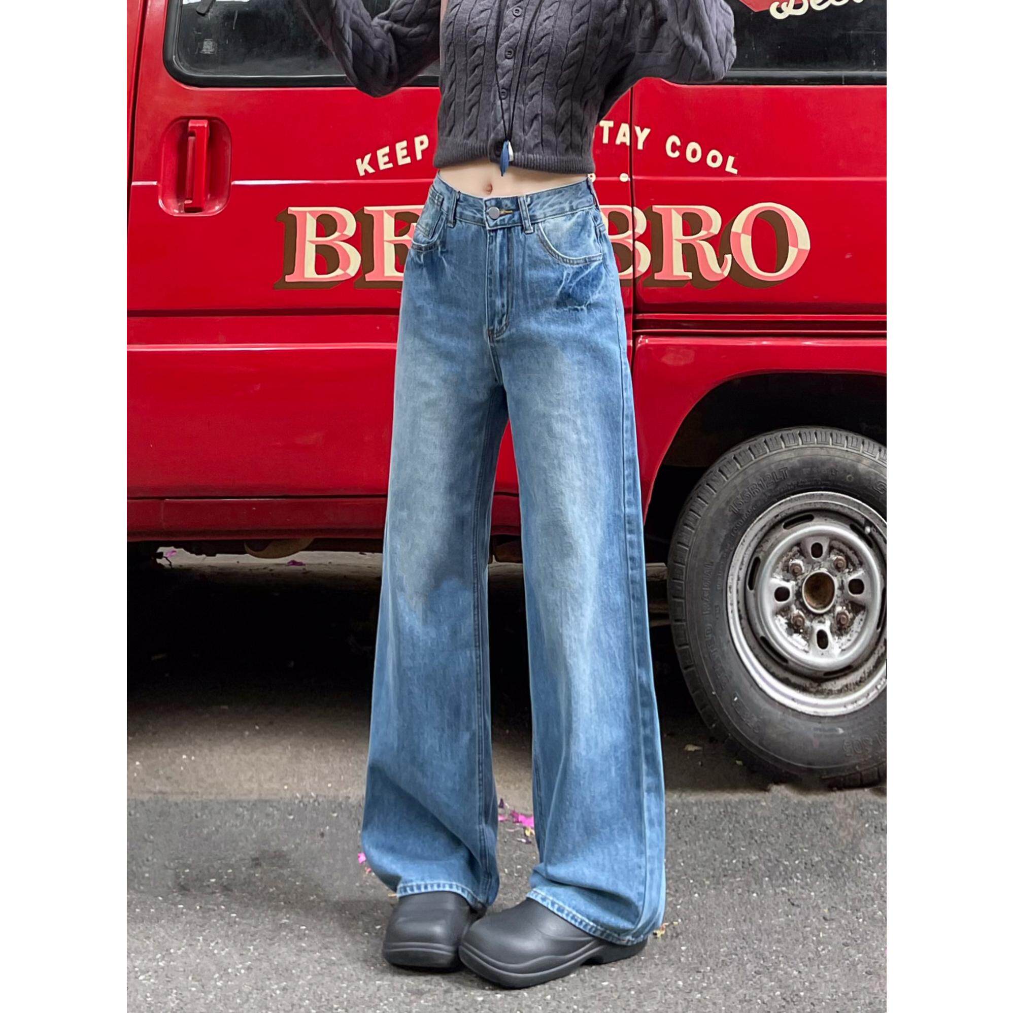 Ретро синие зимние джинсы, приталенные модные штаны, высокая талия