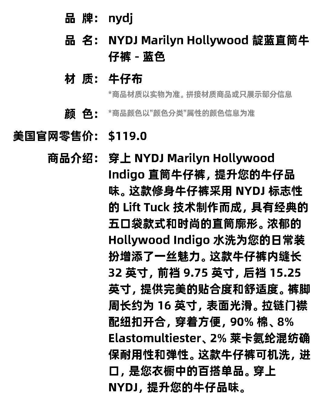Самоуправление NYDJ Marilyn Hollywood Indigo Straight Jeans - Blue American Outlet Straight