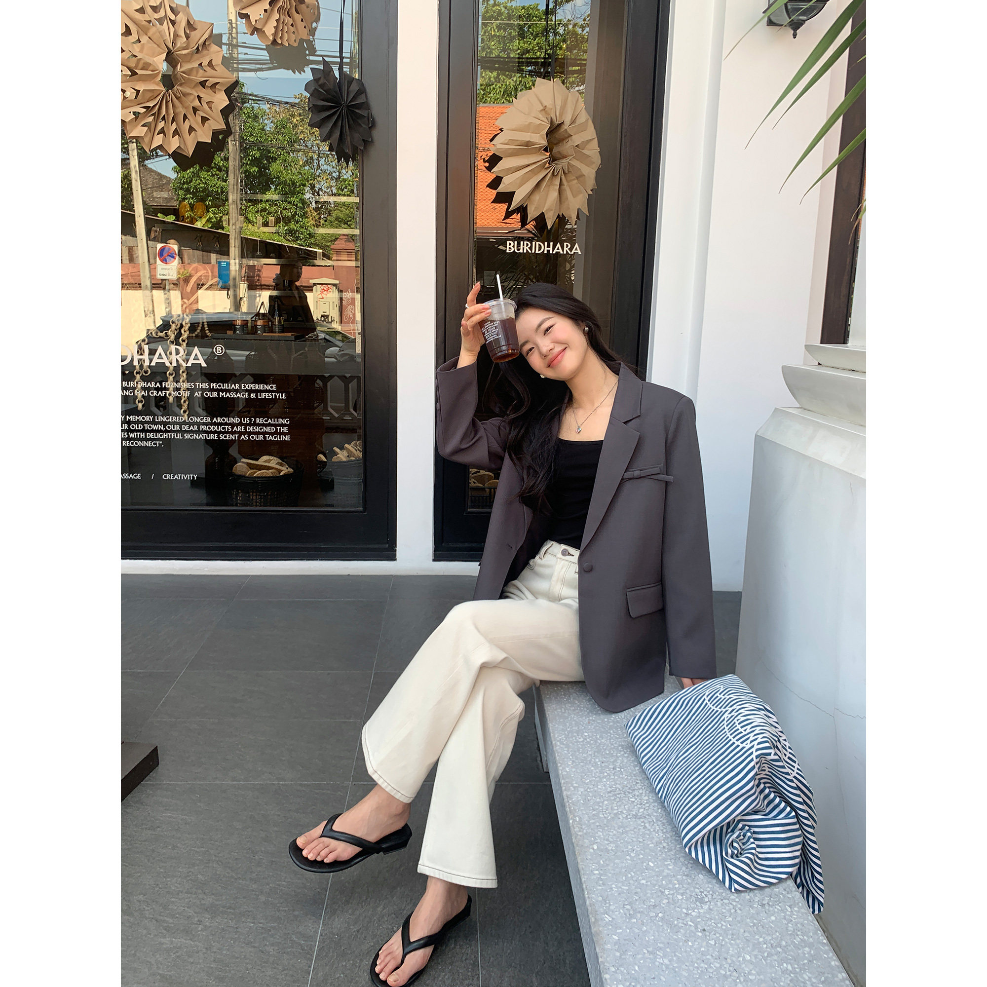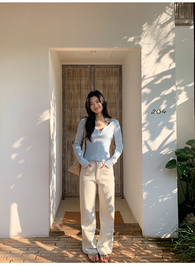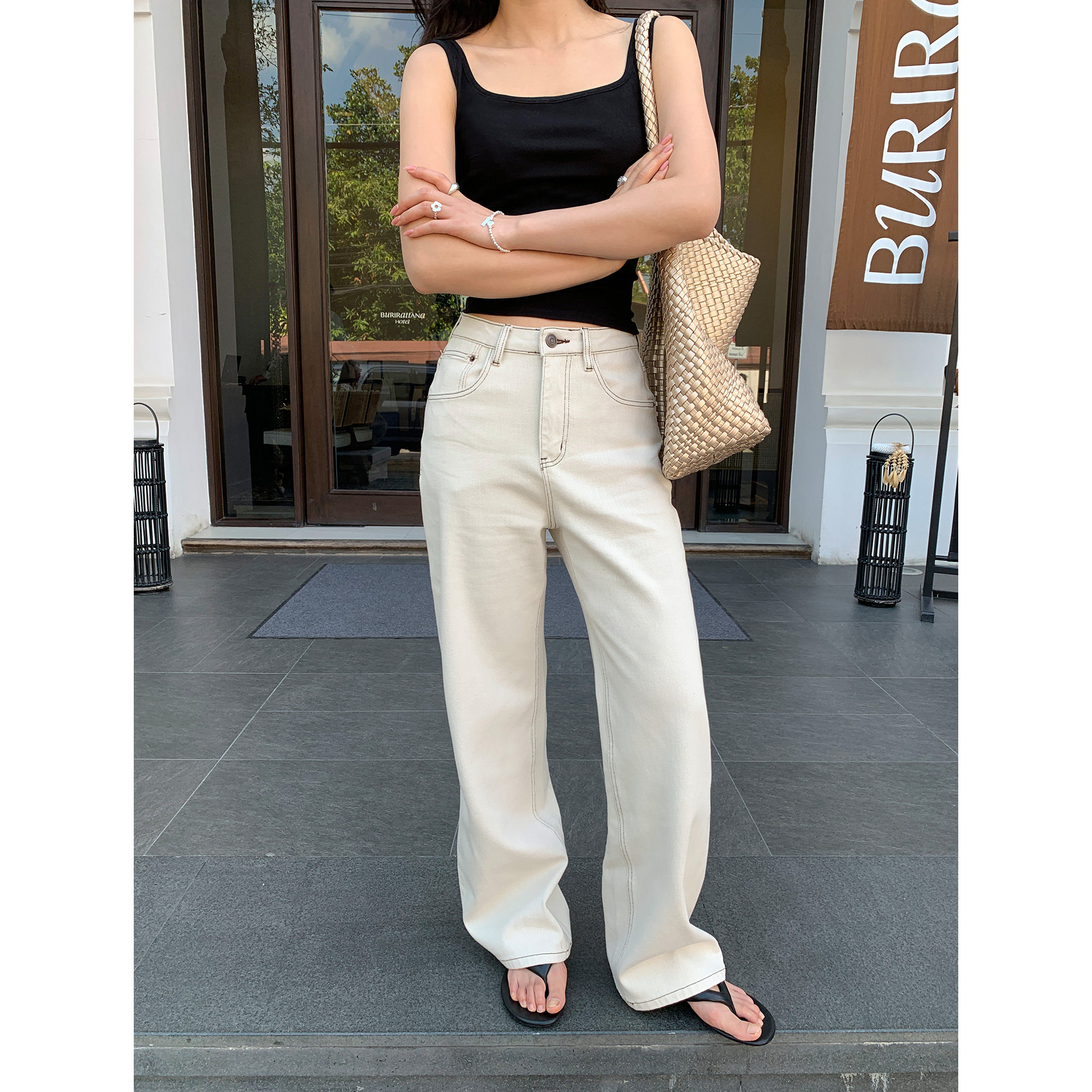 pusumede Белые прямые свободные джинсы, штаны, свободный прямой крой, высокая талия