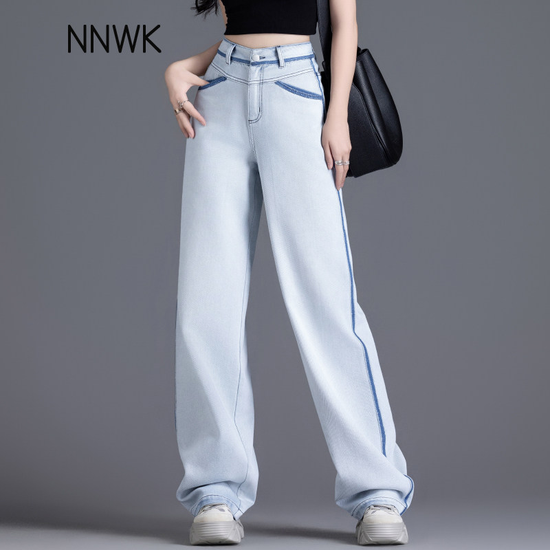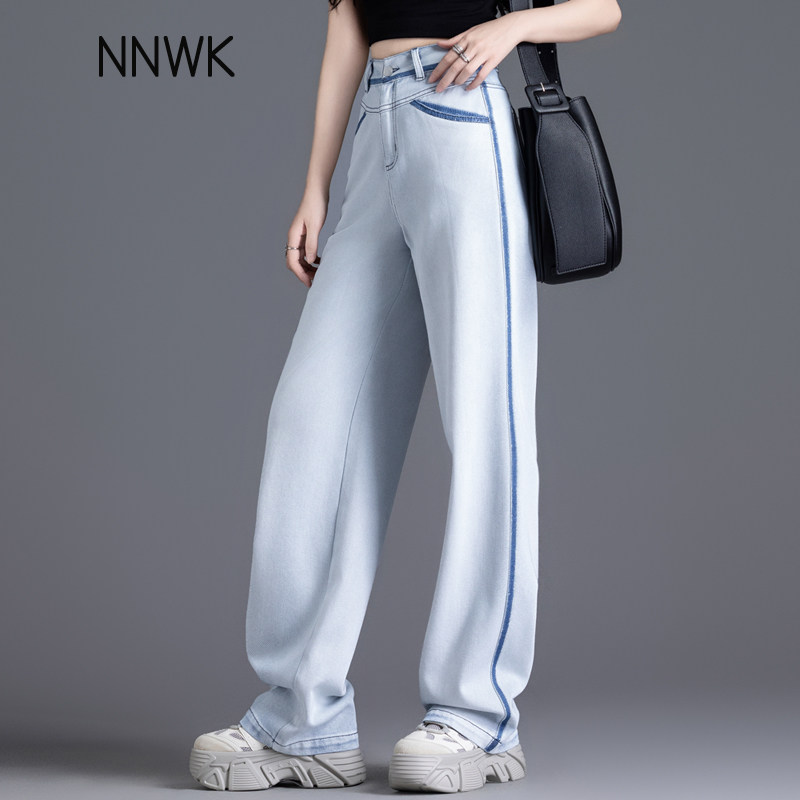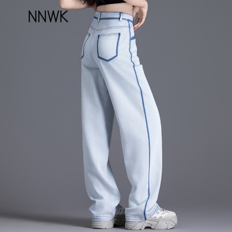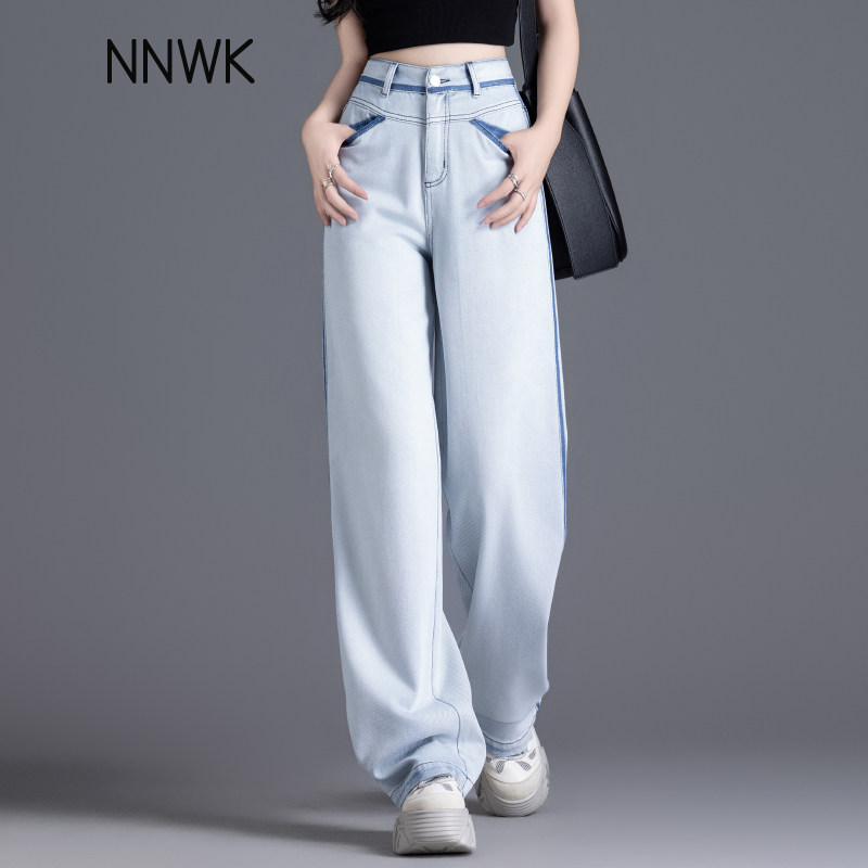 Светлые джинсы, летние тонкие штаны, высокая талия, свободный прямой крой