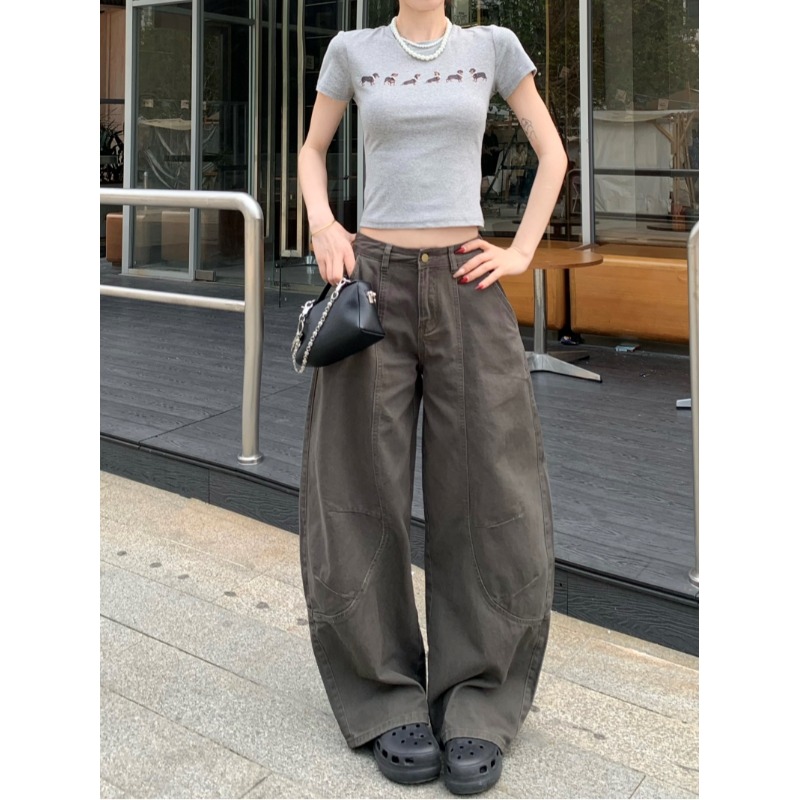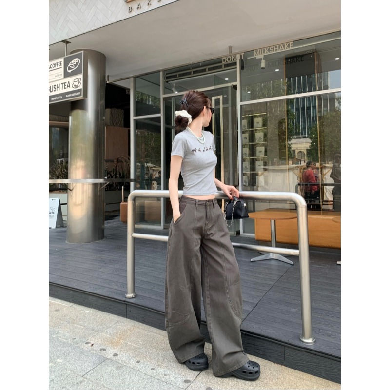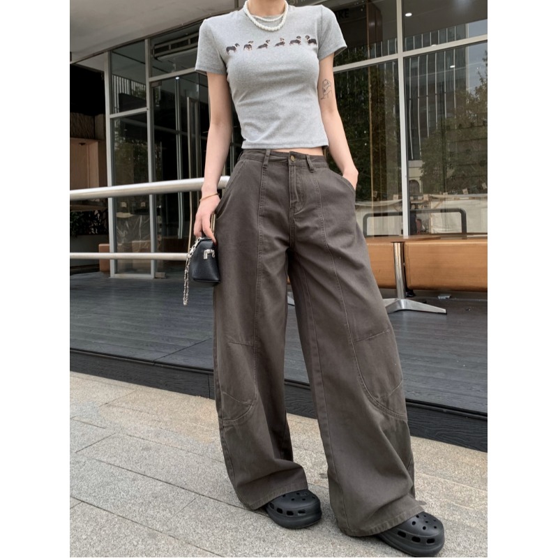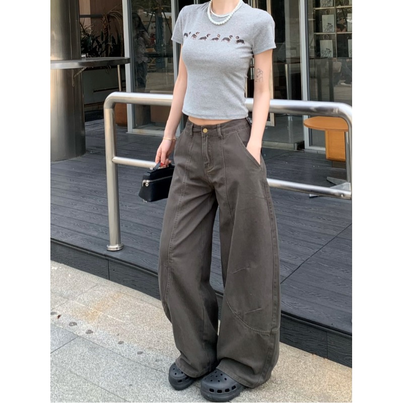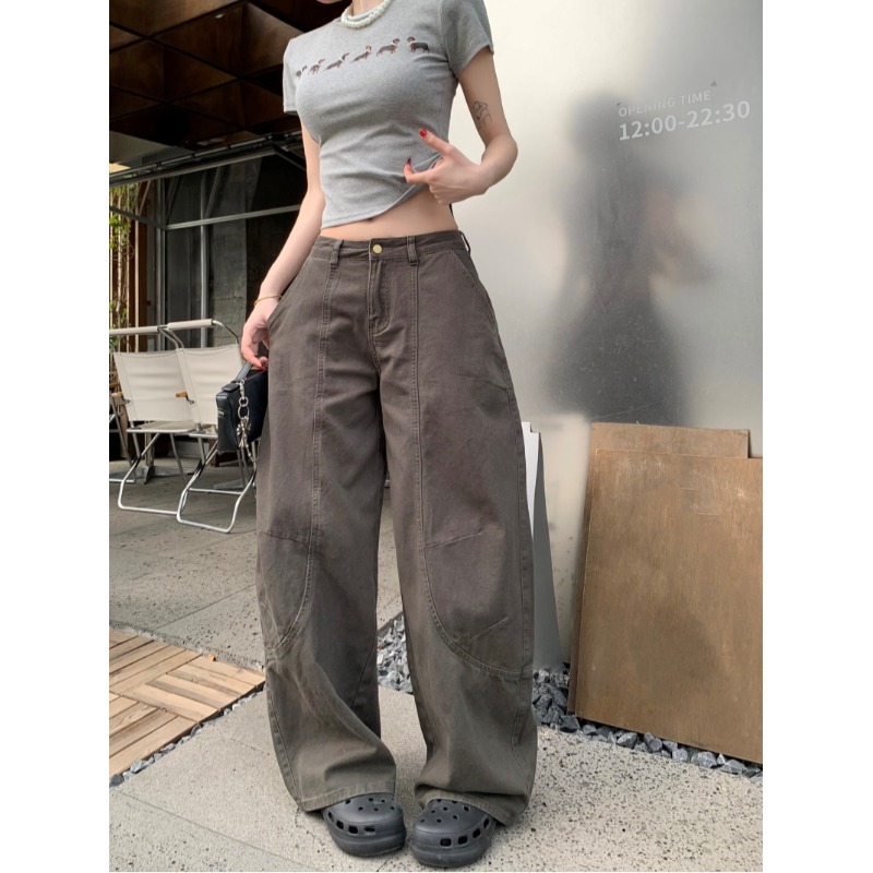 Ретро штаны, джинсы, в американском стиле, высокая талия, свободный прямой крой
