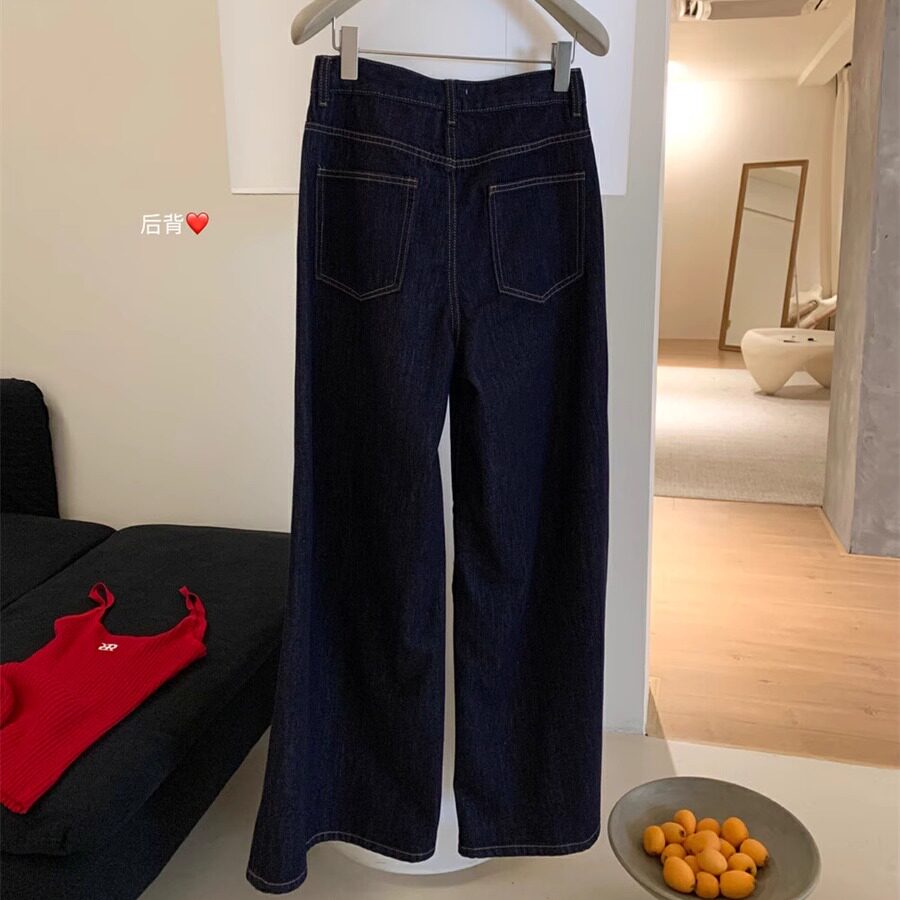 Летние темно-синие ретро джинсы, штаны, в корейском стиле, свободный крой