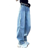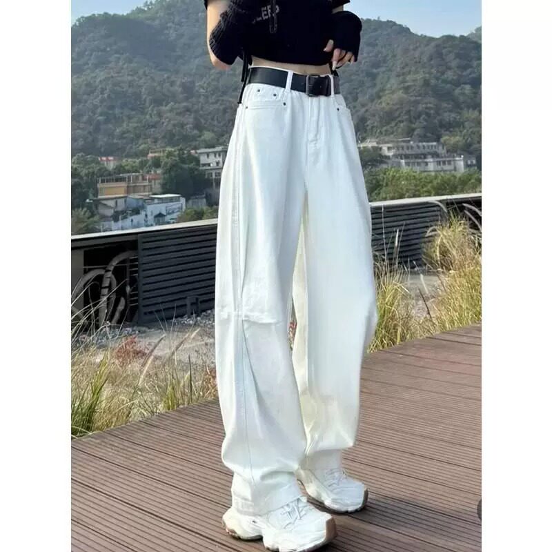 Синие осенние джинсы, белые штаны, высокая талия, свободный прямой крой