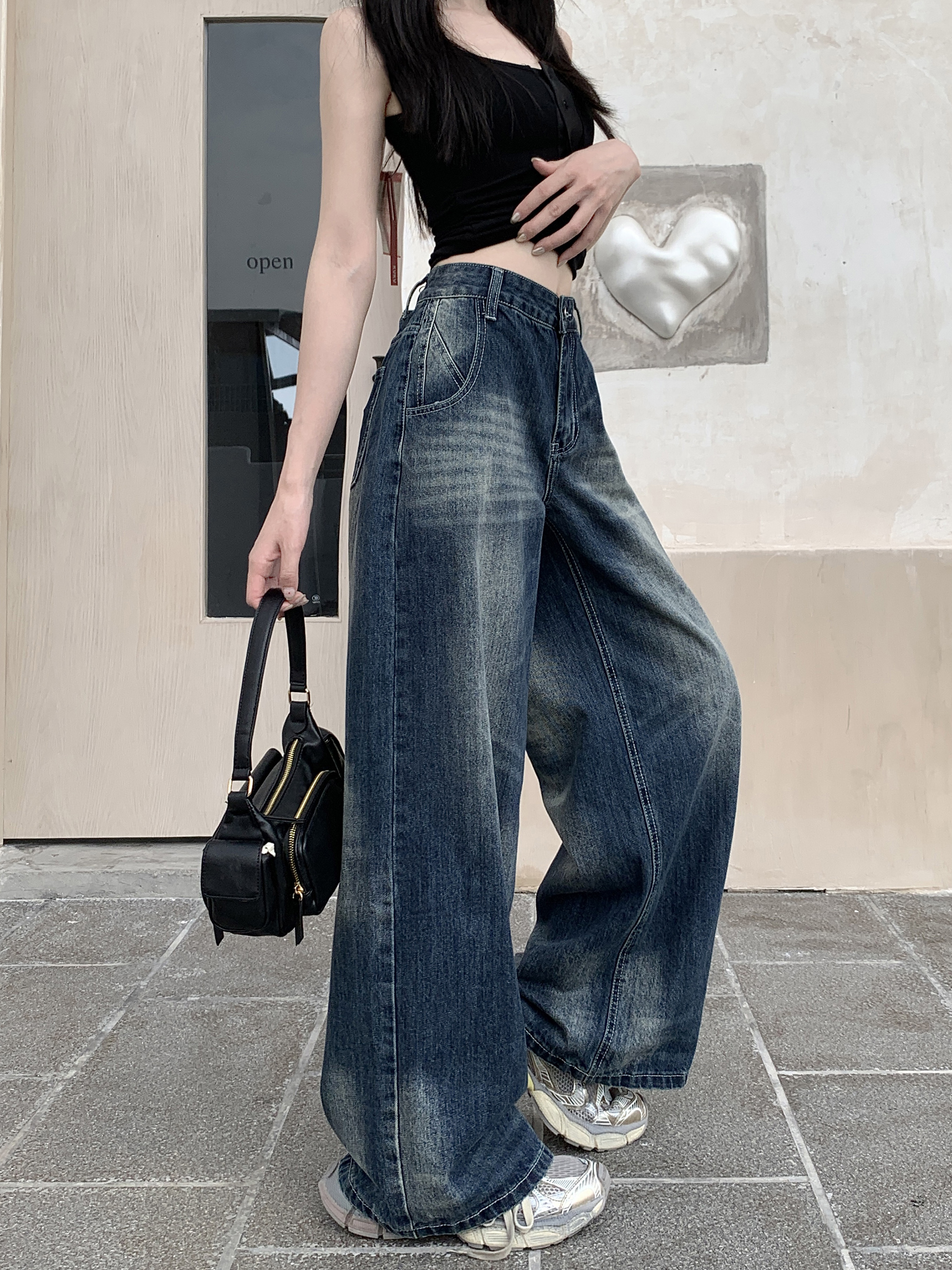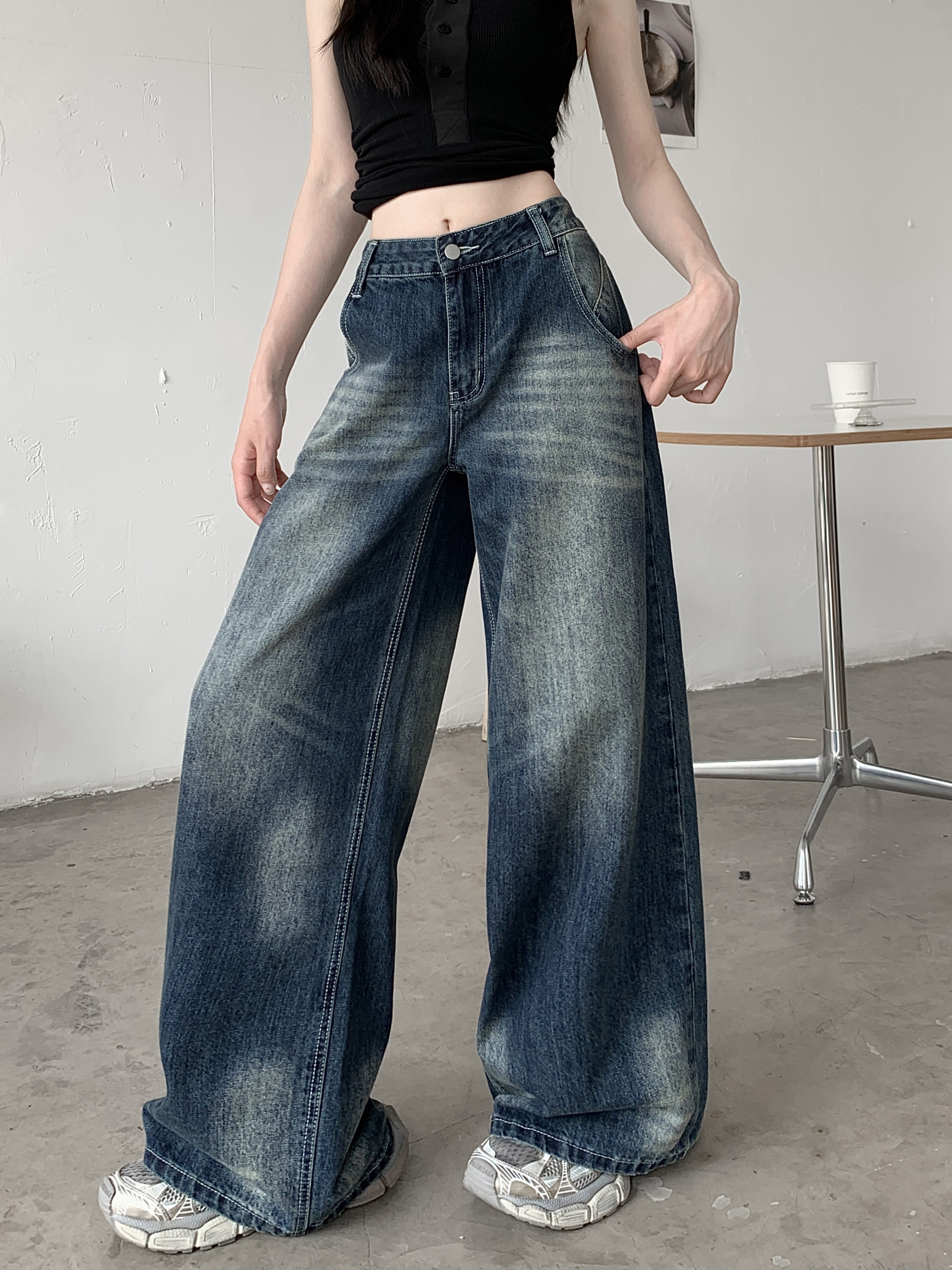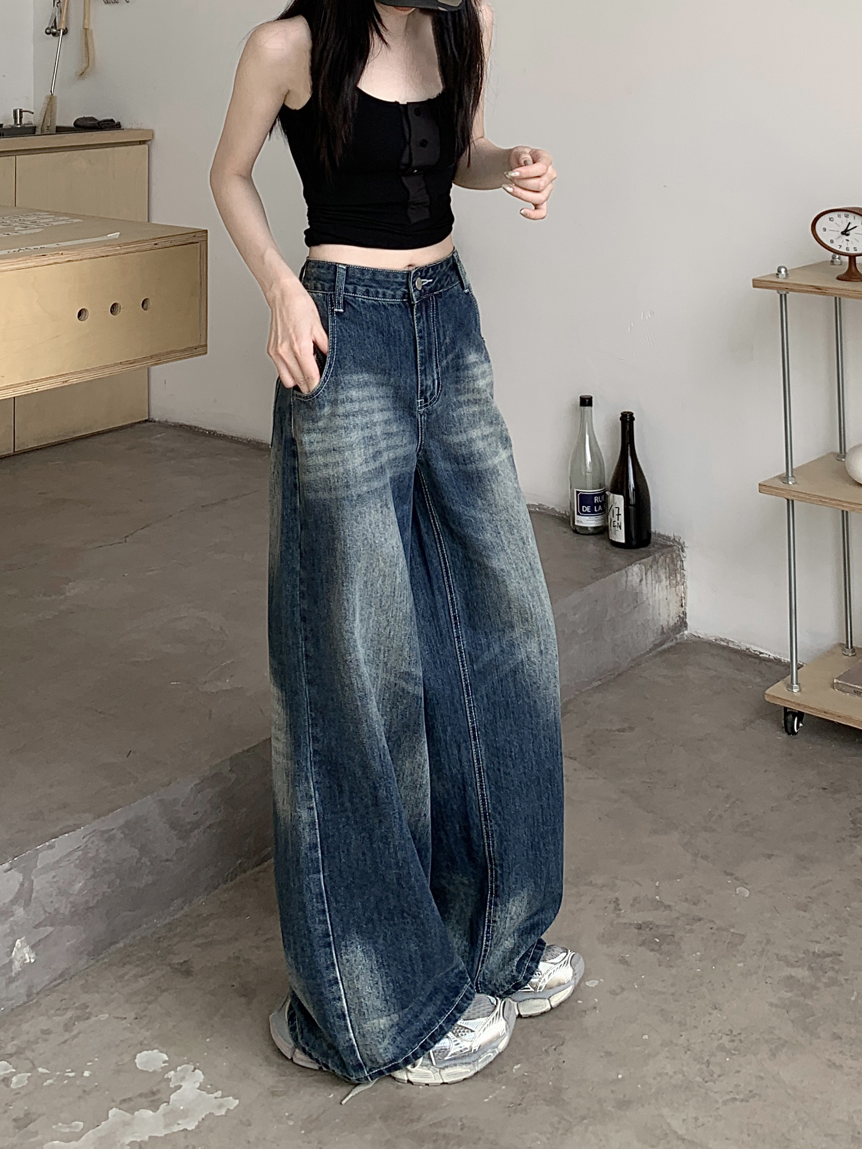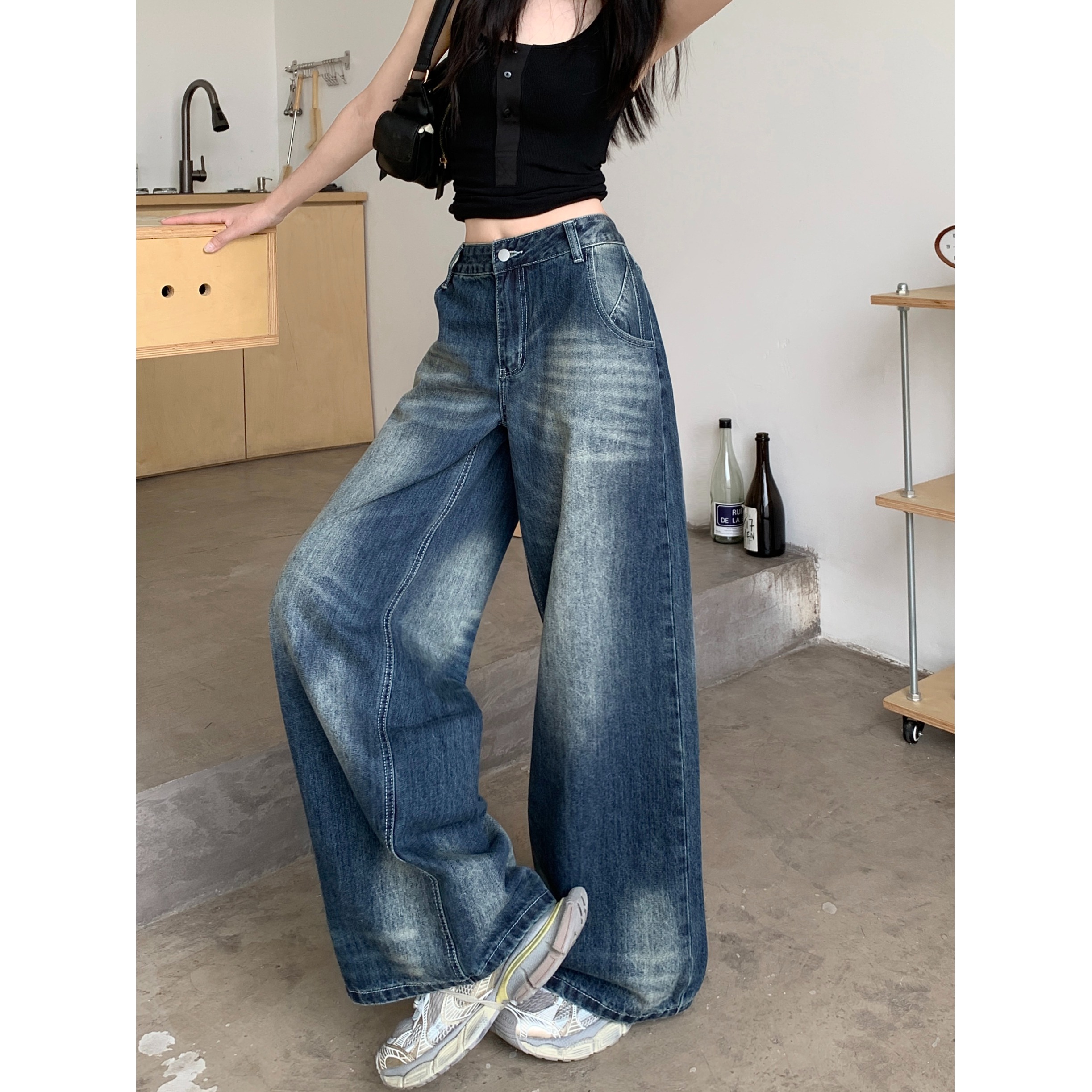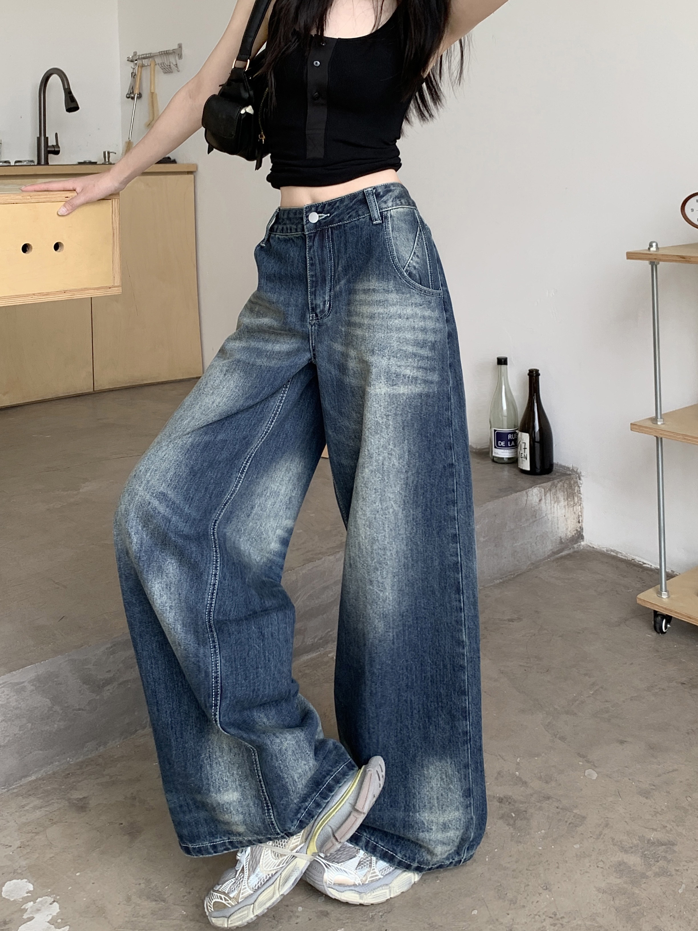 Ретро джинсы, синие штаны, свободный крой