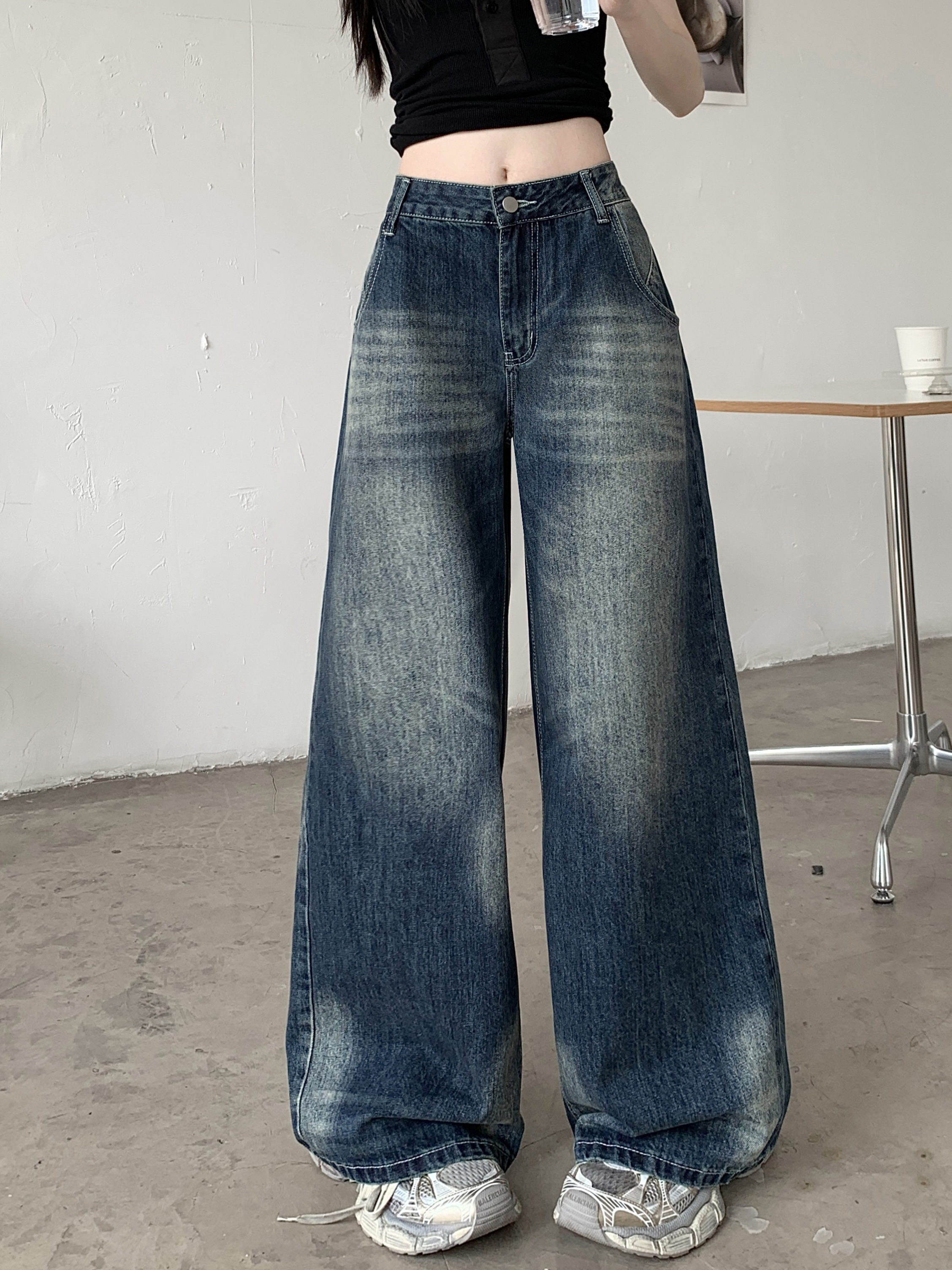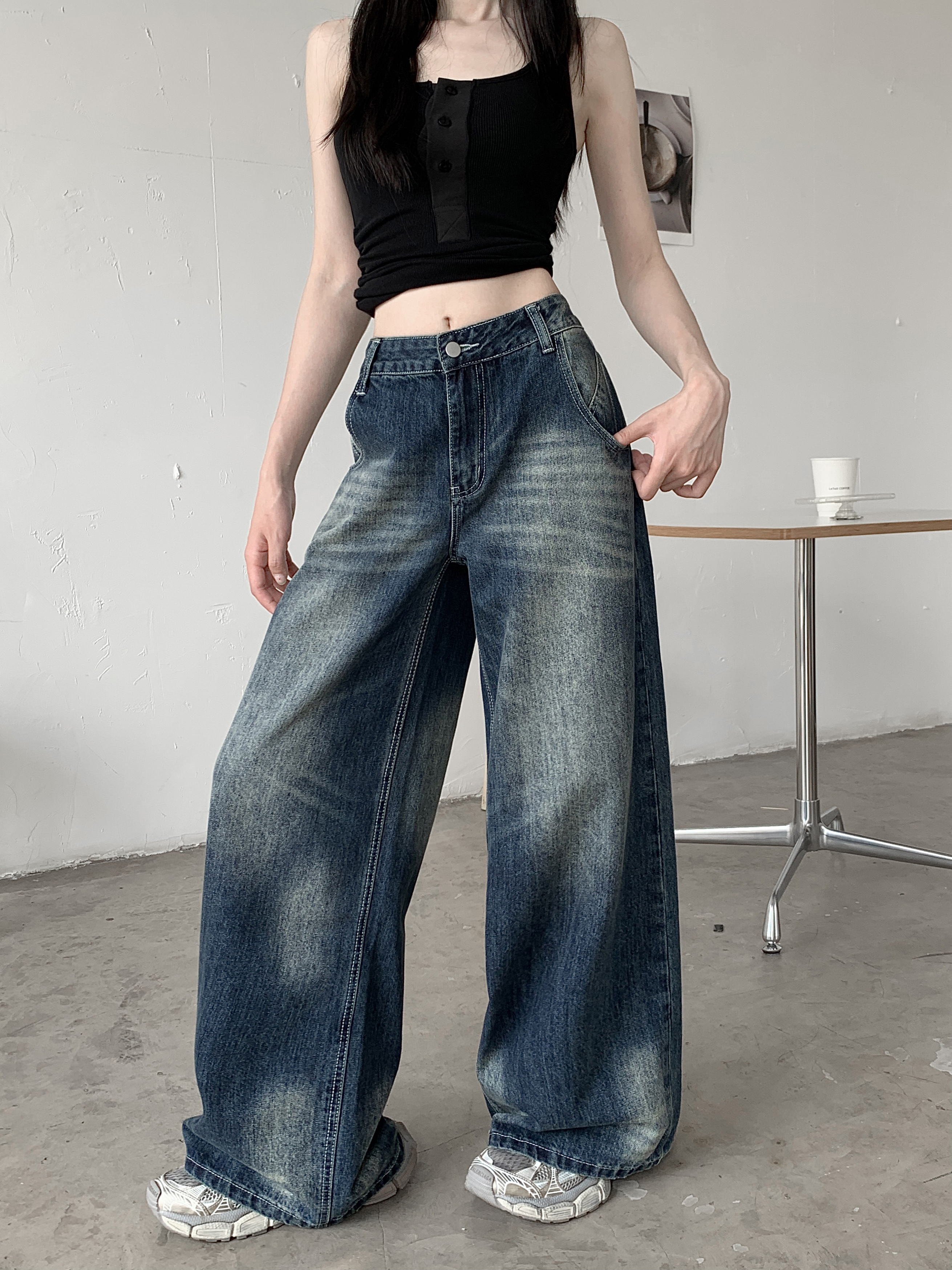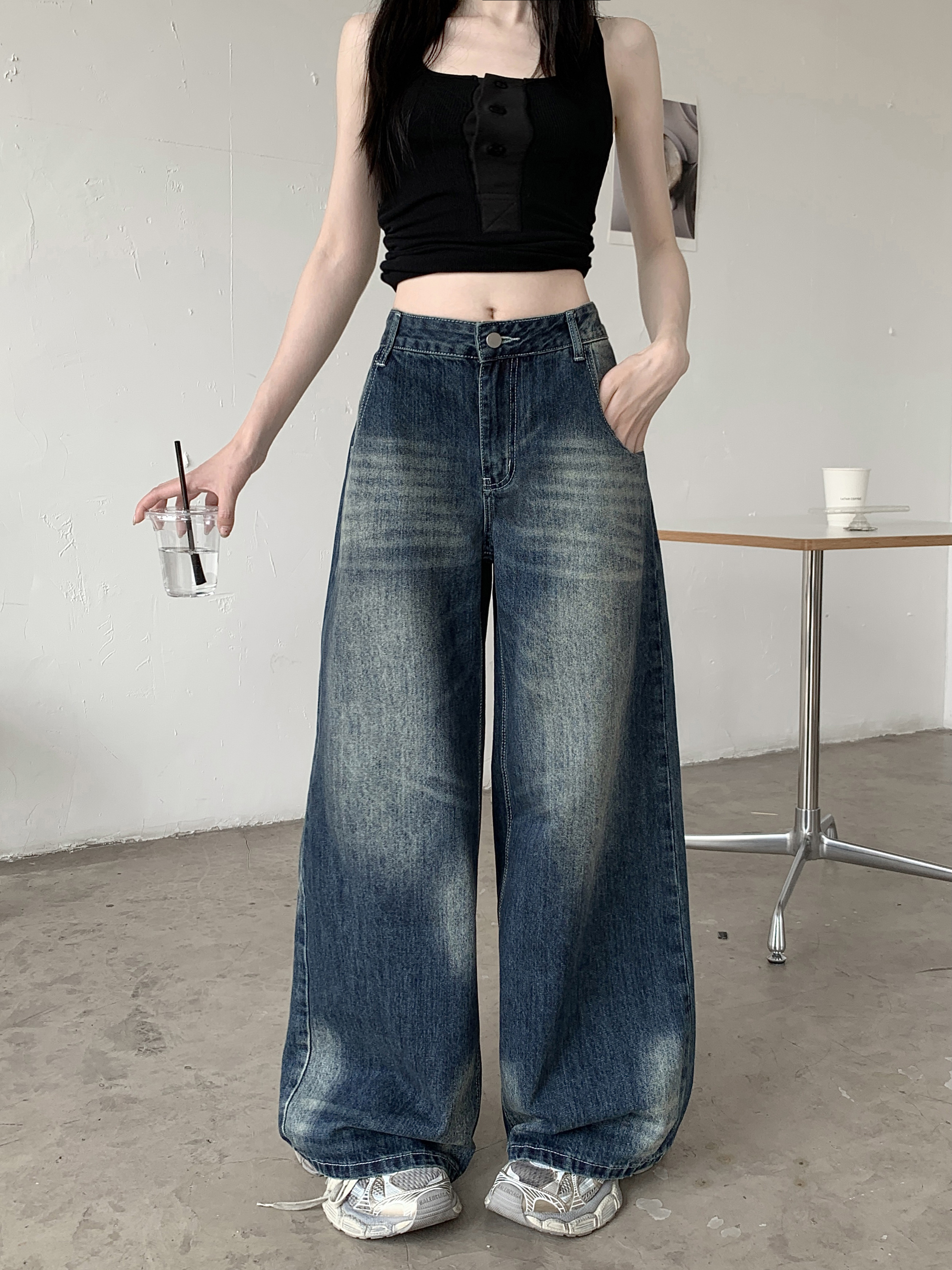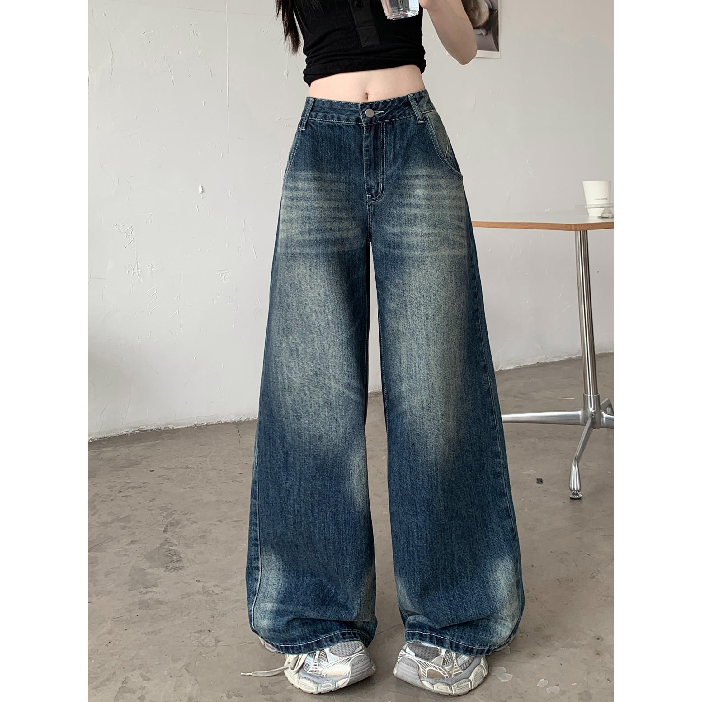 Ретро джинсы, синие штаны, свободный крой