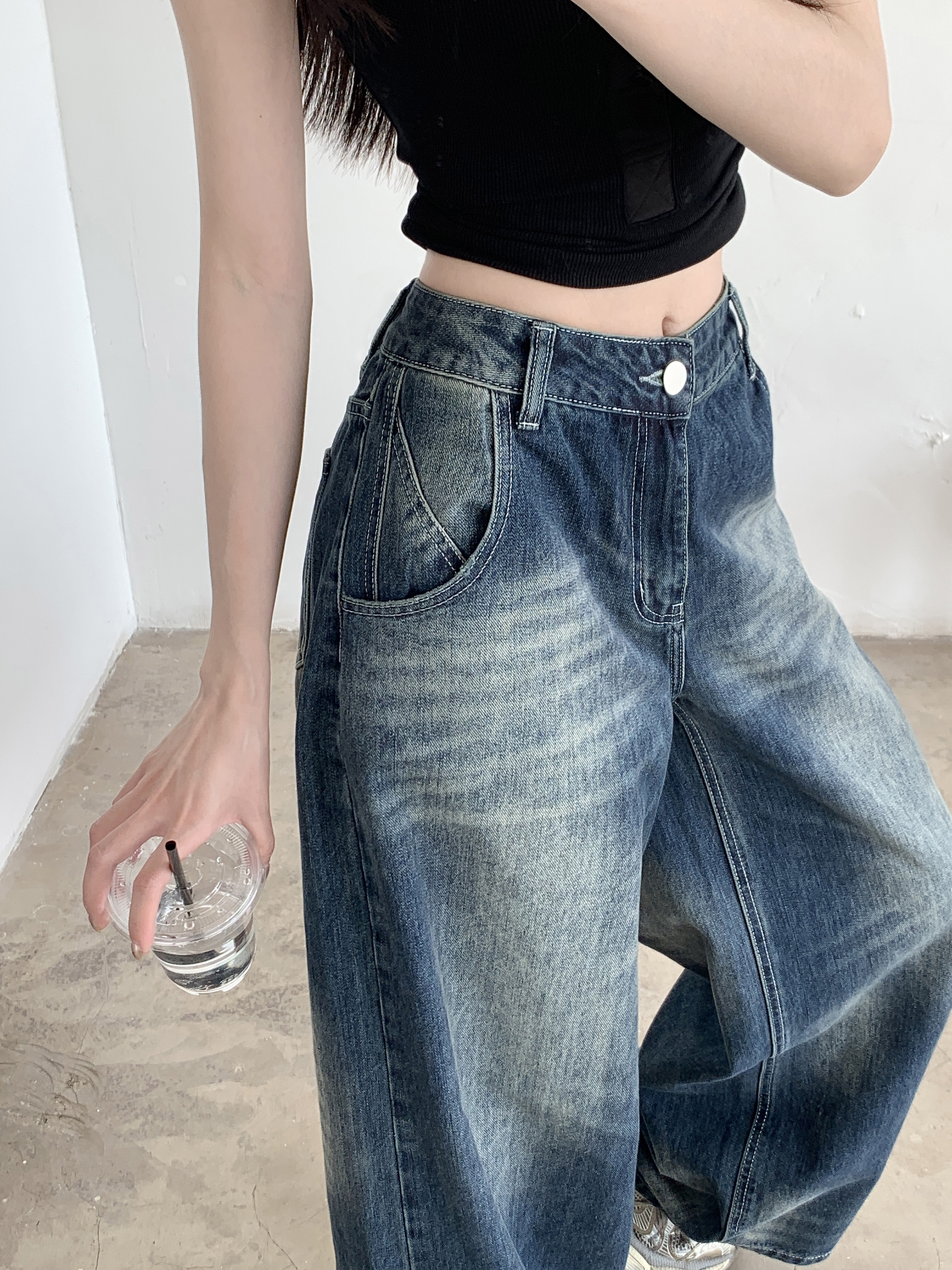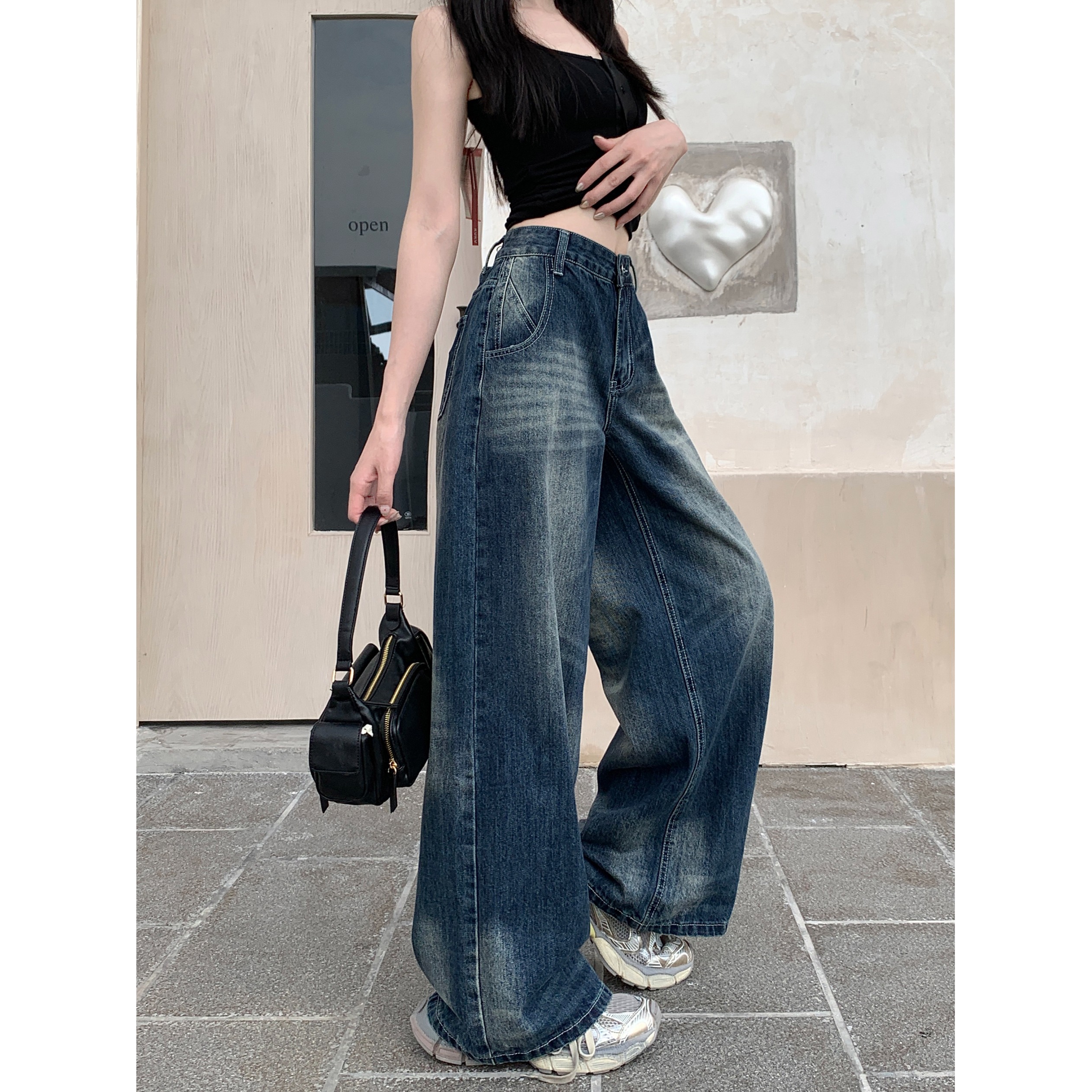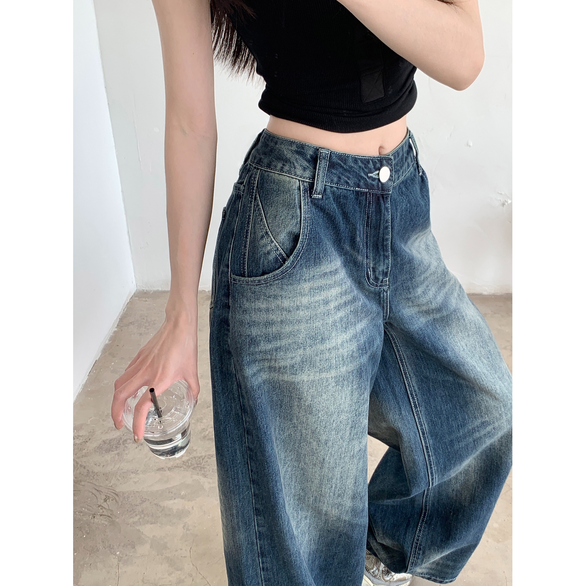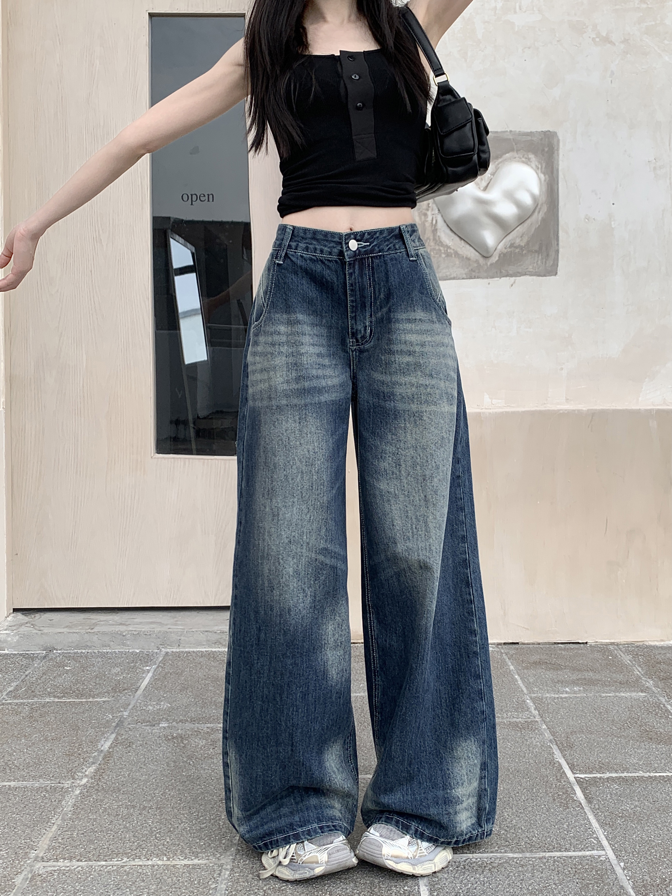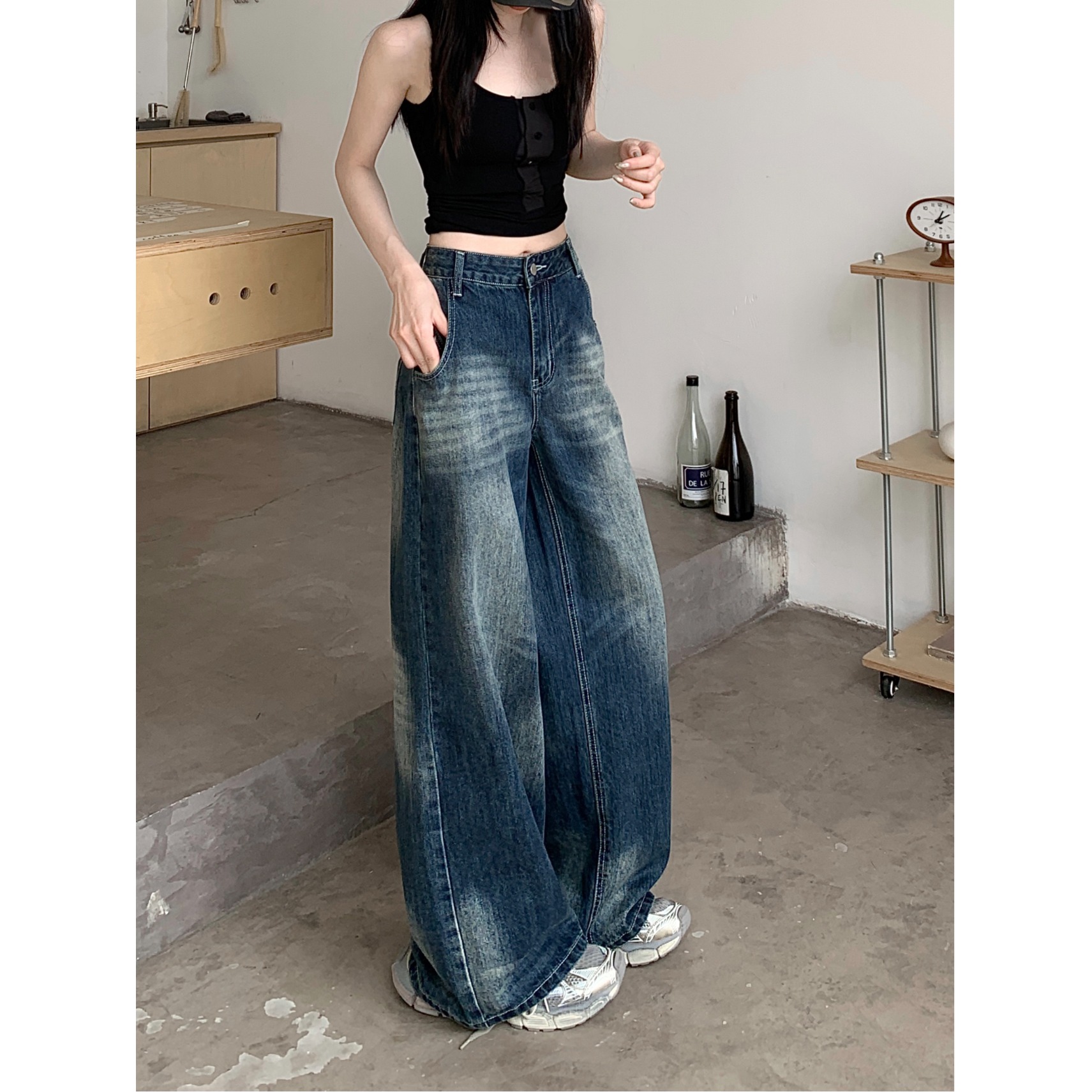 Ретро джинсы, синие штаны, свободный крой