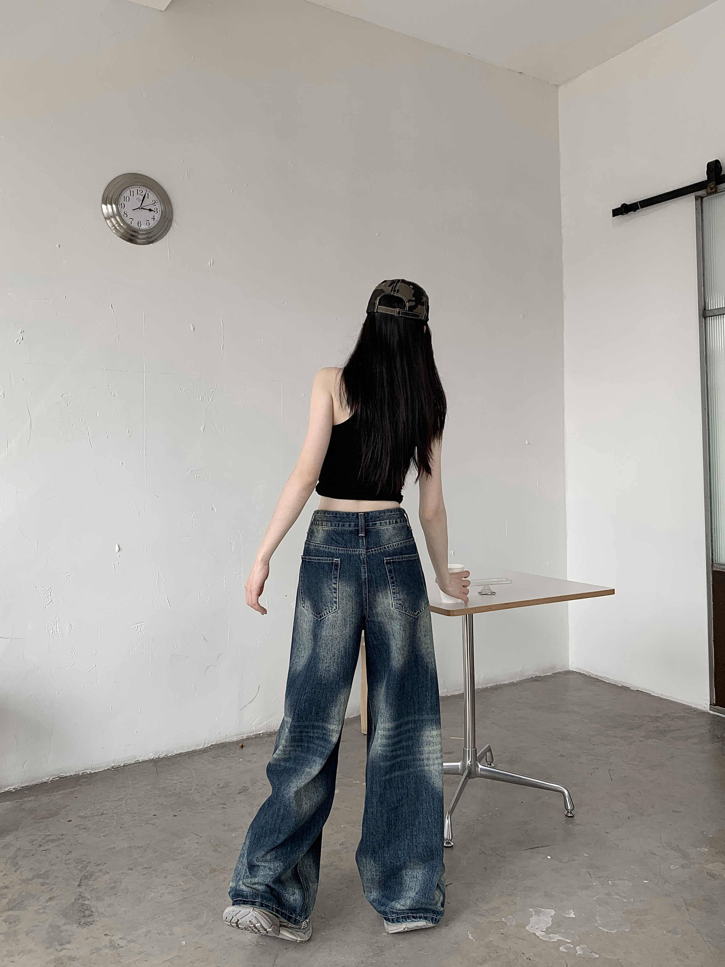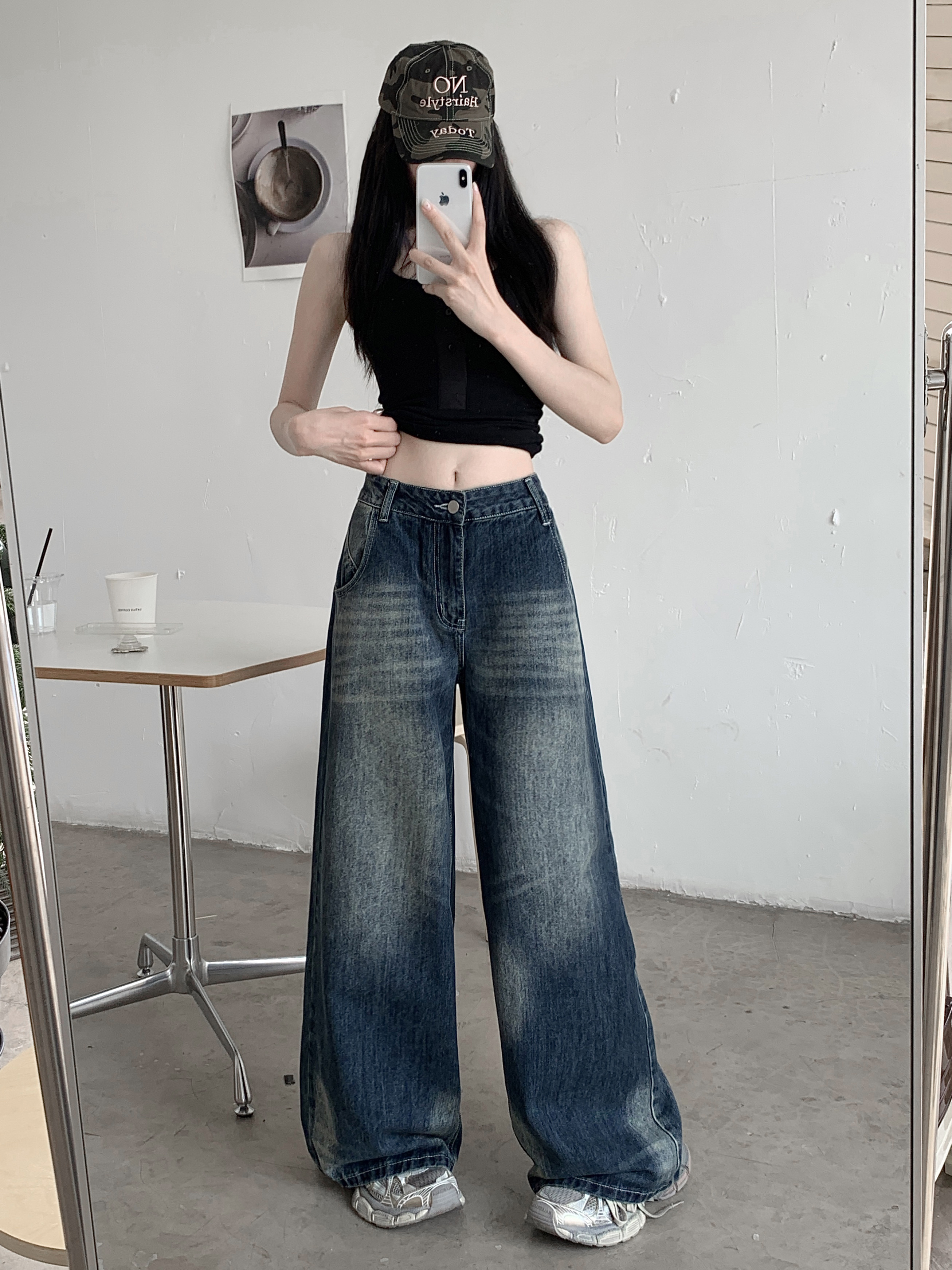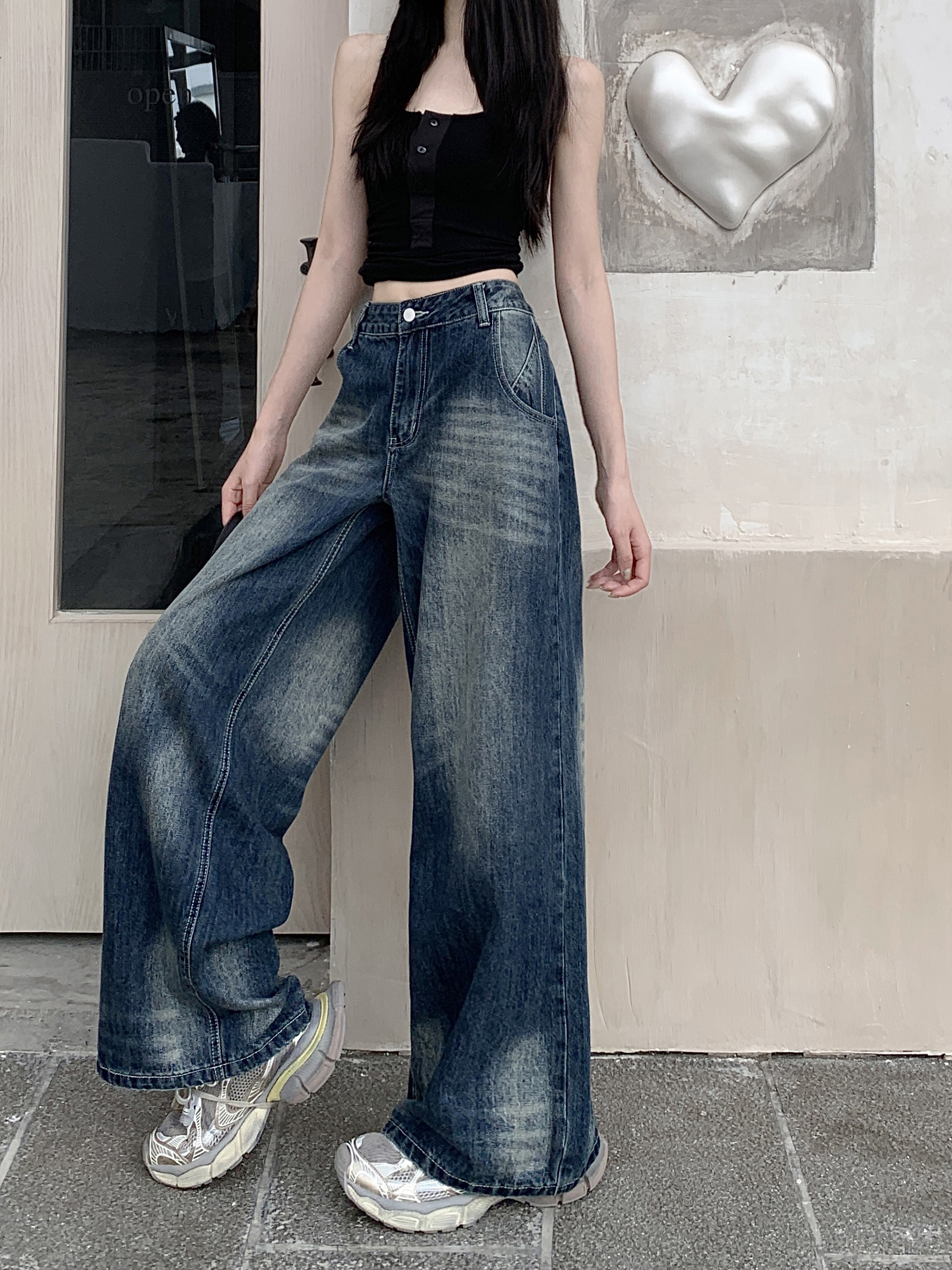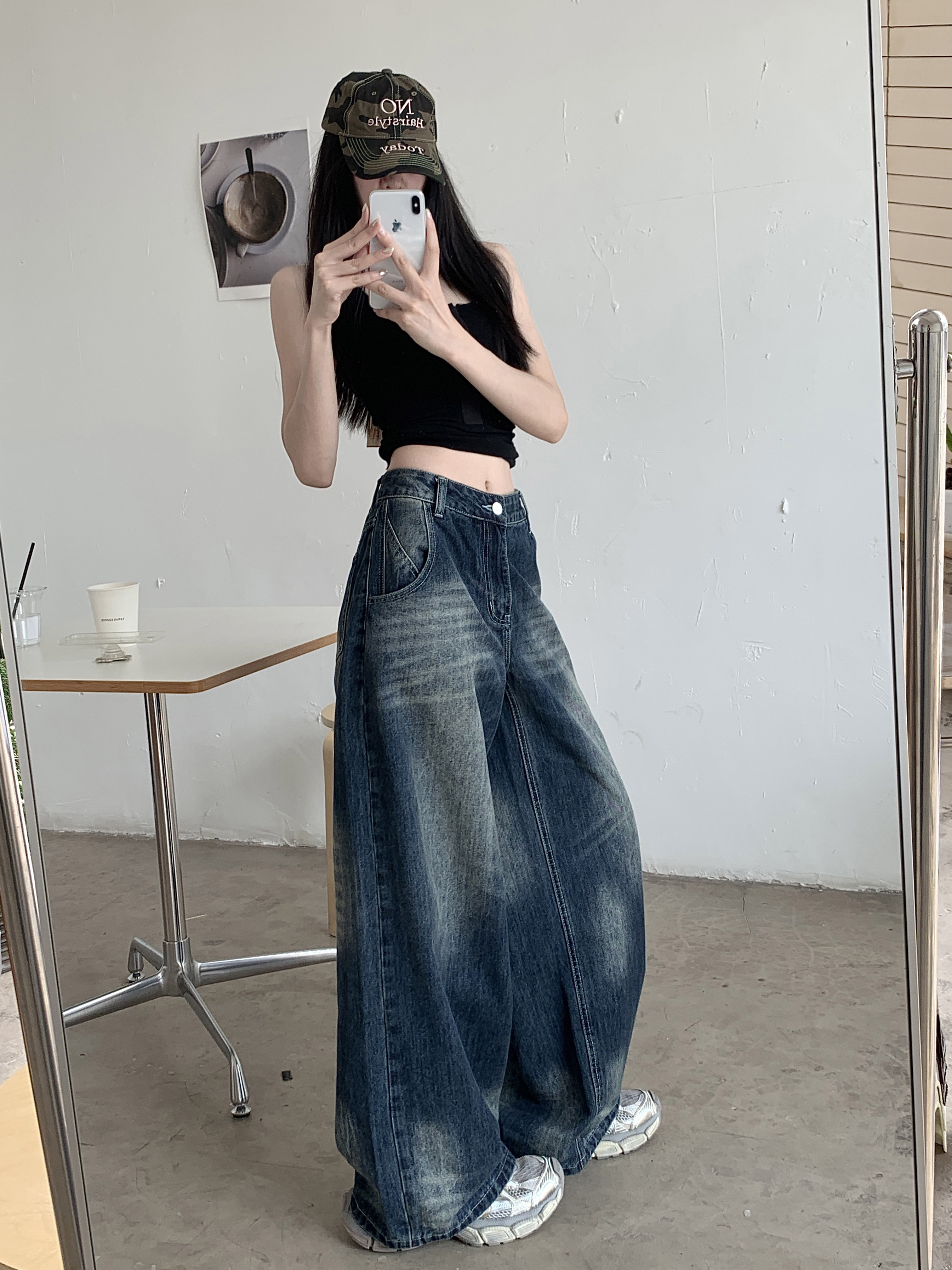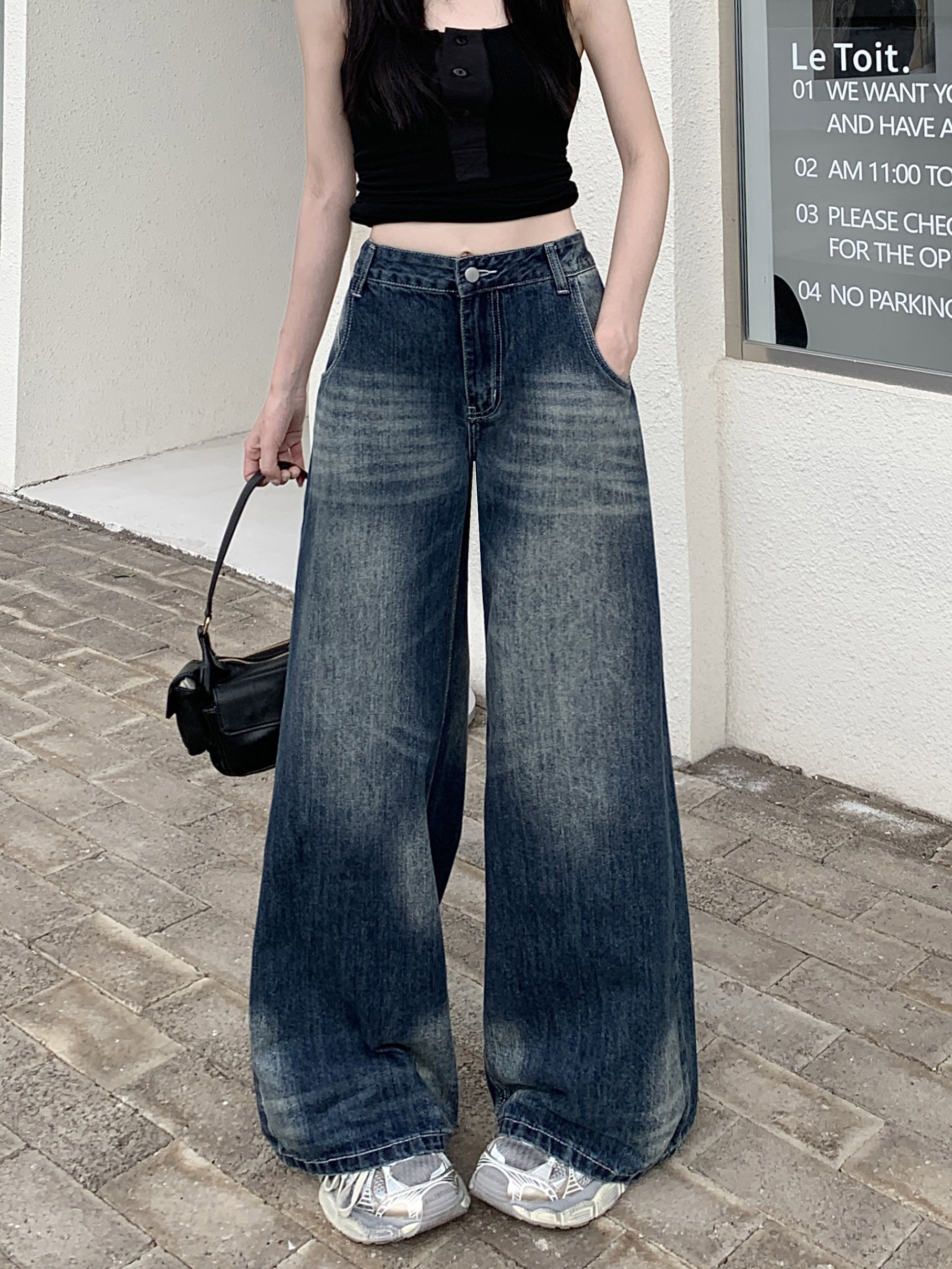 Ретро джинсы, синие штаны, свободный крой