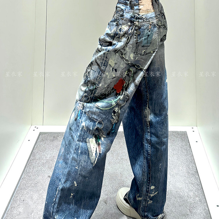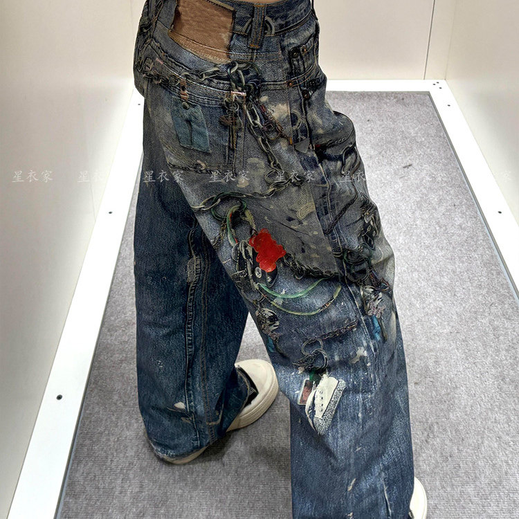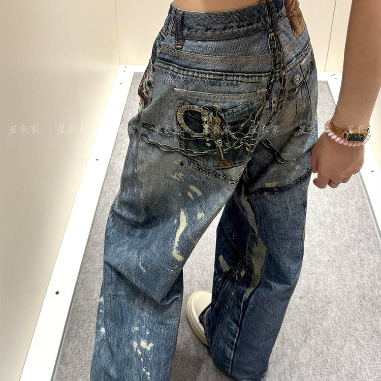 Ретро подвеска, цепочка, цепь, дизайнерские джинсы, штаны, в американском стиле, тренд сезона