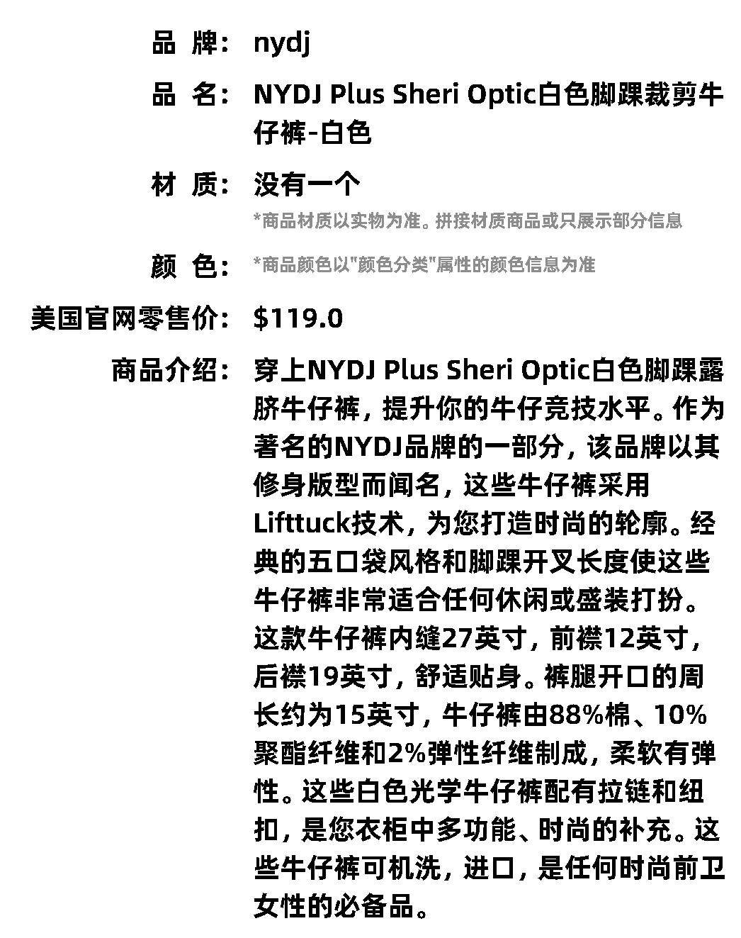 Белые джинсы до щиколотки Self-operated NYDJ Plus Sheri Optic - Белый прямой американский аутлет