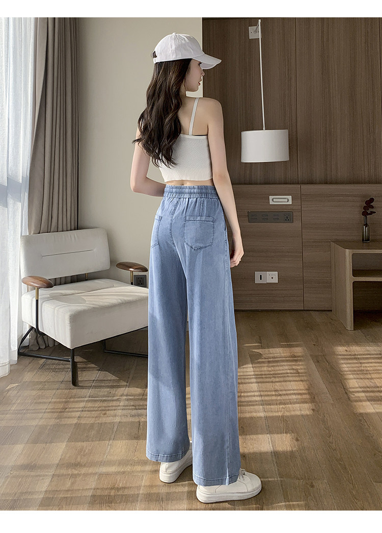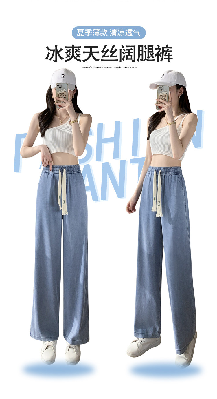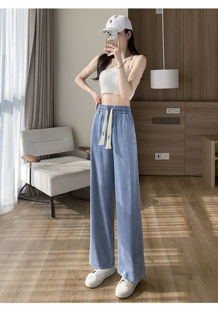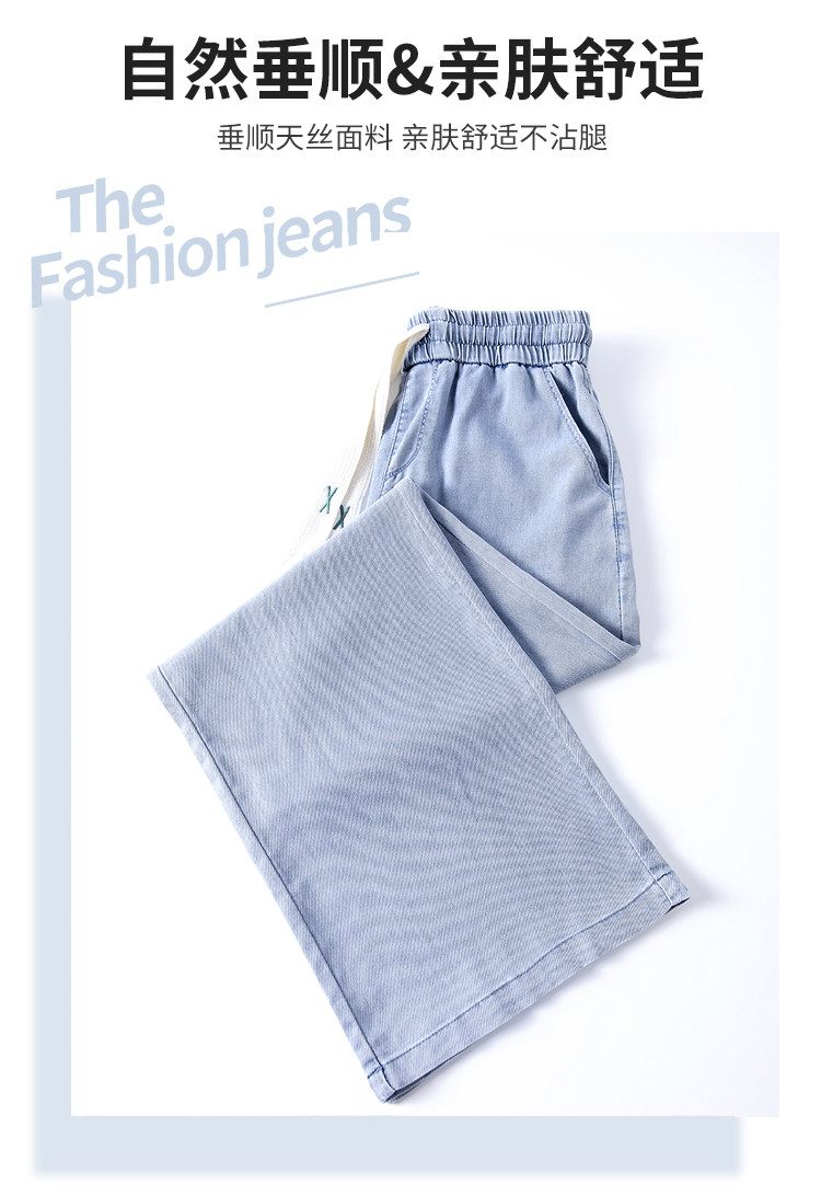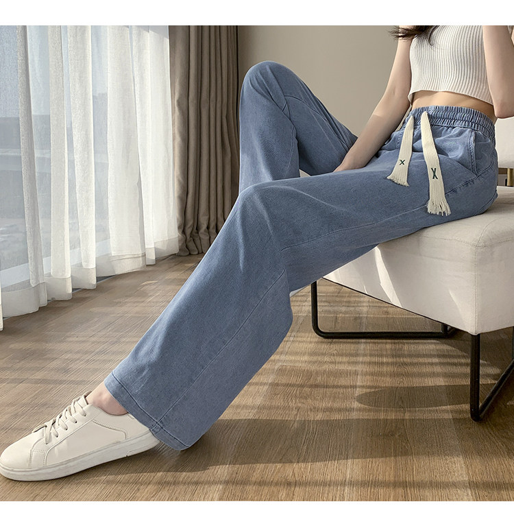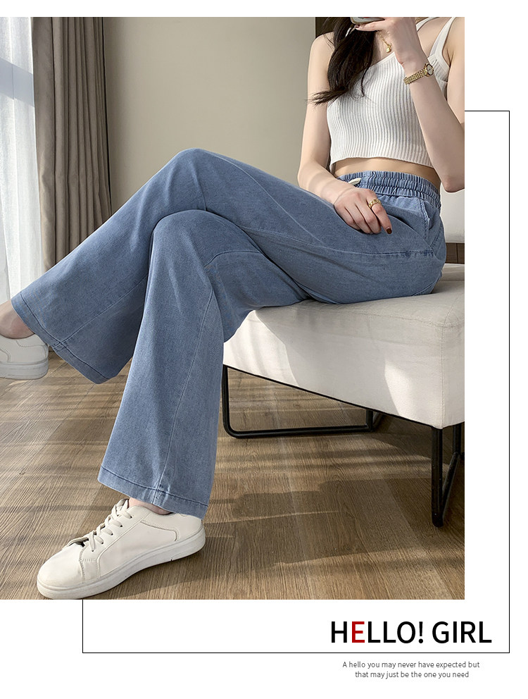 Джинсовые джинсы, штаны, шелковая тонкая летняя одежда для школьников, для средней школы, эластичная талия, свободный прямой крой