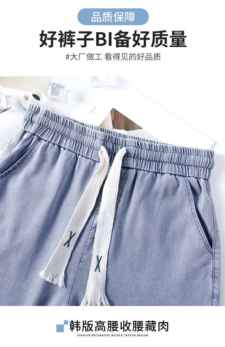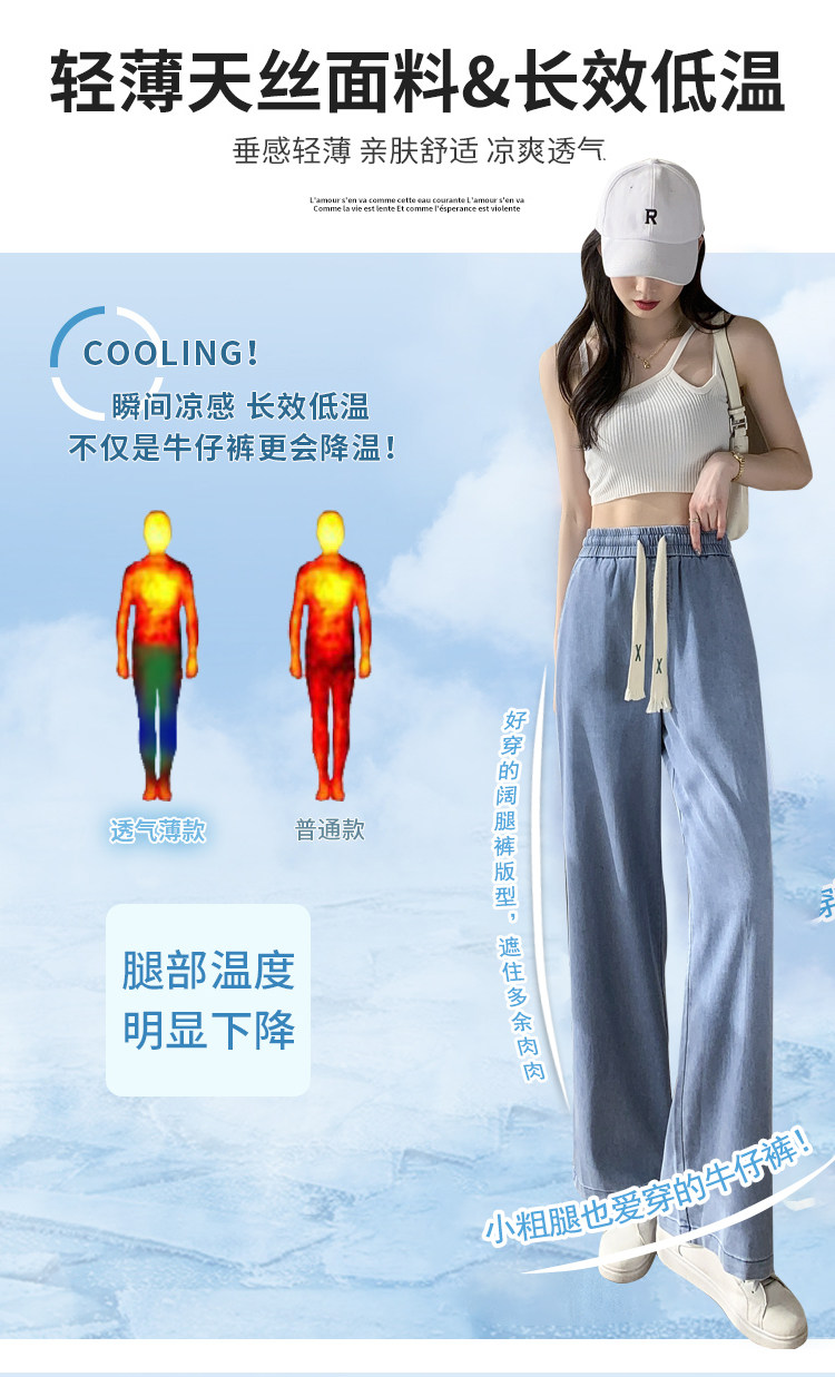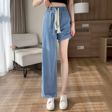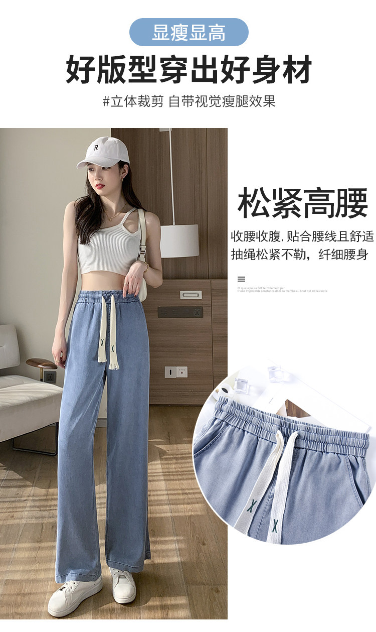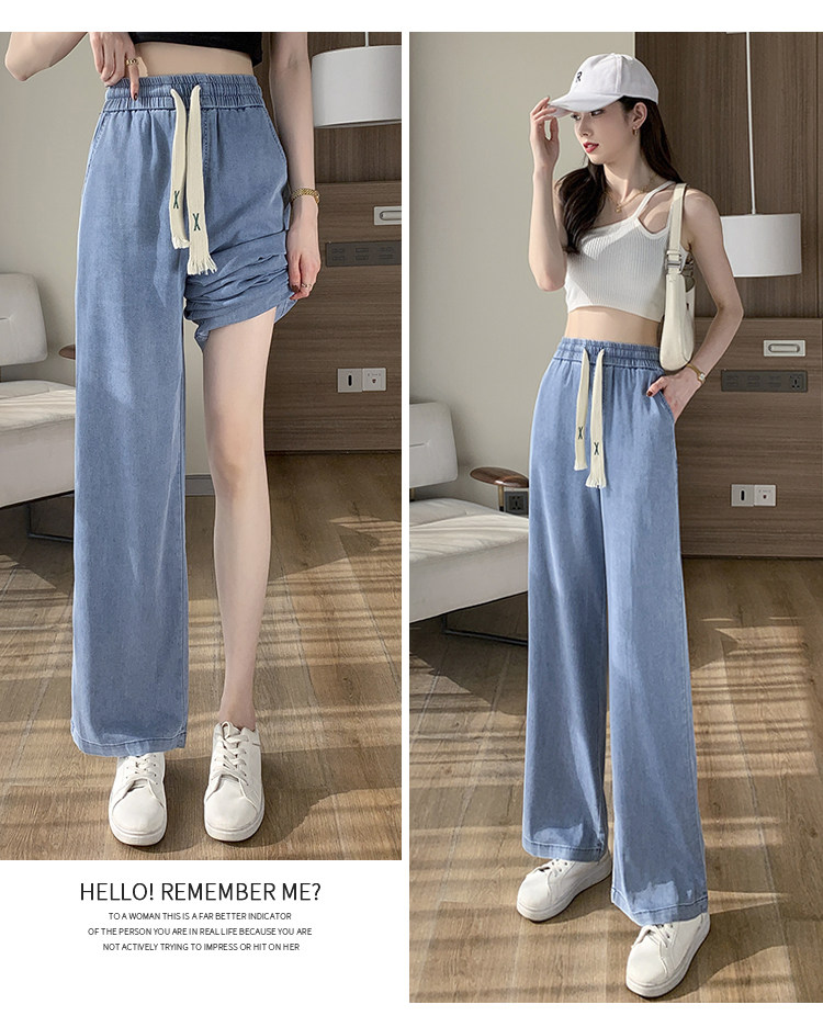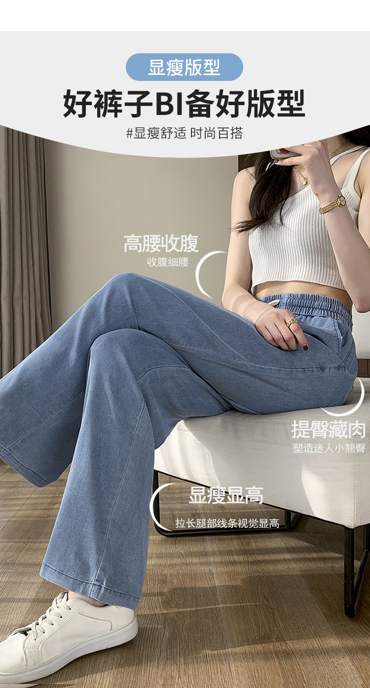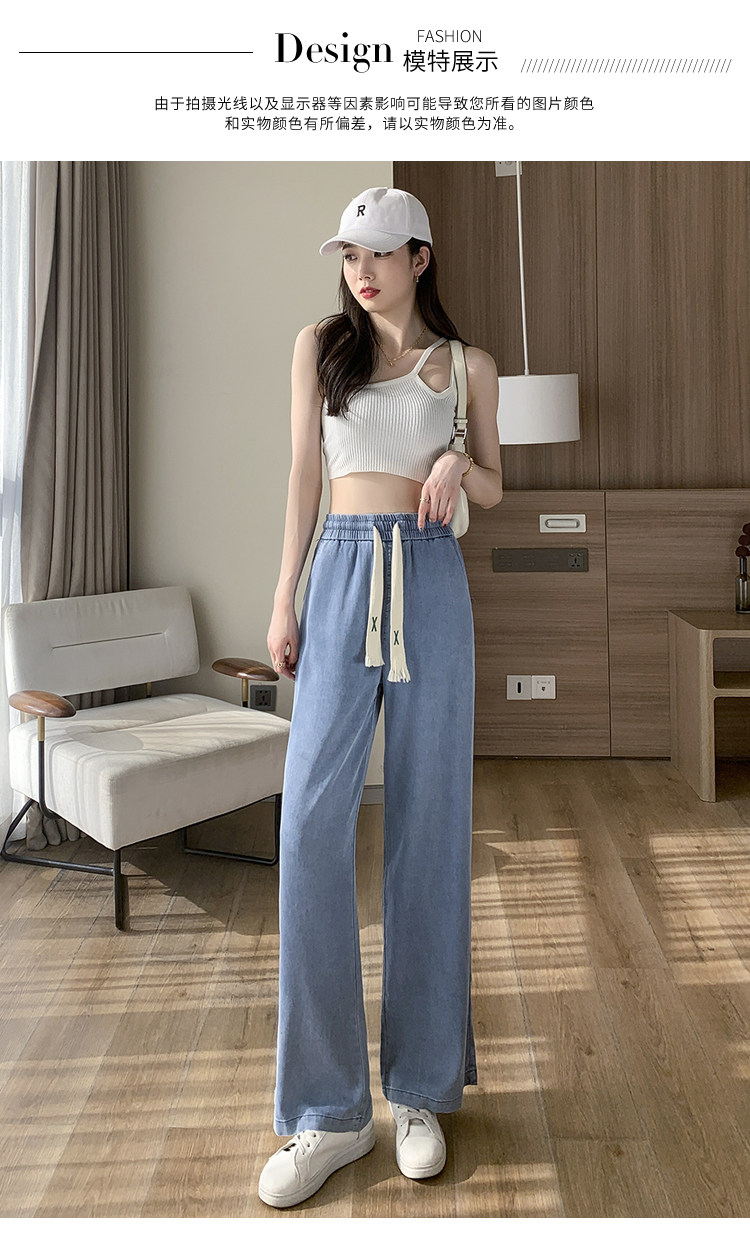 Джинсовые джинсы, штаны, шелковая тонкая летняя одежда для школьников, для средней школы, эластичная талия, свободный прямой крой