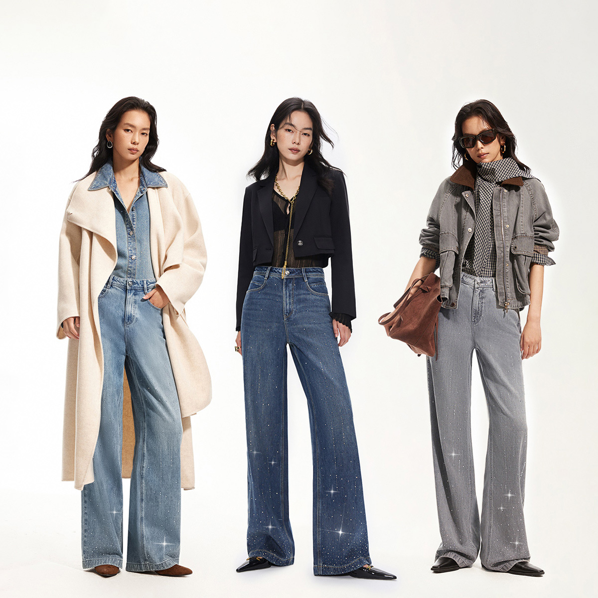 Штаны, весенняя ткань, прямые свободные джинсы, тренд сезона, высокая талия, свободный прямой крой