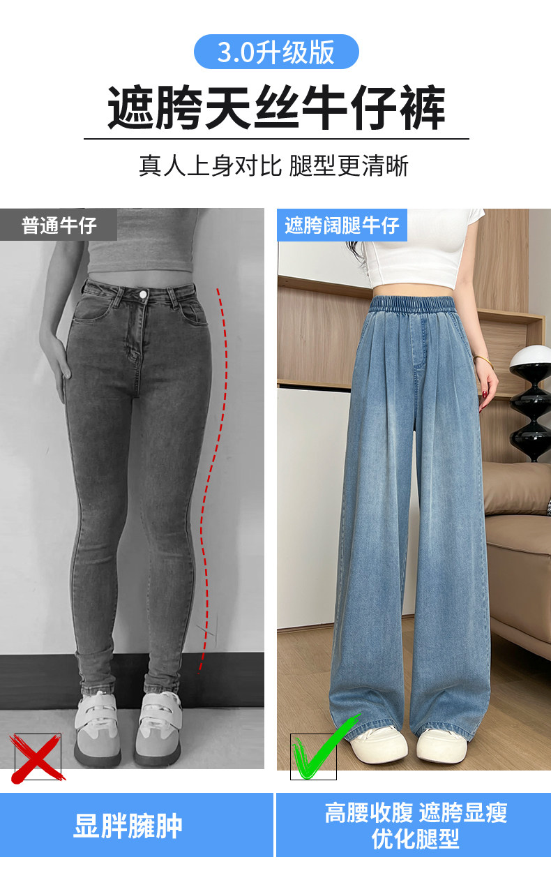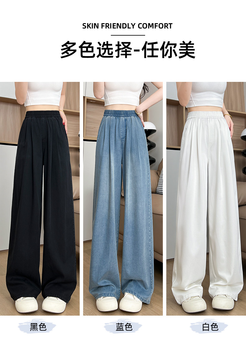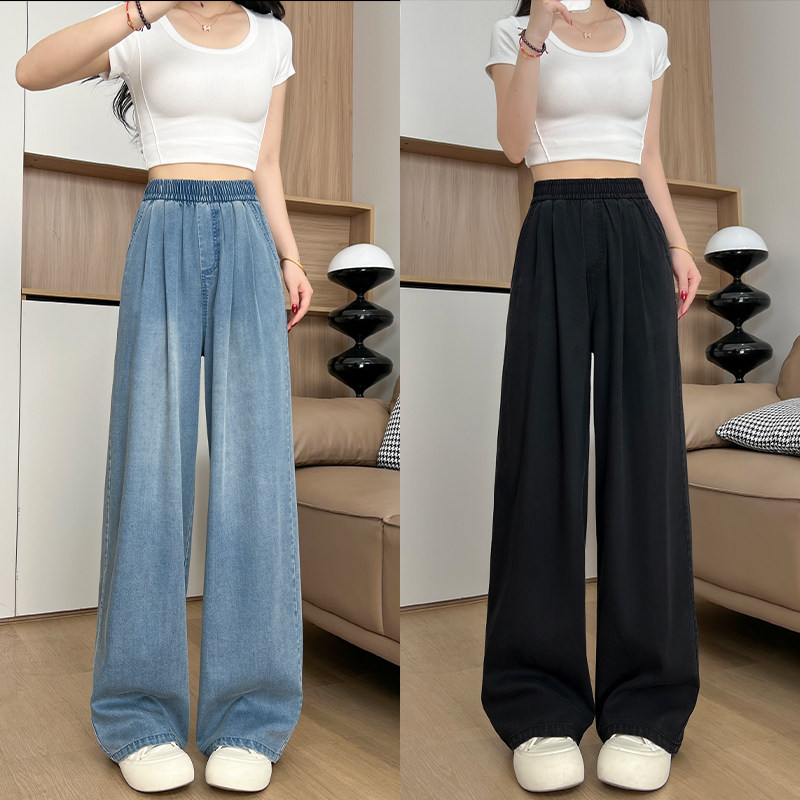 Джинсы, летние тонкие шелковые штаны, высокая талия, подходит для подростков, свободный прямой крой