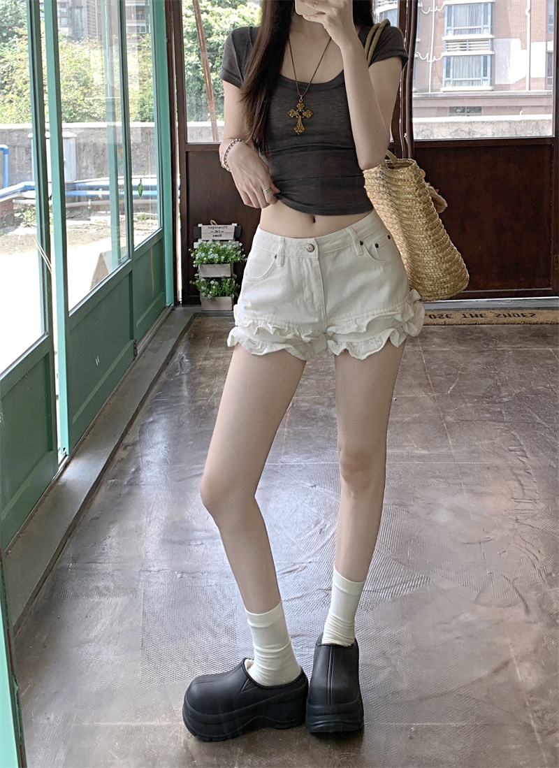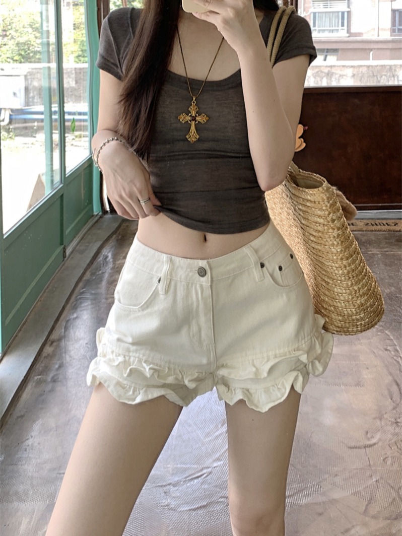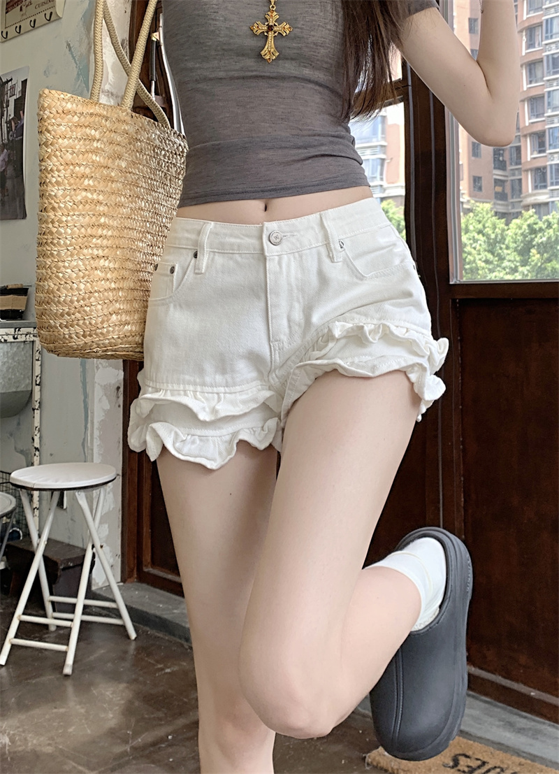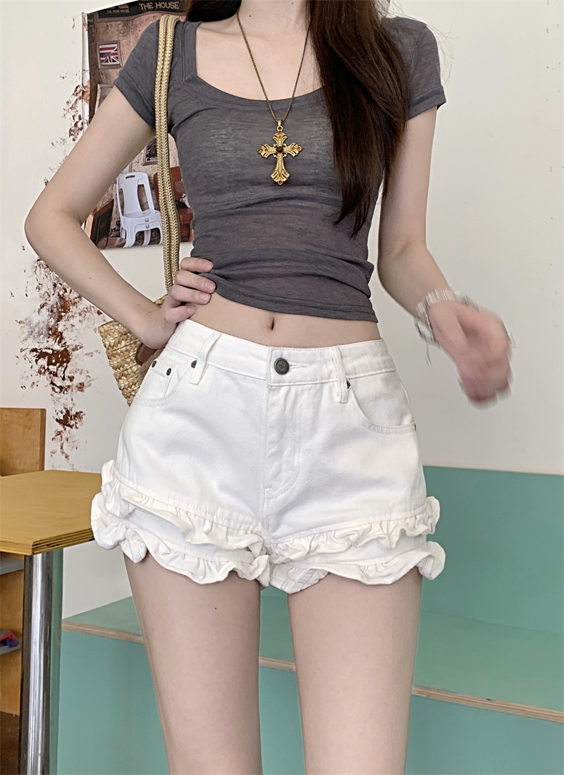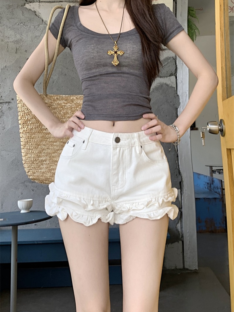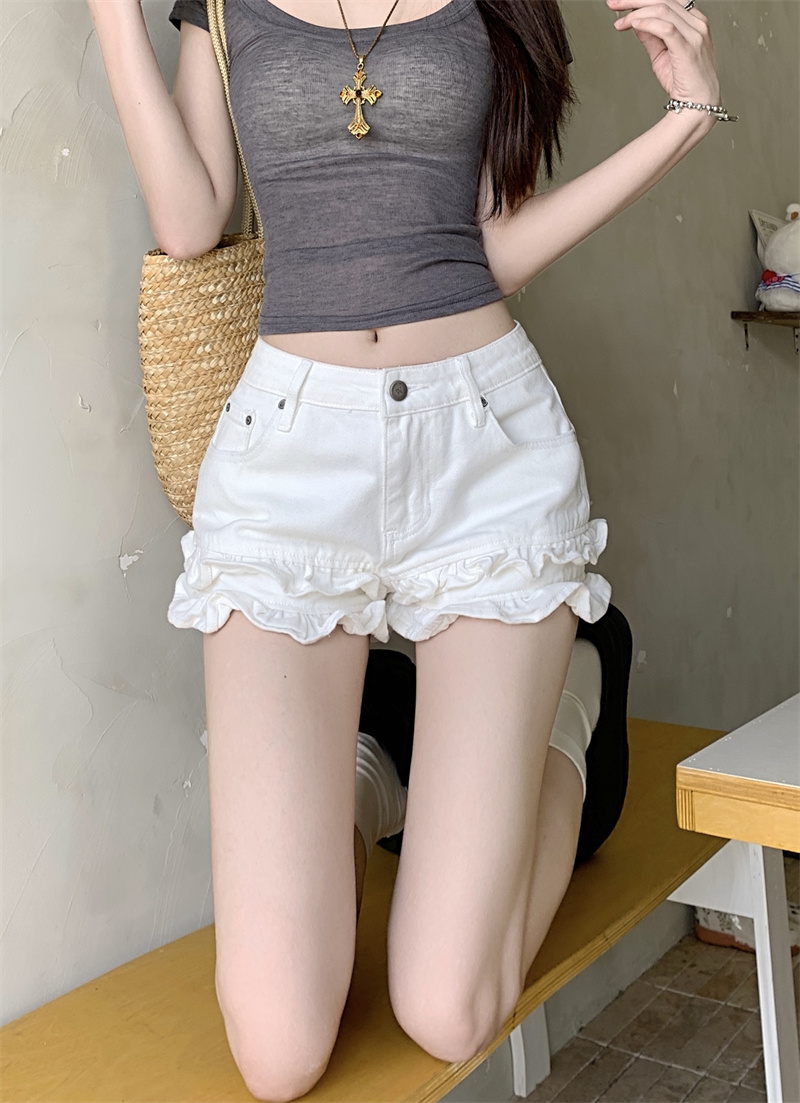 Дизайнерские белые джинсы, штаны, шорты, тренд сезона, по фигуре, высокая талия, свободный прямой крой
