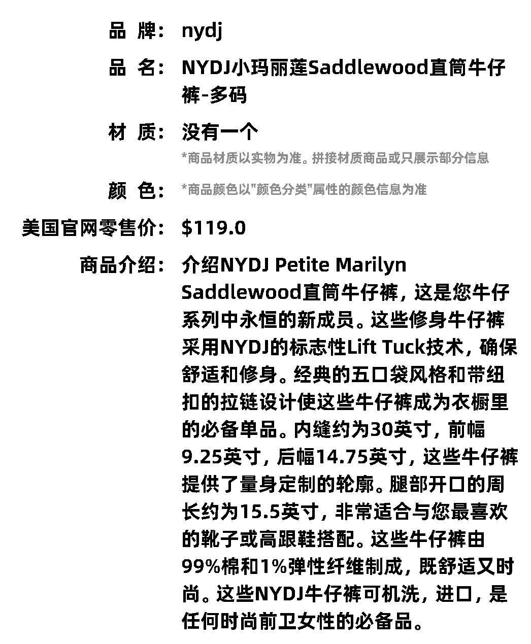Прямые джинсы NYDJ Little Marilyn Saddlewood от NYDJ, несколько размеров, американский аутлет, прямые волосы