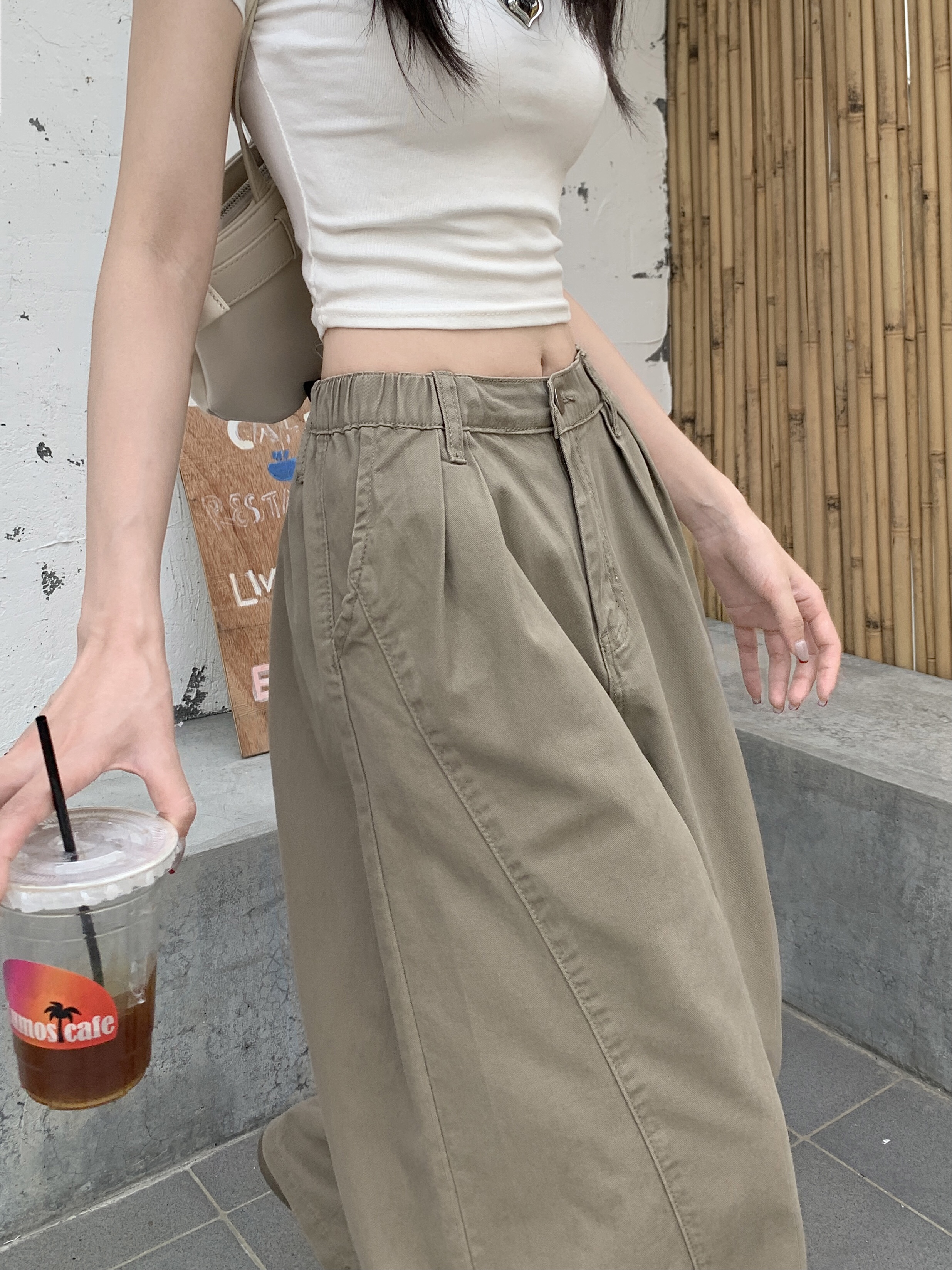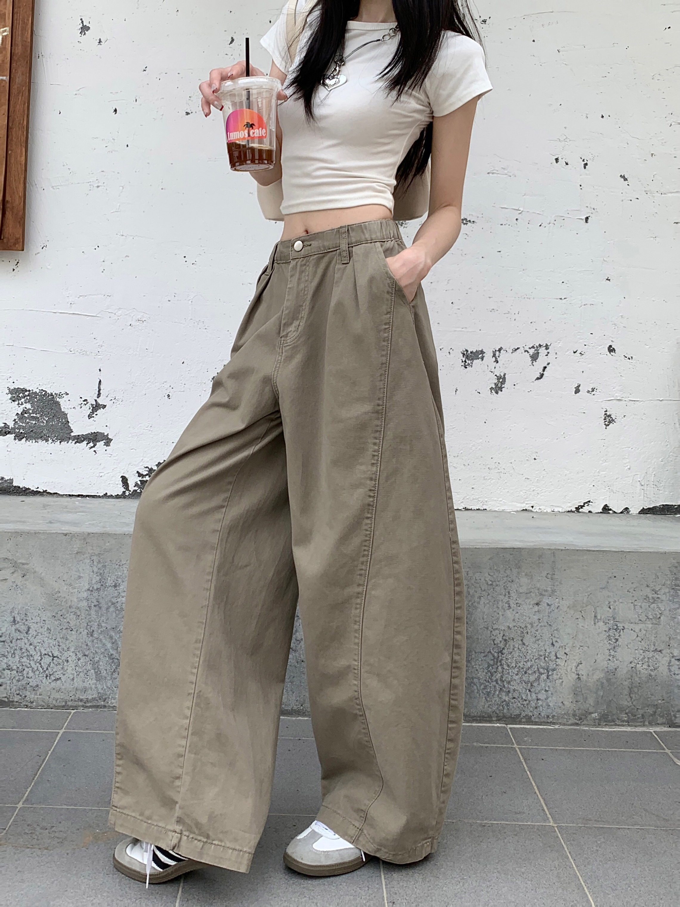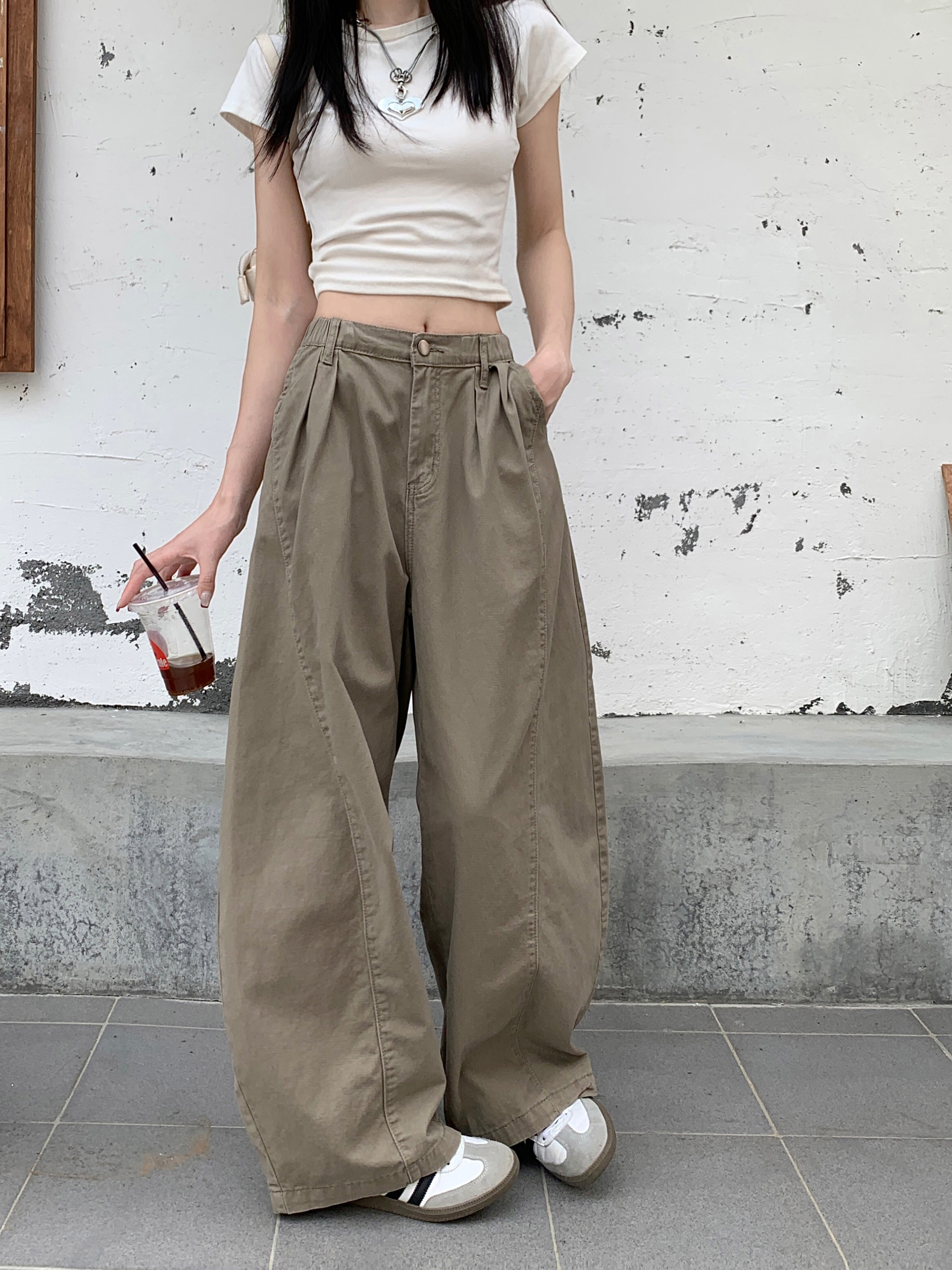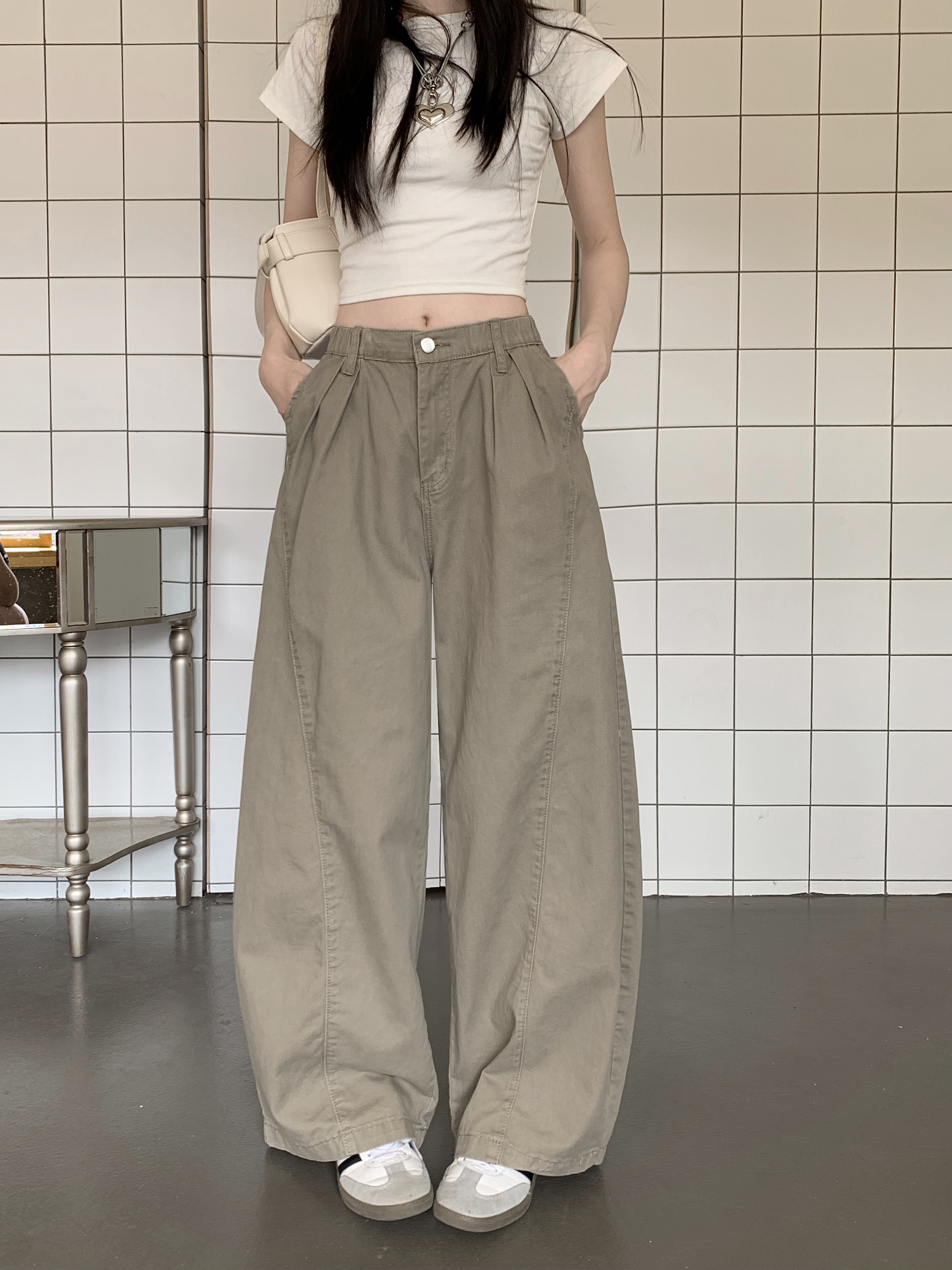 Ретро хаки штаны, осенние джинсы, леггинсы, в американском стиле, по фигуре, свободный крой