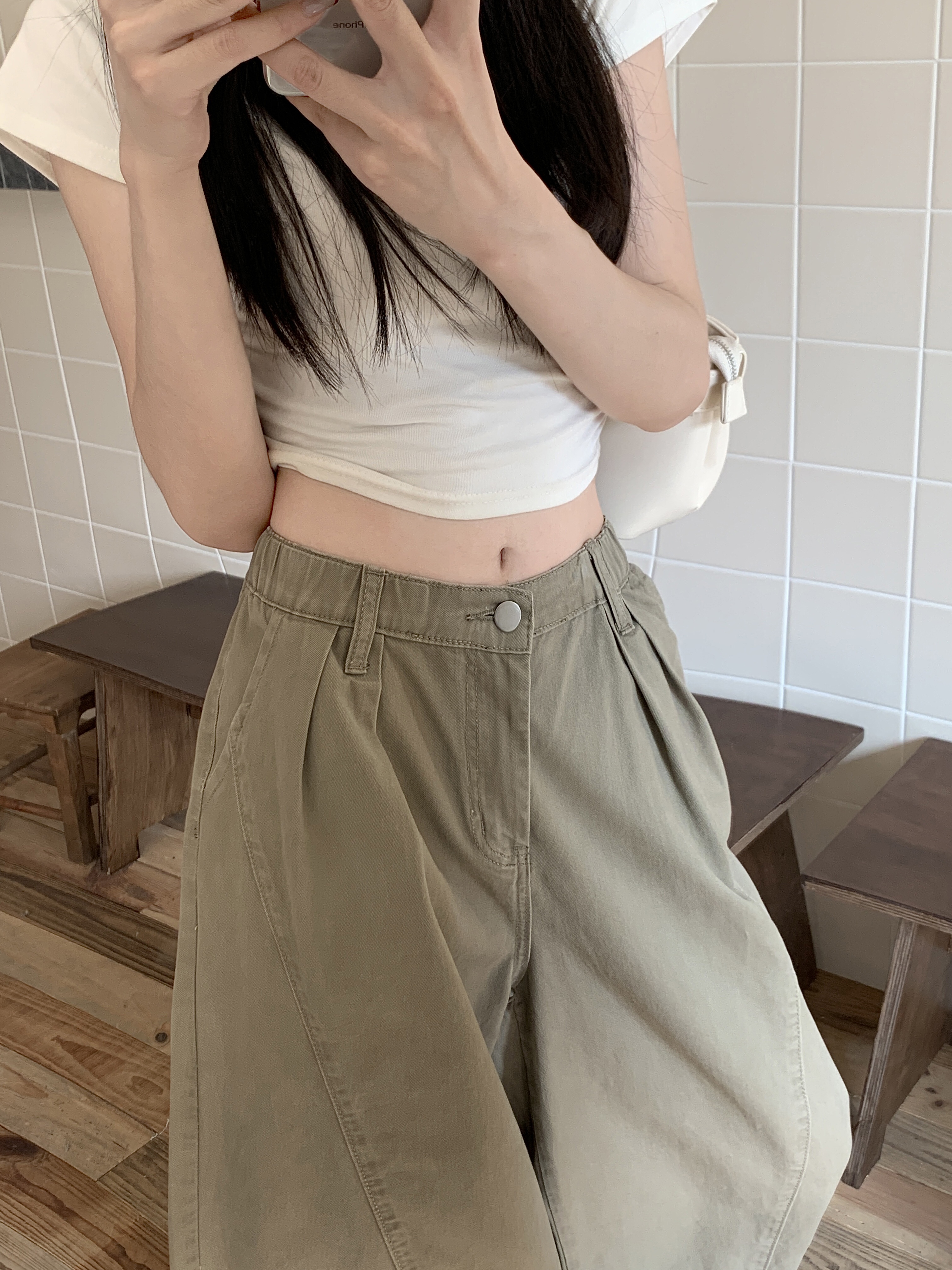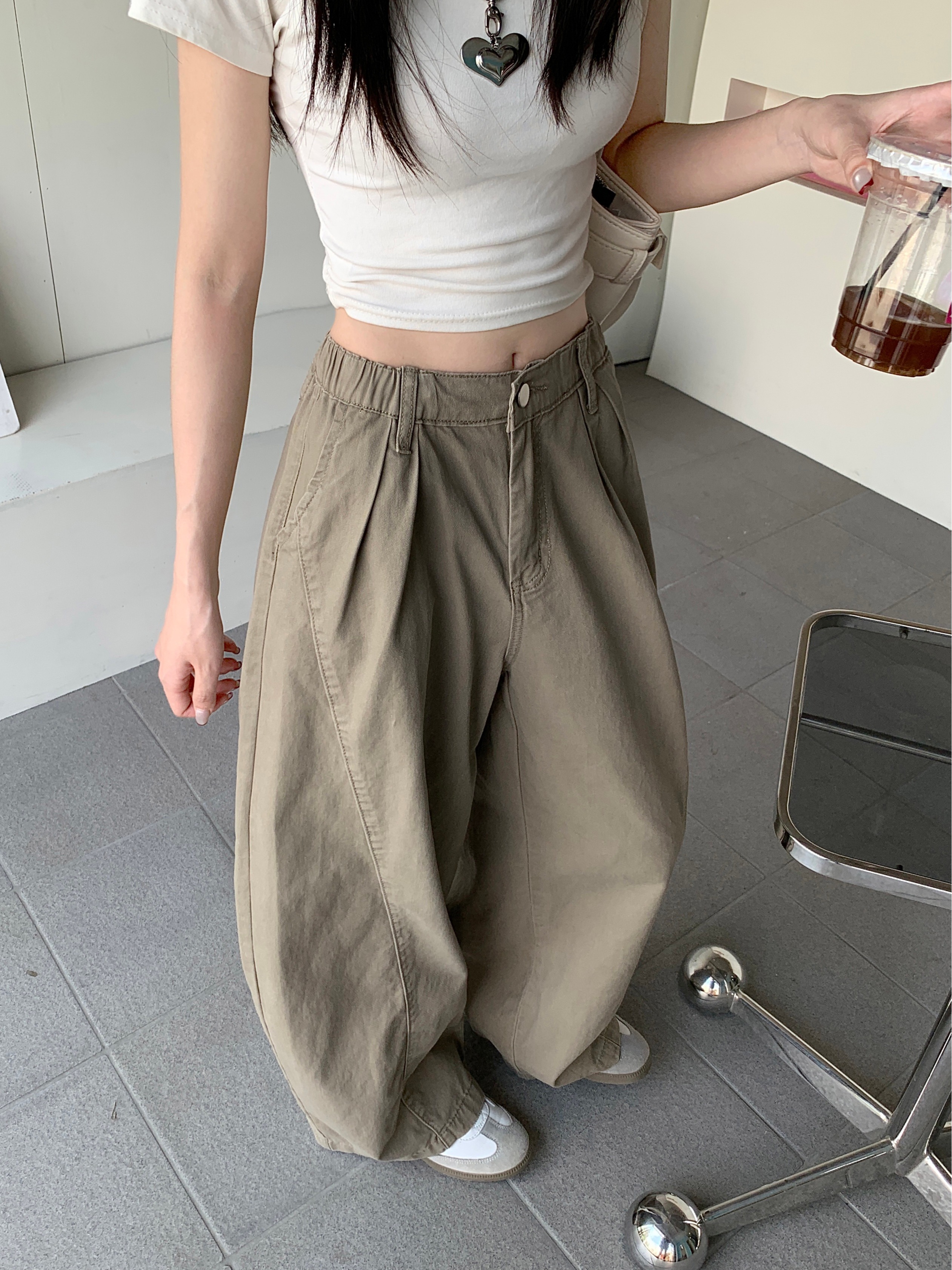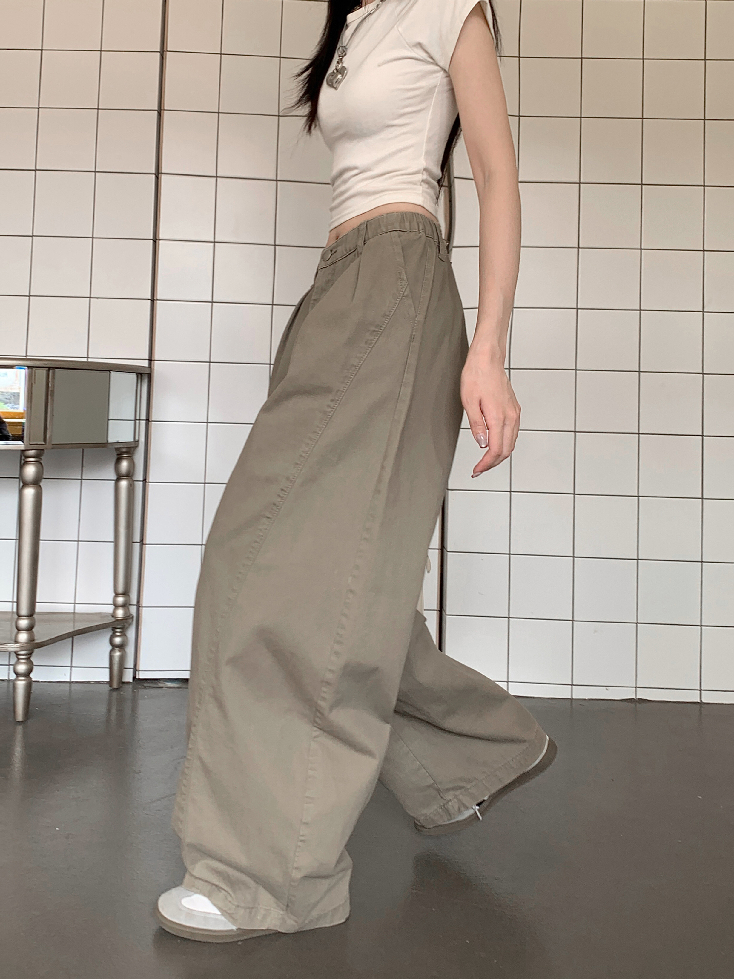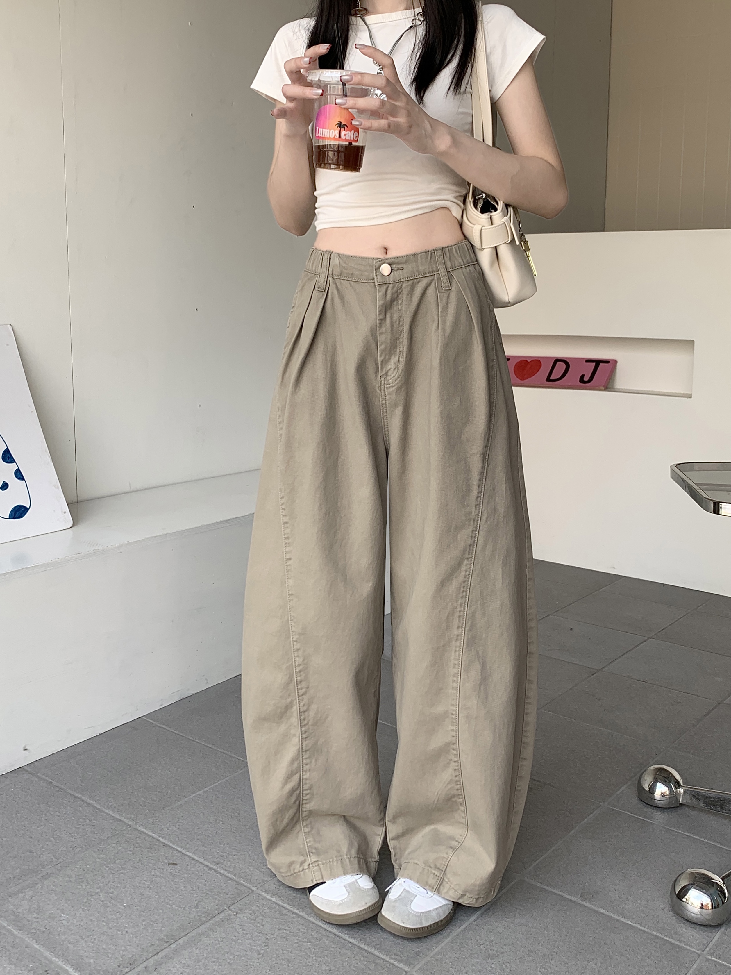 Ретро хаки штаны, осенние джинсы, леггинсы, в американском стиле, по фигуре, свободный крой
