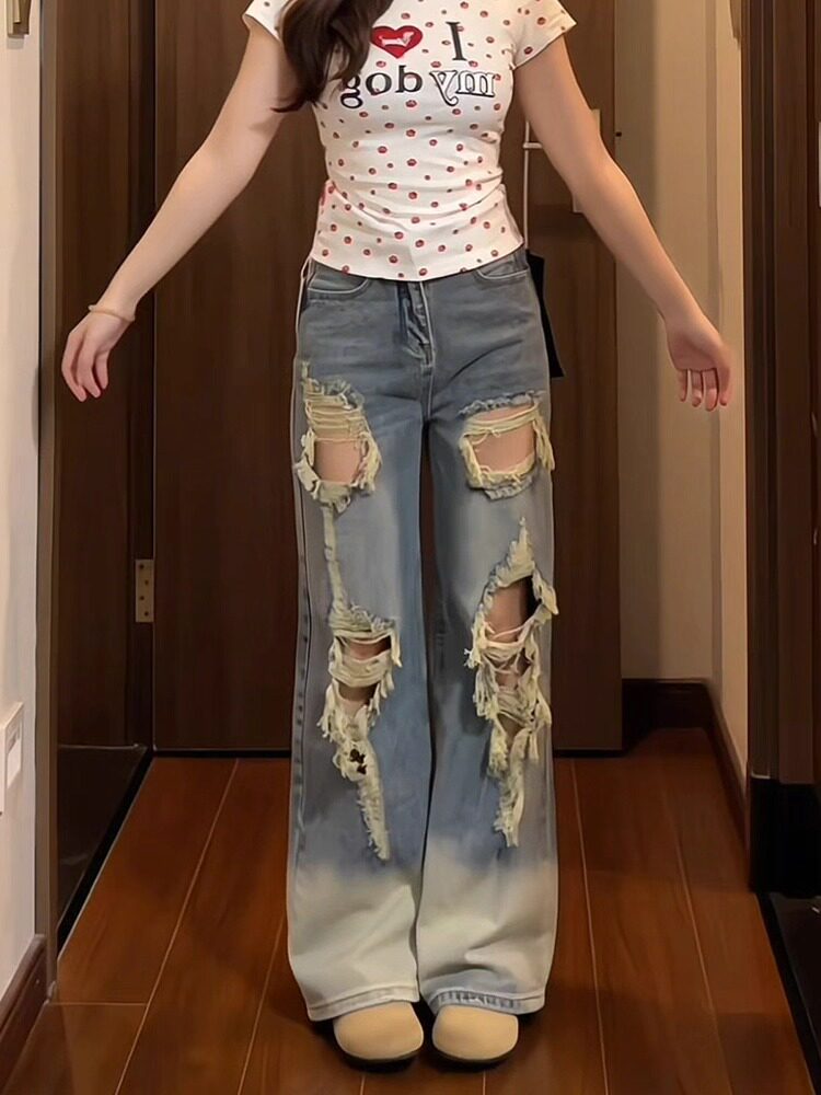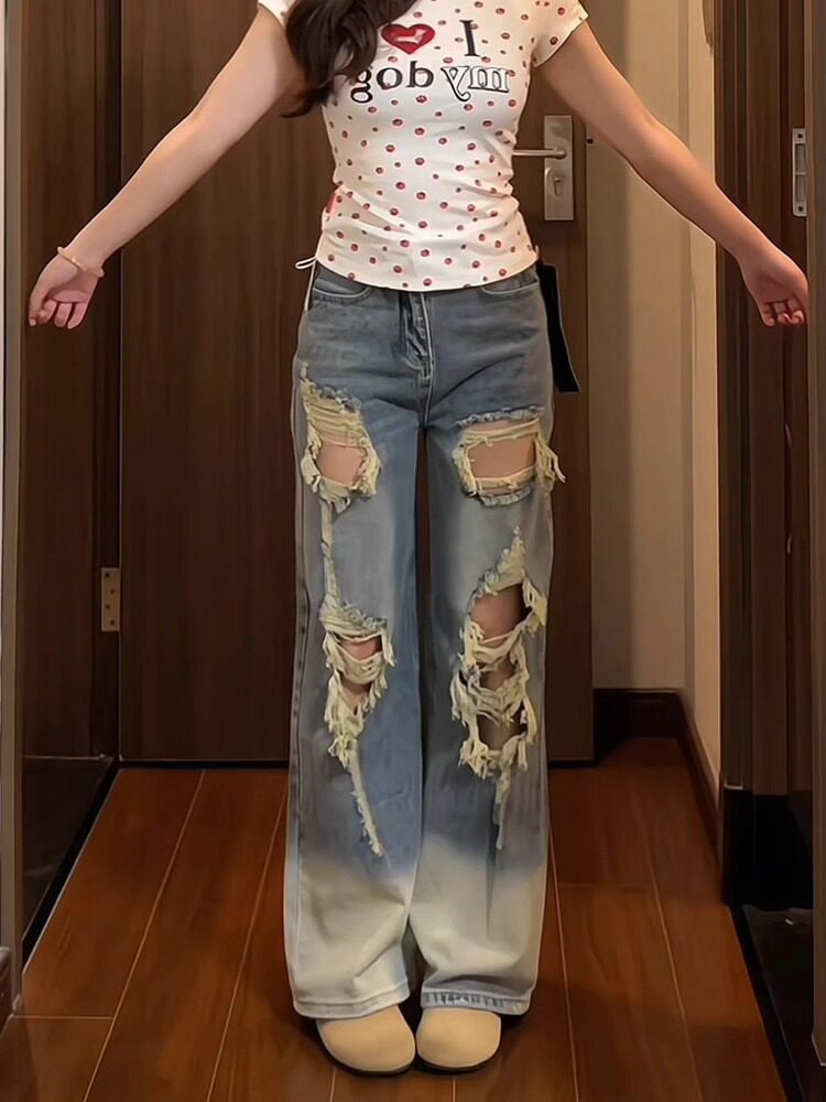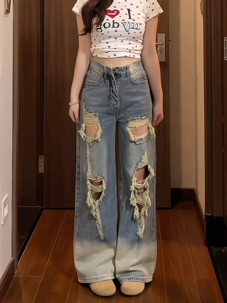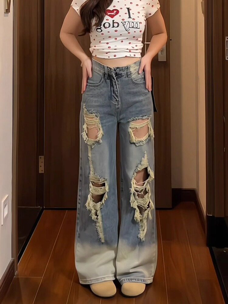 Дизайнерские летние ретро джинсы, штаны, большой размер, в американском стиле, тренд сезона, высокая талия, свободный крой