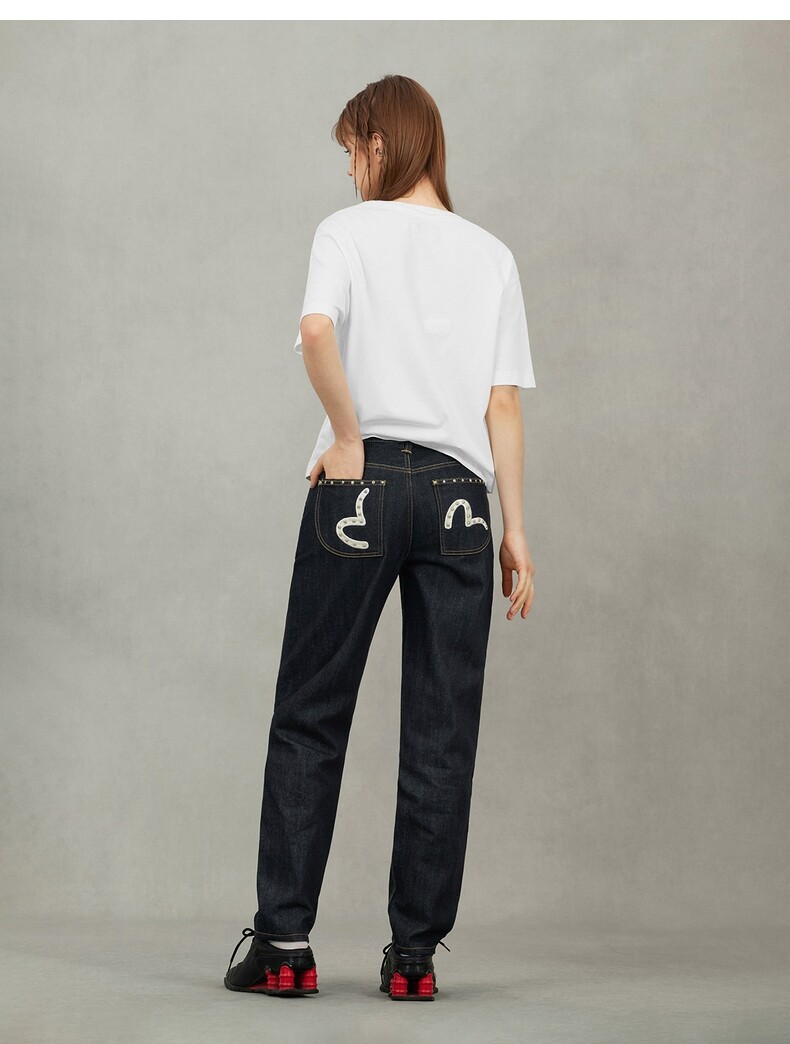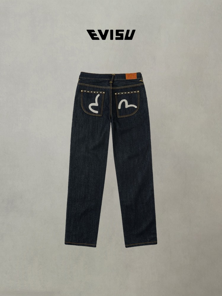 EVISU Fushen 2025, осенние новые женские джинсы с узором чайки и карманами, повседневные прямые простые брюки