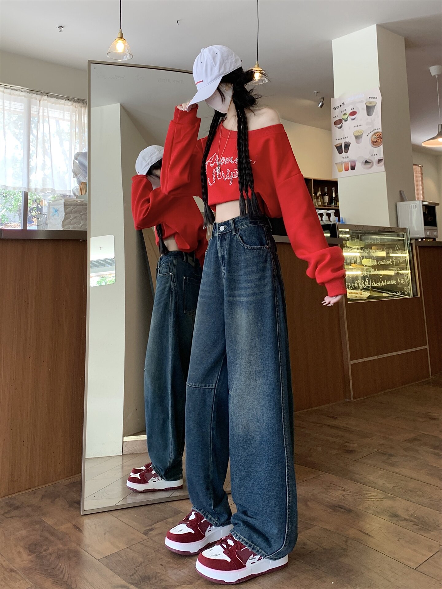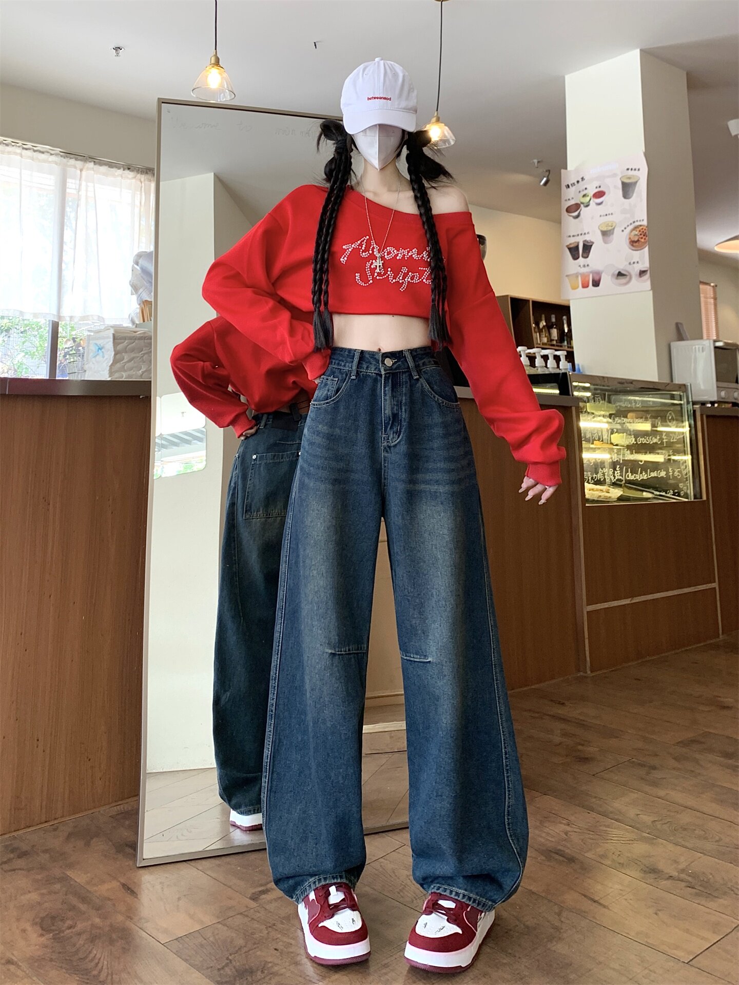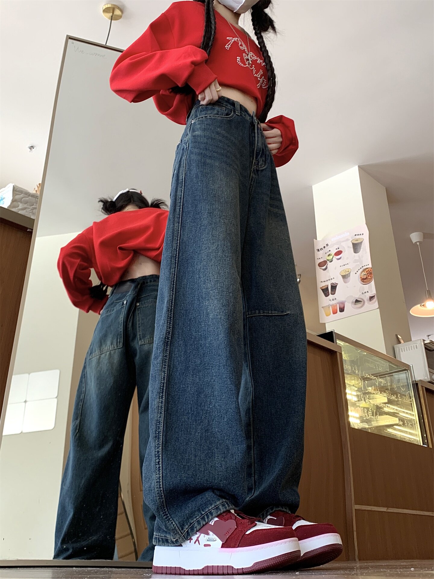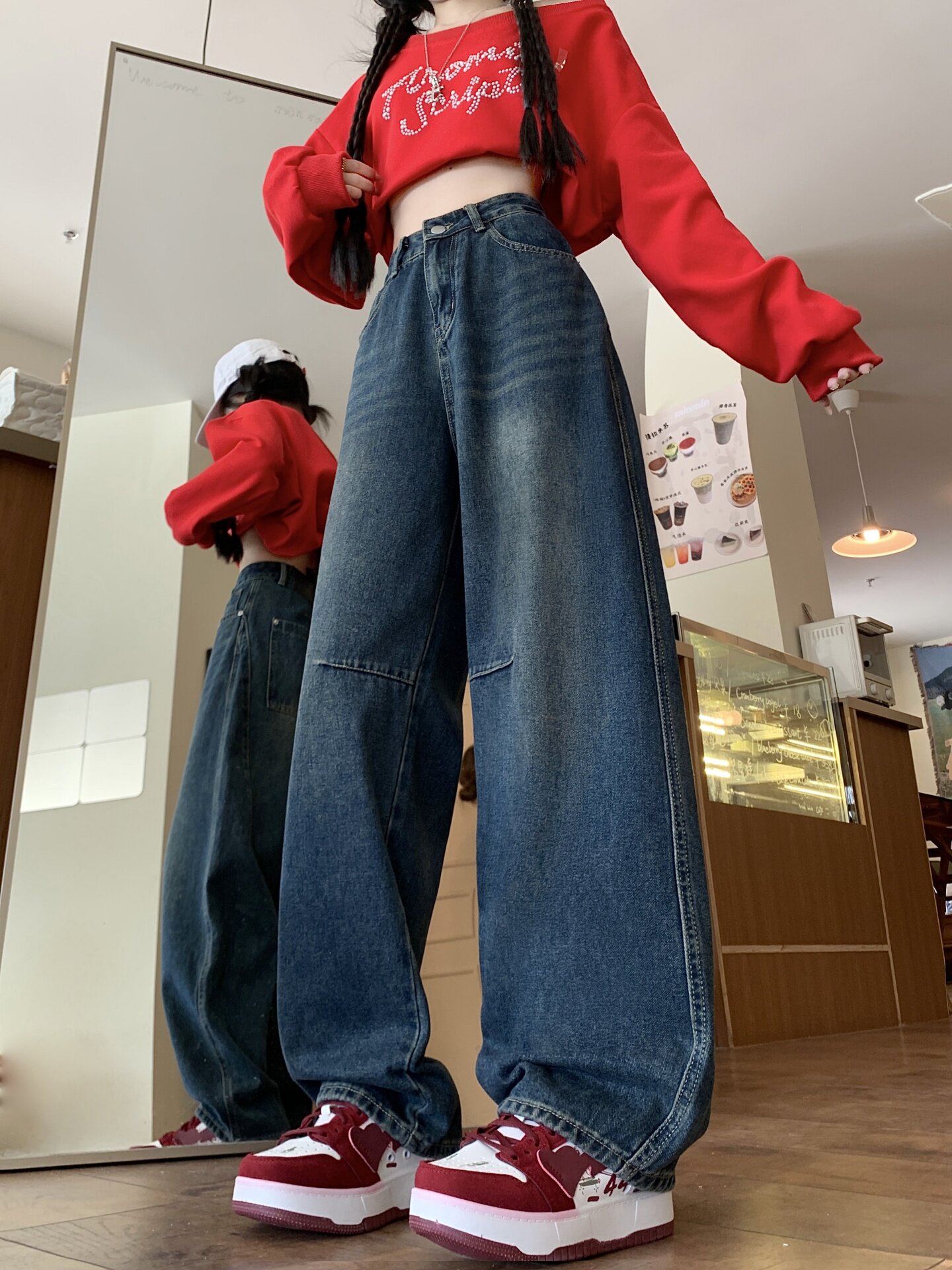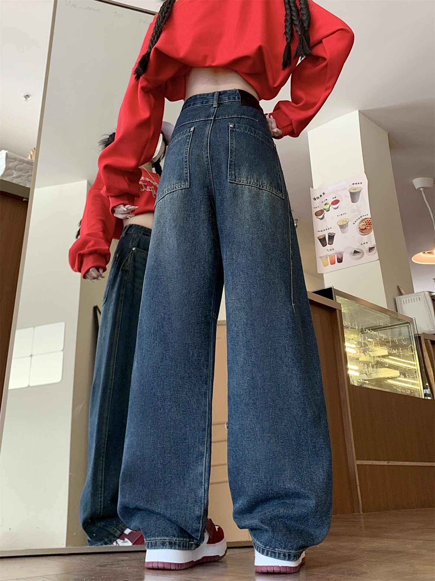 Ретро осенние джинсы, штаны, леггинсы, большой размер, в американском стиле, для формы тела «груша», свободный прямой крой