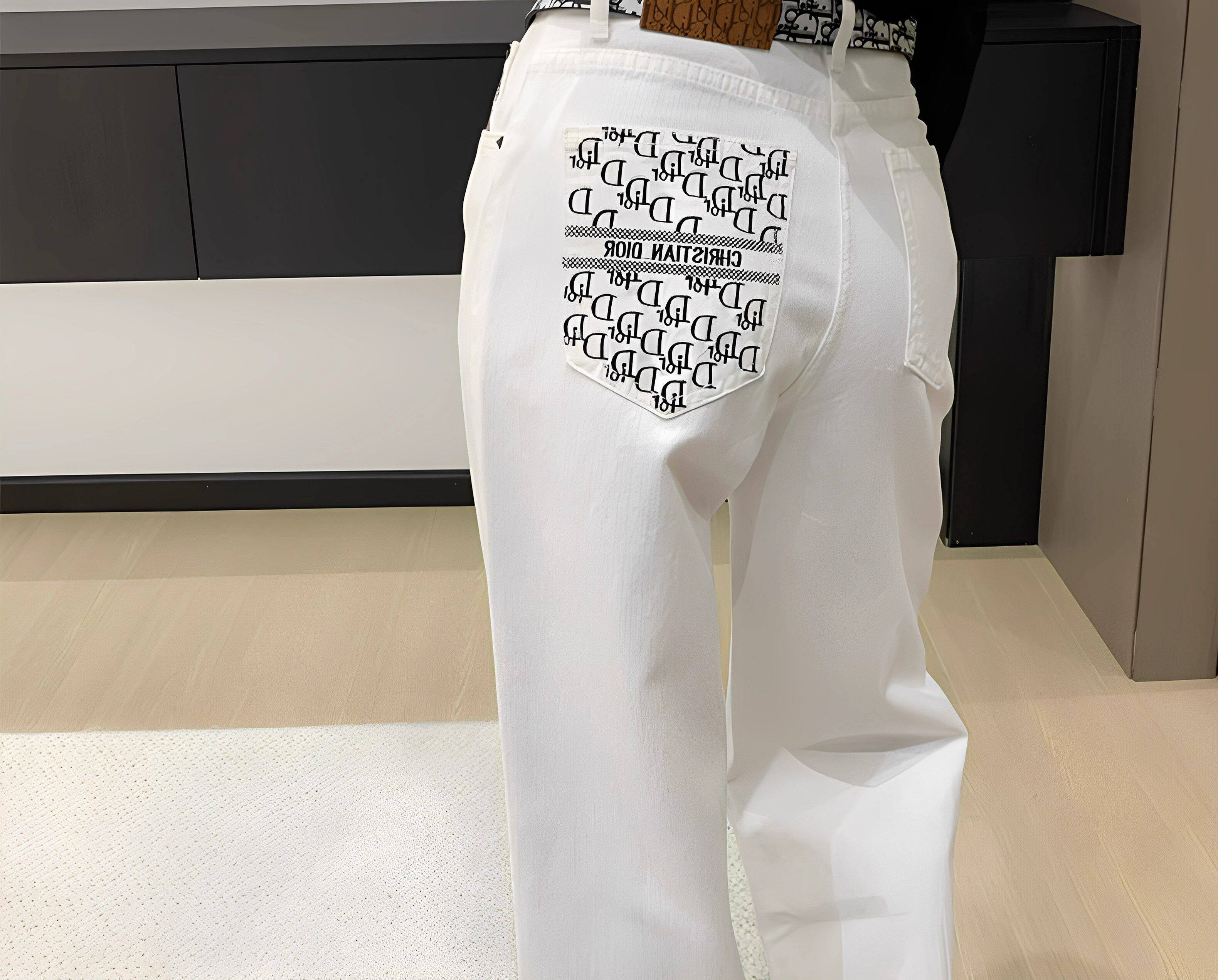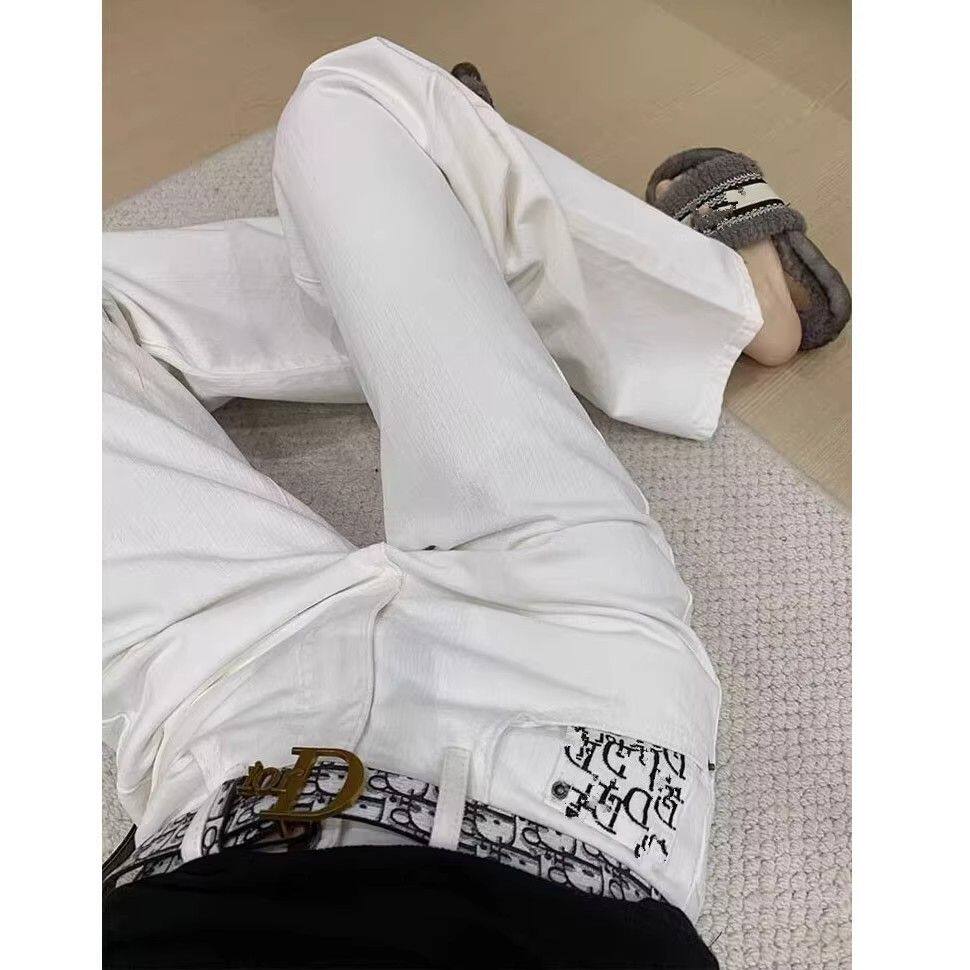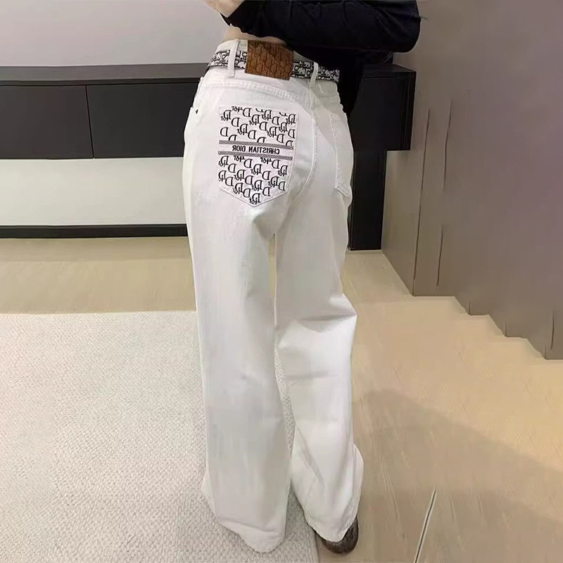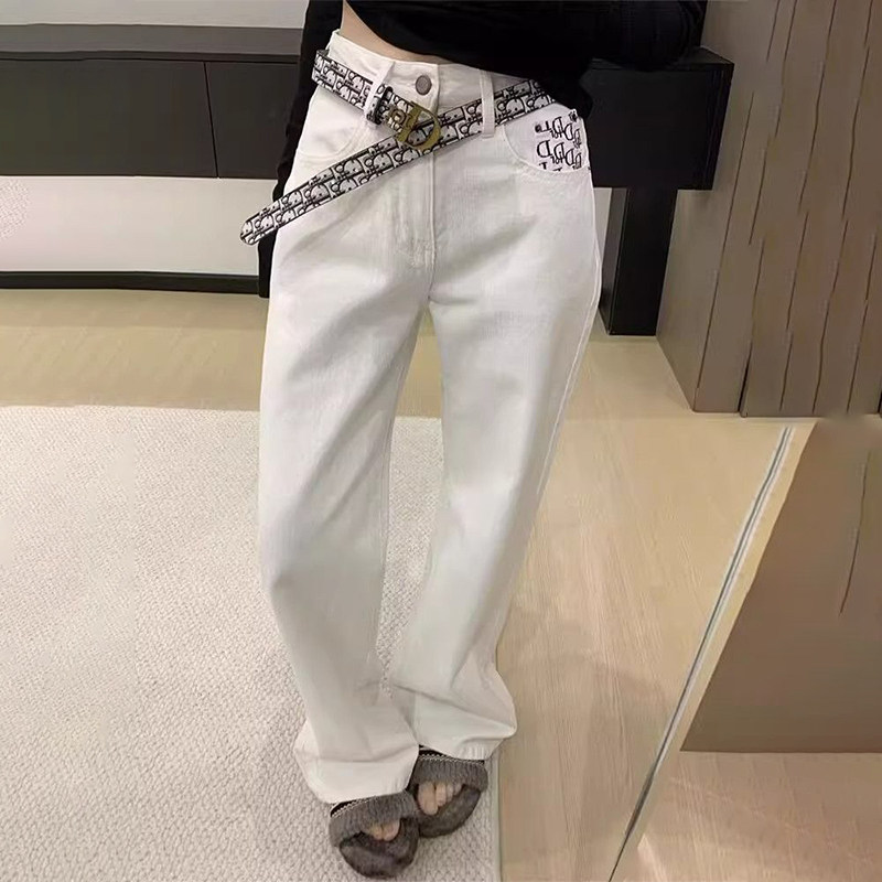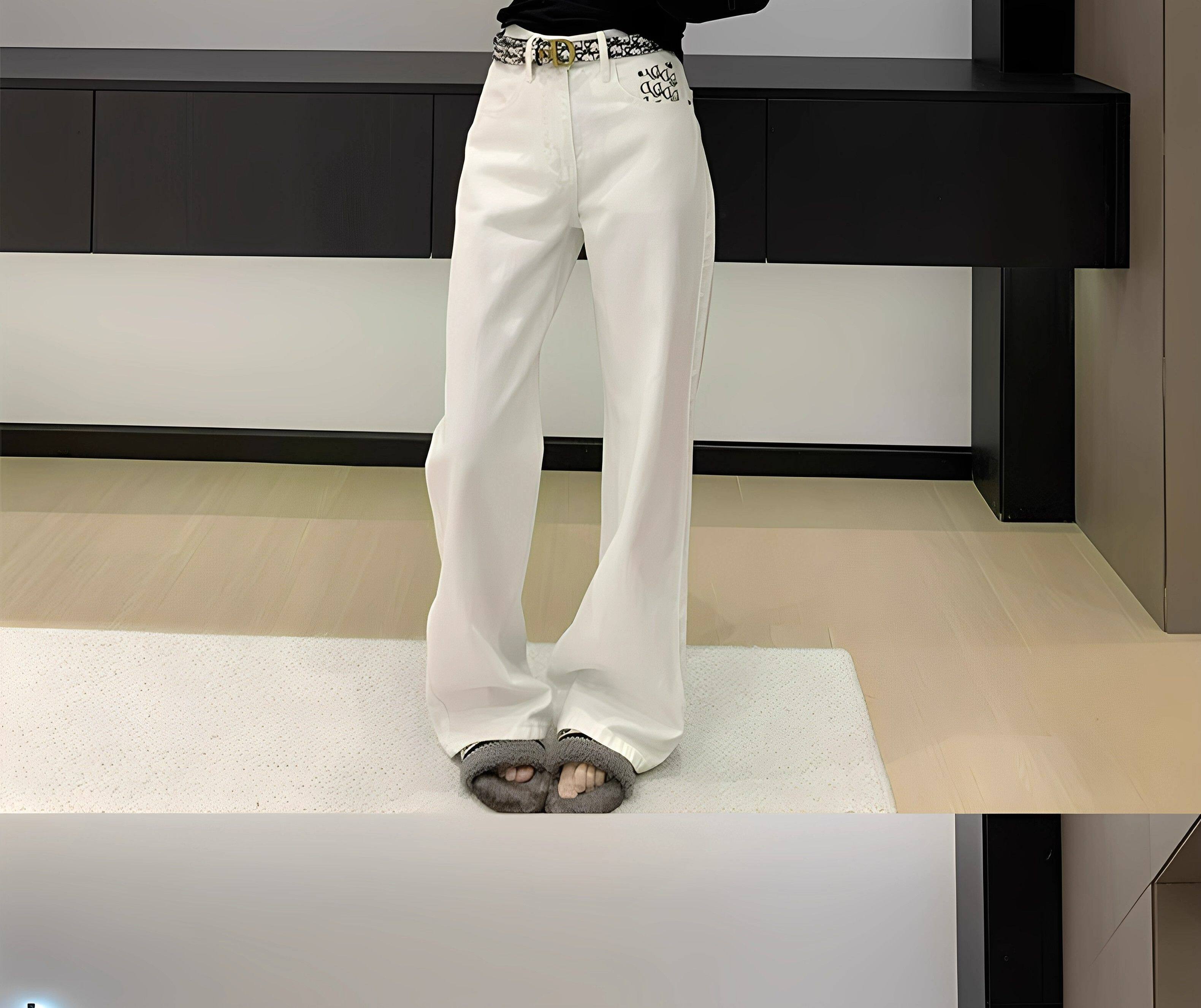 Белые джинсы, приталенные штаны, с вышивкой, свободный прямой крой, высокая талия